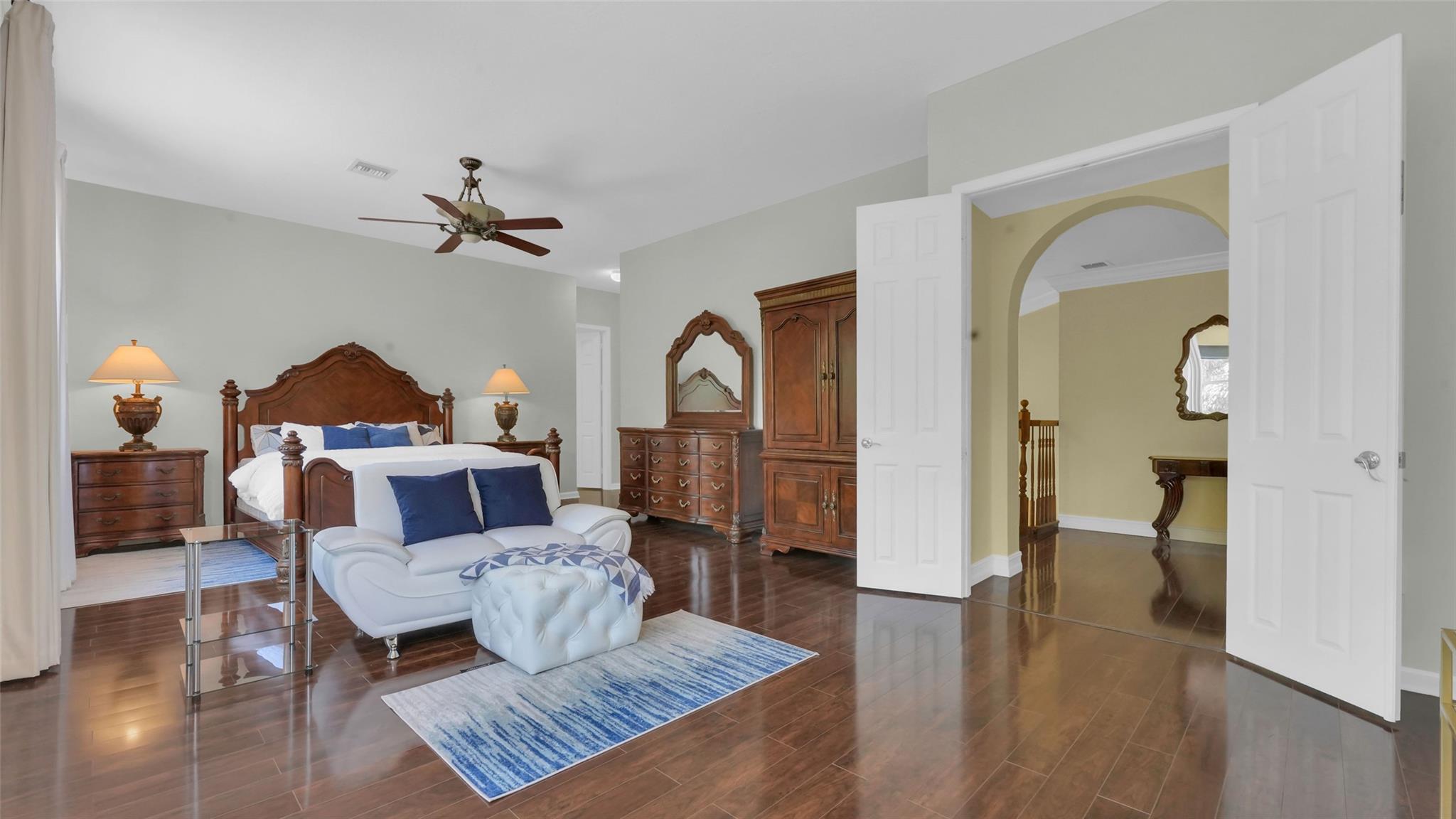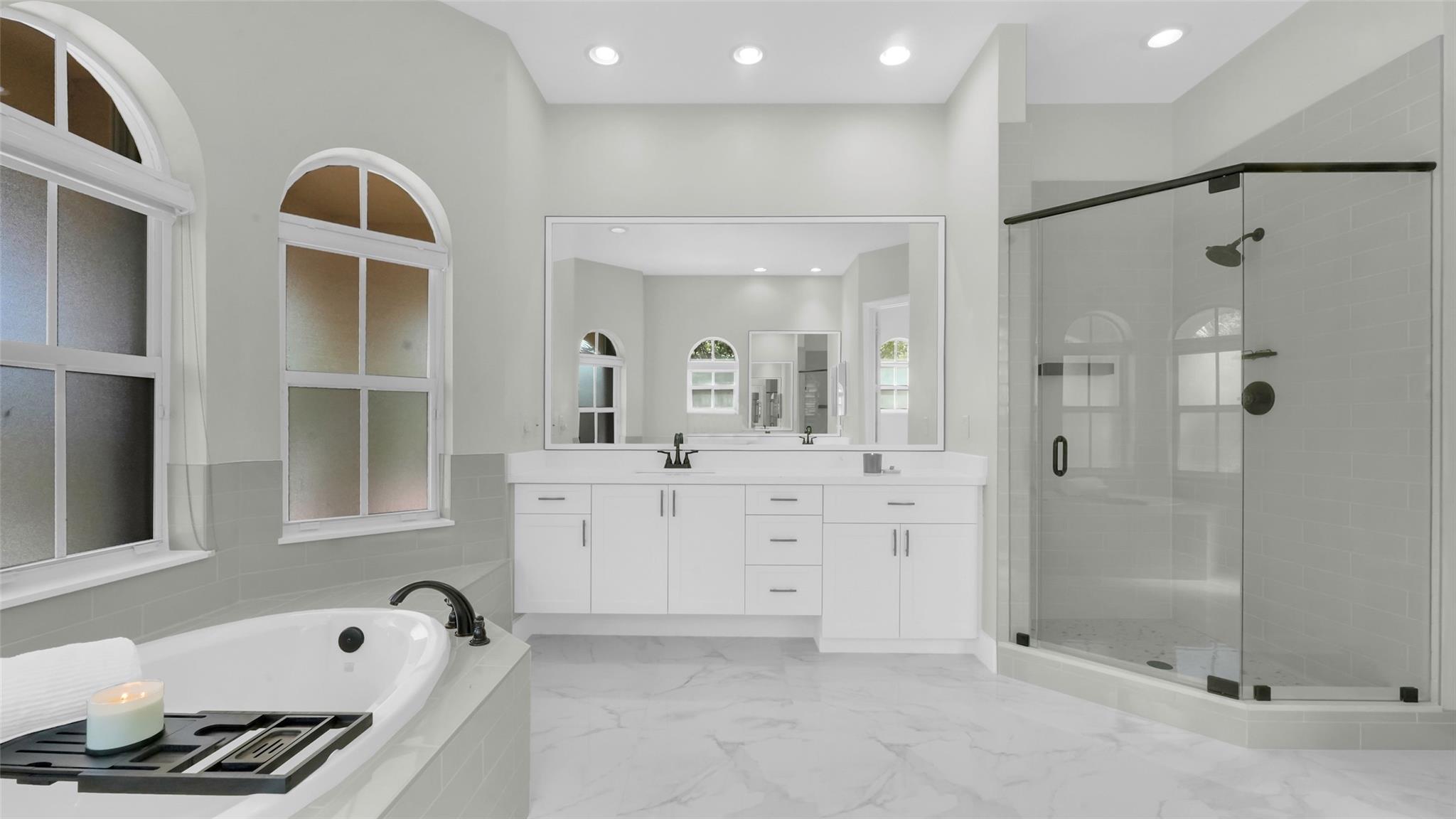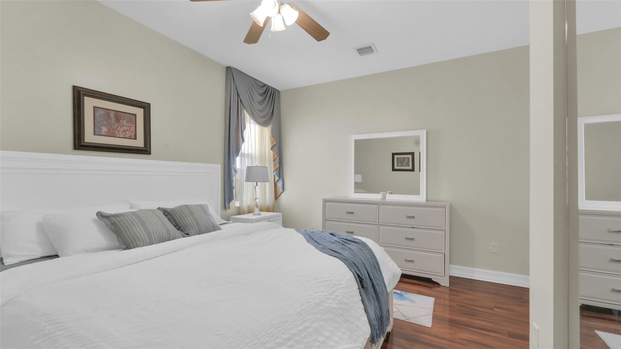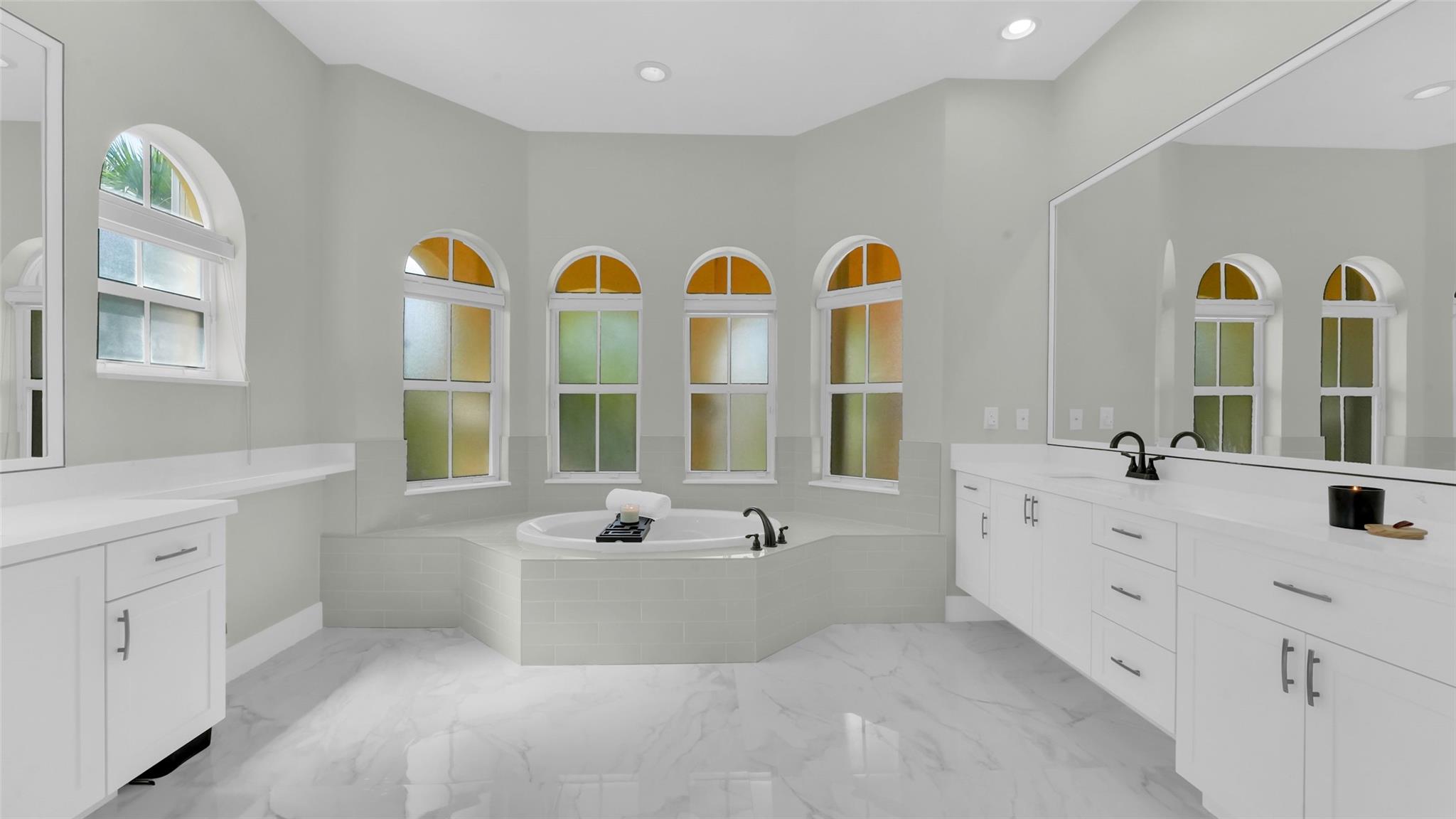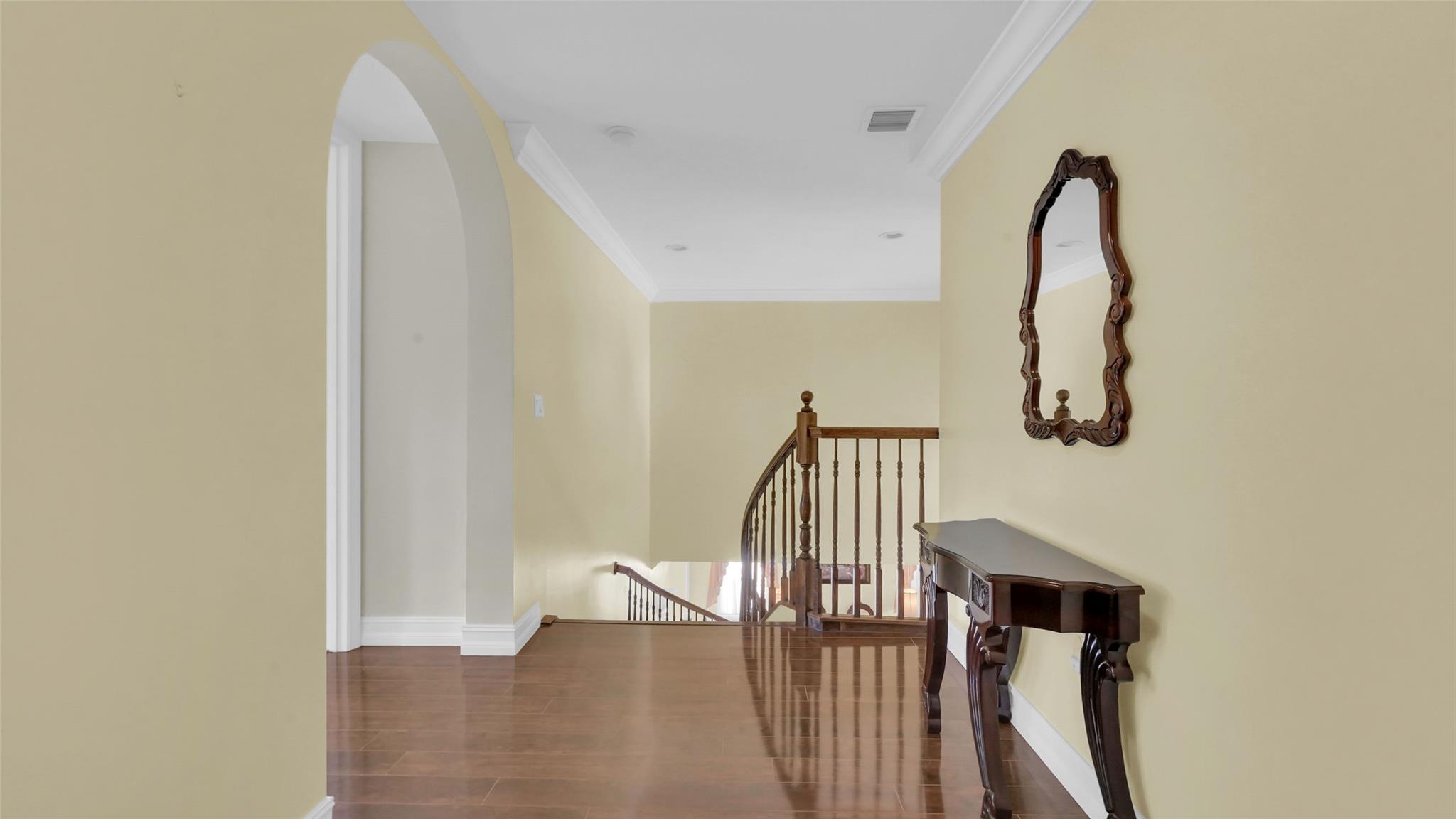 This beautifully renovated home features stunning quartz countertops and rich wooden cabinetry . The entire first floor is adorned with marble flooring, adding sophistication to every room . Tastefully updated bathrooms provide a timeless look that complements any décor style . Enjoy the spacious master bedroom, with a cozy sitting area perfect as a reading nook, home office, or nursery . An ensuite bedroom on the main floor offers comfort and flexibility for guests or multigenerational living. Upgrades include newer stainless-steel appliances, and double ovens, for the home chef. Outside is a well-manicured lawn surrounded by lush greenery and exotic fruit trees! Don’t miss the opportunity to own this move-in-ready gem that blends style, comfort, and functionality in one perfect package!