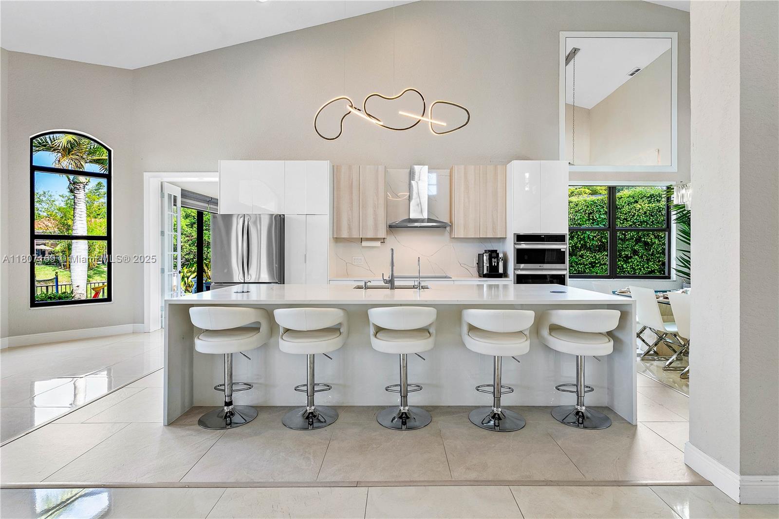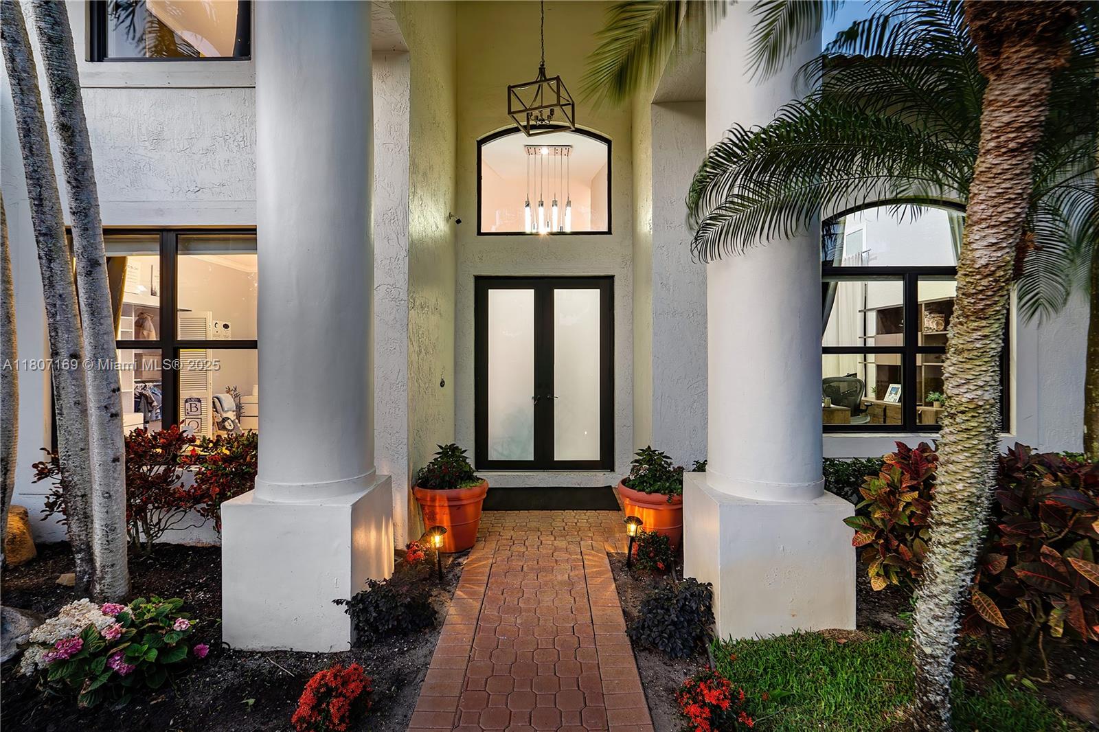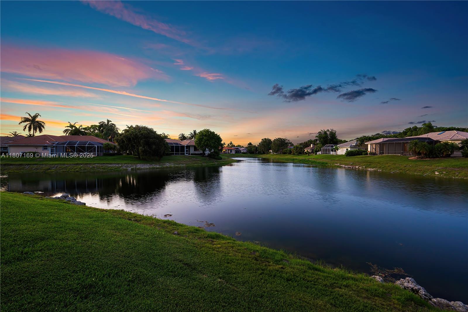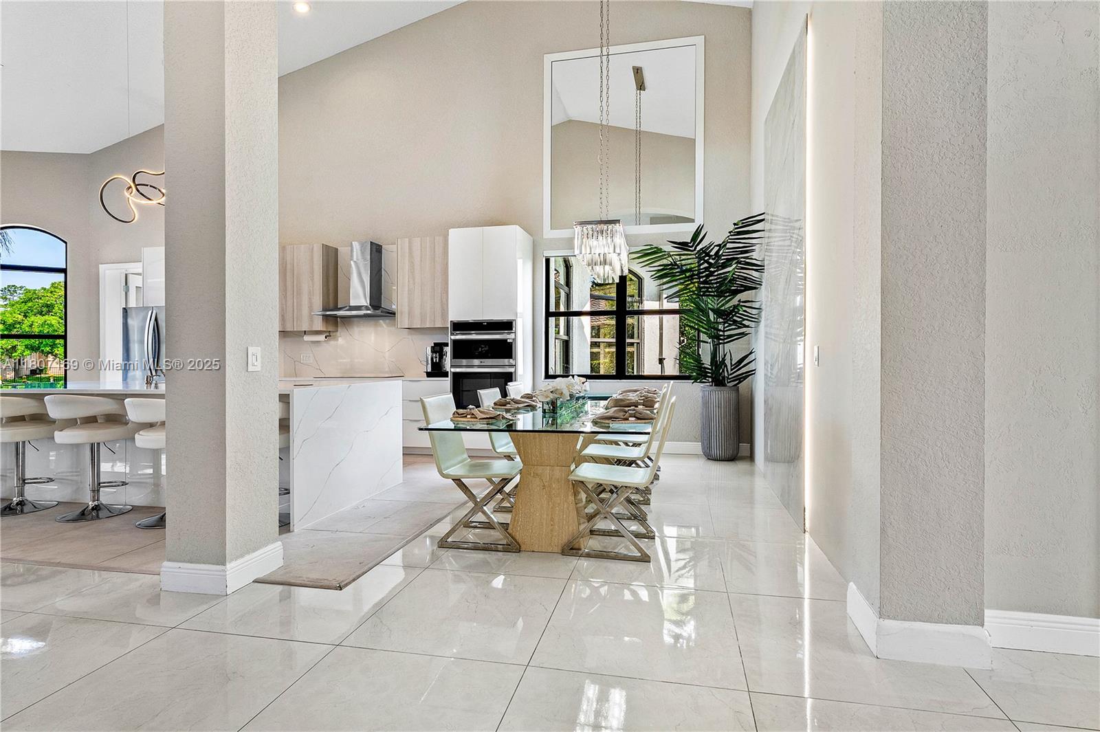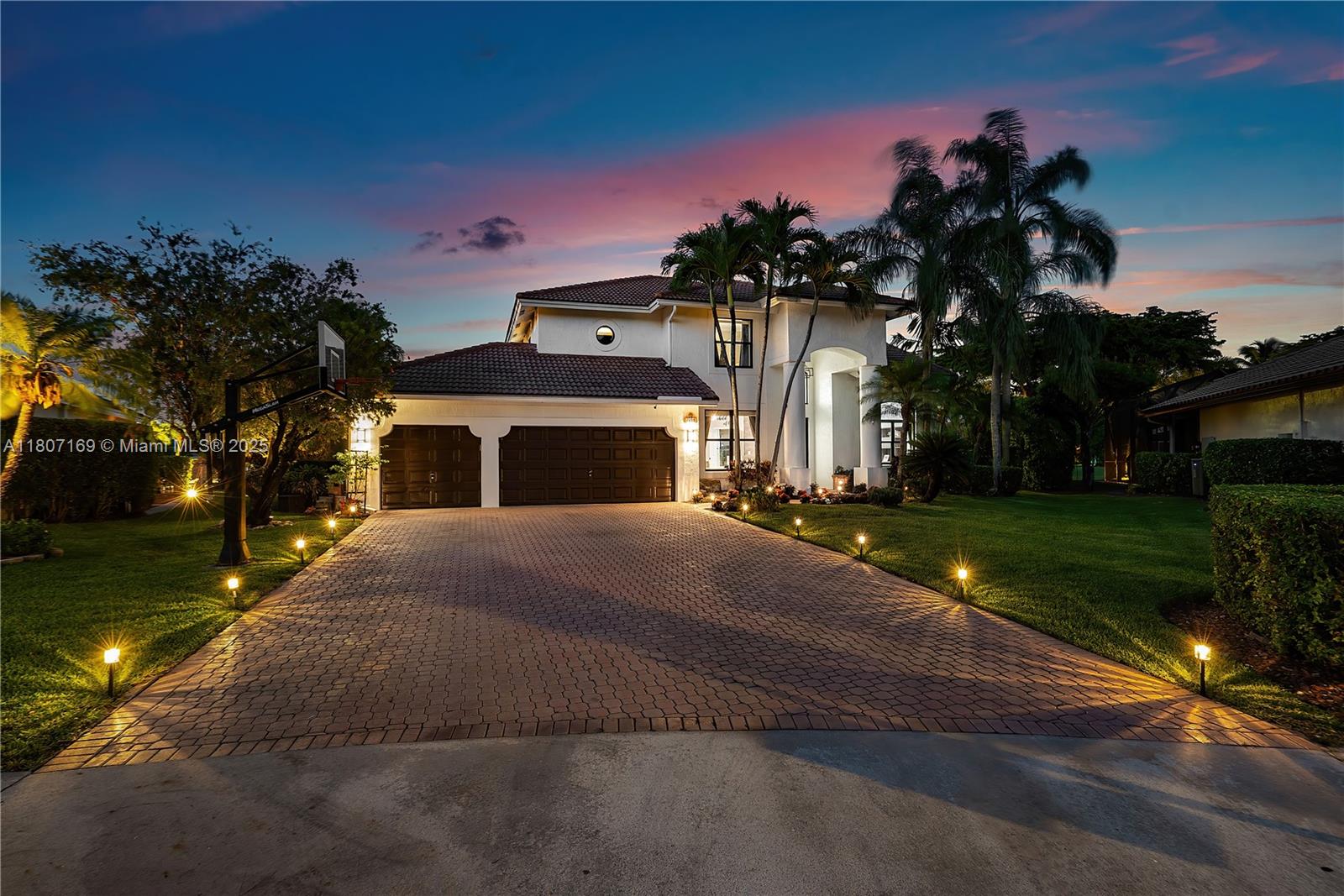 Redefined luxury waterfront residence. Perfectly positioned on a quiet cul-de-sac, it boasts 180 feet of serene water frontage and breathtaking panoramic views. Dramatic, open-concept, features soaring ceilings, striking glass staircase, updated marble floors. The gourmet chef's kitchen is a dream, seamlessly flowing into expansive living and dining spaces—ideal for effortless entertaining. Unwind in the lavish first-floor primary suite. The versatile loft can easily be a 5th bedroom, while the impressive media/rec room offers endless possibilities for fun and relaxation. Outdoors, enjoy both screened and open patios, a sparkling heated salt pool and spa, and lush, meticulously landscaped grounds. Full impact windows and a whole-house generator ensure complete security and comfort.