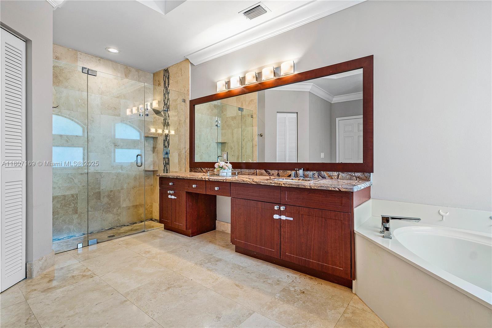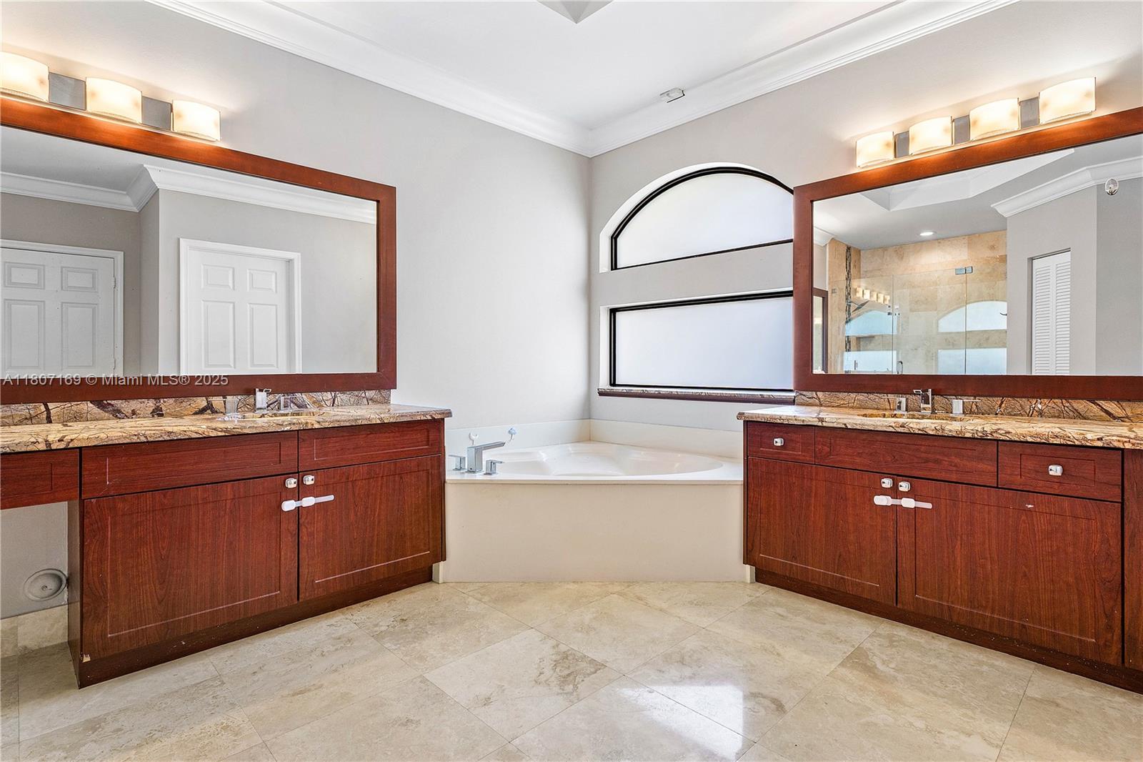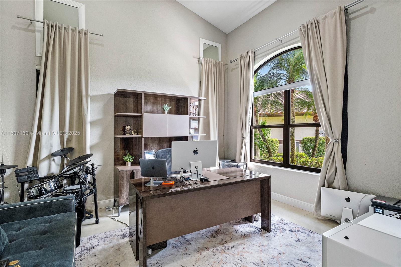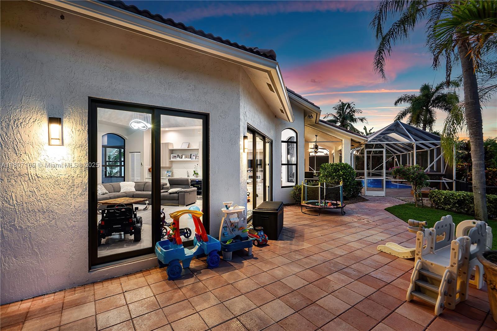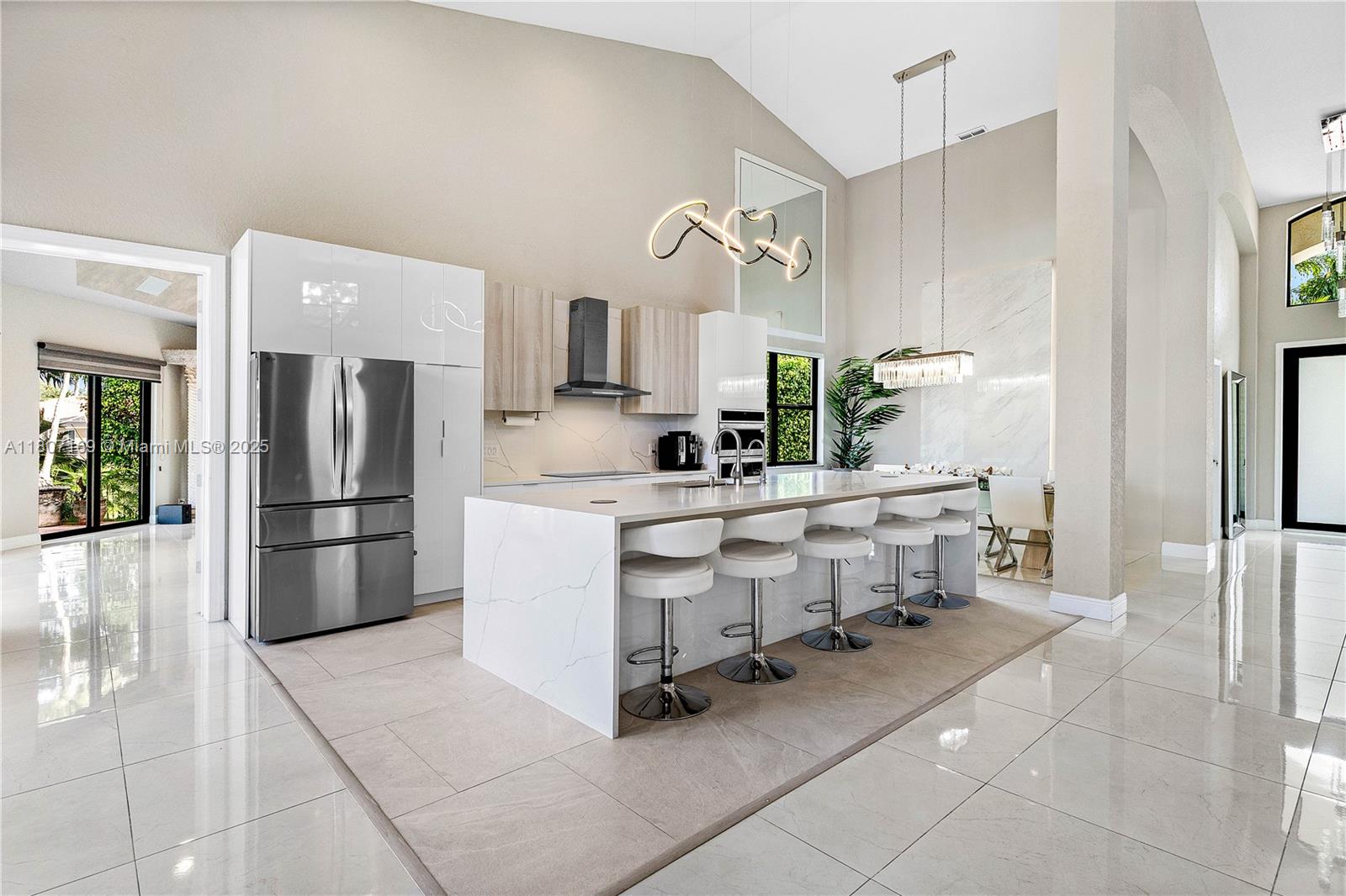 Redefined luxury waterfront residence. Perfectly positioned on a quiet cul-de-sac, it boasts 180 feet of serene water frontage and breathtaking panoramic views. Dramatic, open-concept, features soaring ceilings, striking glass staircase, updated marble floors. The gourmet chef's kitchen is a dream, seamlessly flowing into expansive living and dining spaces—ideal for effortless entertaining. Unwind in the lavish first-floor primary suite. The versatile loft can easily be a 5th bedroom, while the impressive media/rec room offers endless possibilities for fun and relaxation. Outdoors, enjoy both screened and open patios, a sparkling heated salt pool and spa, and lush, meticulously landscaped grounds. Full impact windows and a whole-house generator ensure complete security and comfort.