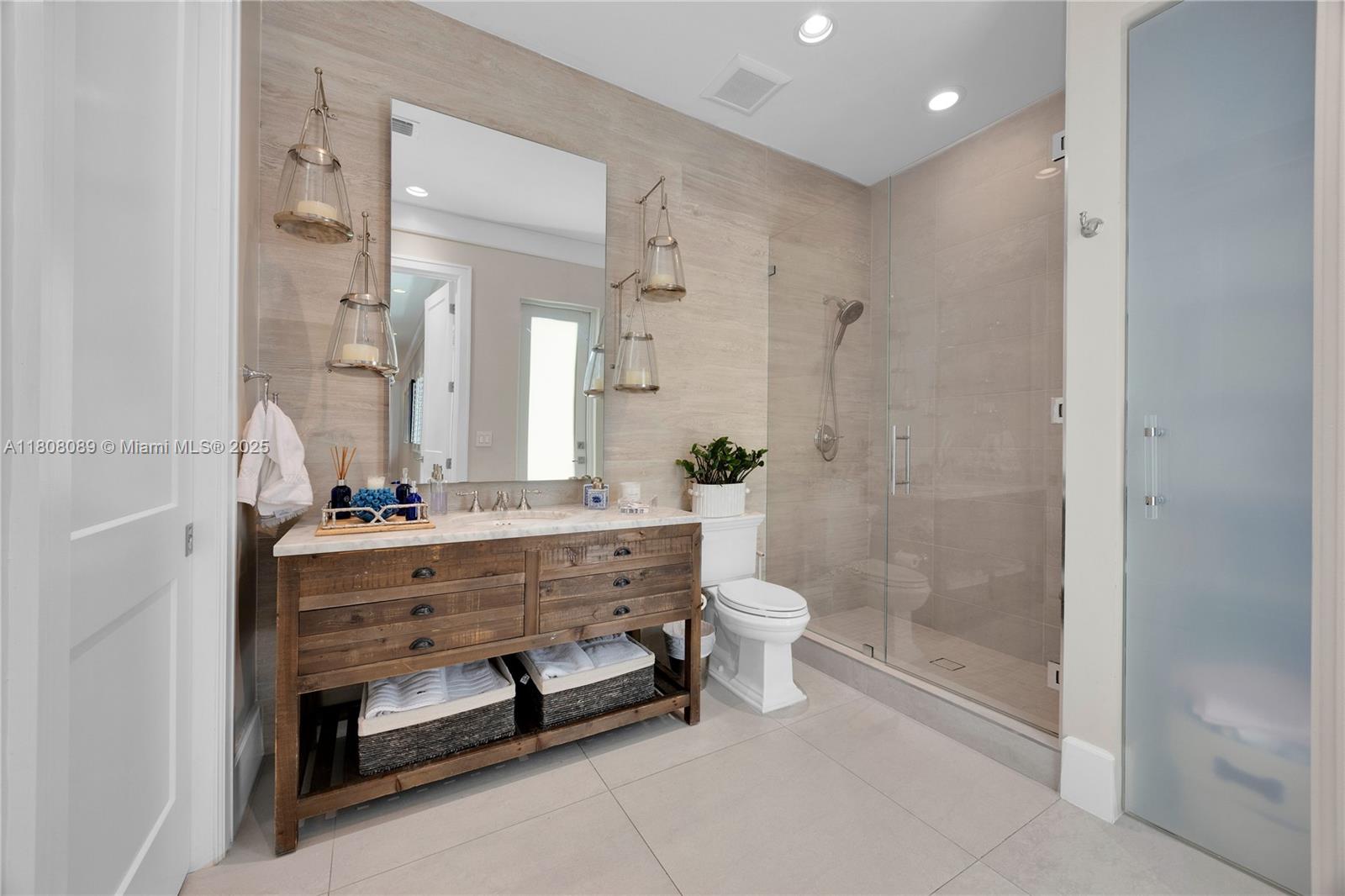 Custom built in 2017, this gorgeous, 5 BR, 4 BA home measures 3,903 SF and features high-end, modern finishes throughout! The open-concept floorplan is perfect for modern entertaining & living. Enter from the covered front porch to find living and dining areas that flow seamlessly into the open kitchen with gas range, stainless steel appliances, island with eat-in area, & walk-in pantry. Hurricane impact glass sliding doors lead to a deep covered patio w/ full summer kitchen overlooking a heated saline pool & turf lawn surrounded by tall privacy hedges. The primary suite enjoys 2 walk-in closets, & spacious bathroom w/ dual sinks & large walk-in shower. 4 add’l BRs share 3 BAs, there is a generous laundry room, 2 car garage, full house generator, & much more in the heart of Pinecrest!