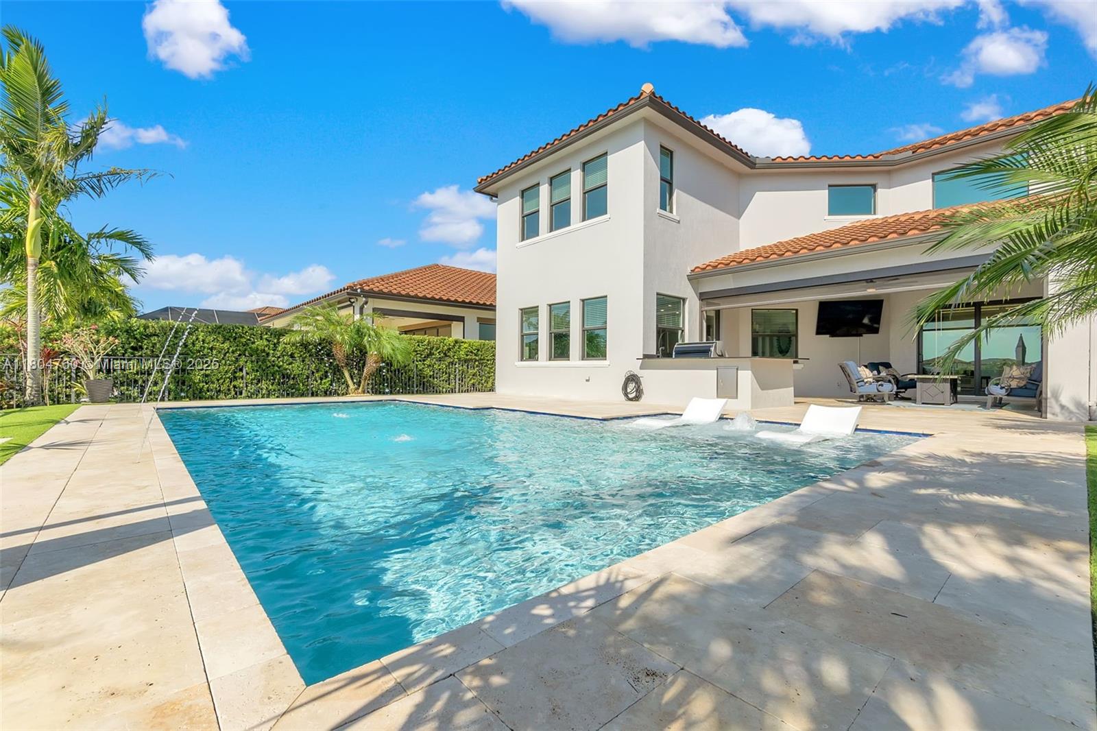 Experience refined living in this stunning 5-bedroom, 4-bath home in the prestigious gated community of Parkland Bay. Built in 2019 by WCI and freshly painted, this home features a chef’s kitchen with quartz countertops, upgraded glass-front cabinetry, double ovens, and a gas cooktop—all set on elegant ceramic tile flooring. Enjoy sunset views from your private saltwater pool with a 2024-built outdoor kitchen featuring granite countertops and a travertine deck. The home boasts engineered hardwood floors upstairs and a stainless steel stair railing that elevates the interior. Additional features include impact windows, a 3-car garage, and upgrades throughout. Resort-style amenities: clubhouse, pool, gym, tennis & basketball courts. A-rated schools. HOA includes lawn care and irrigation.