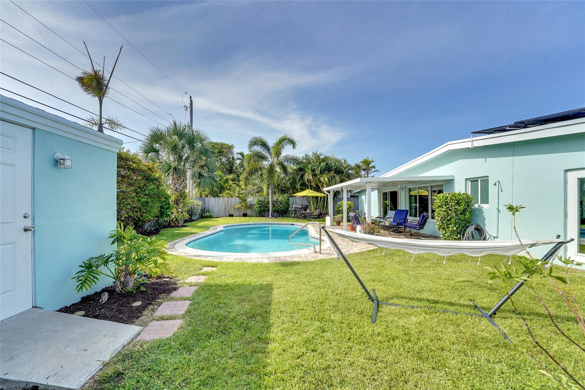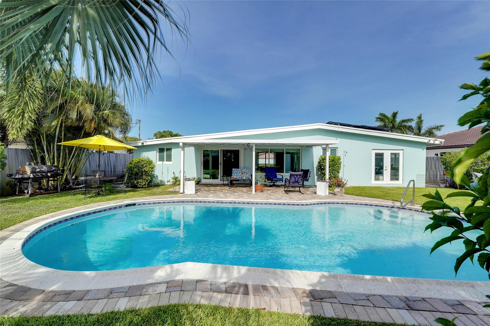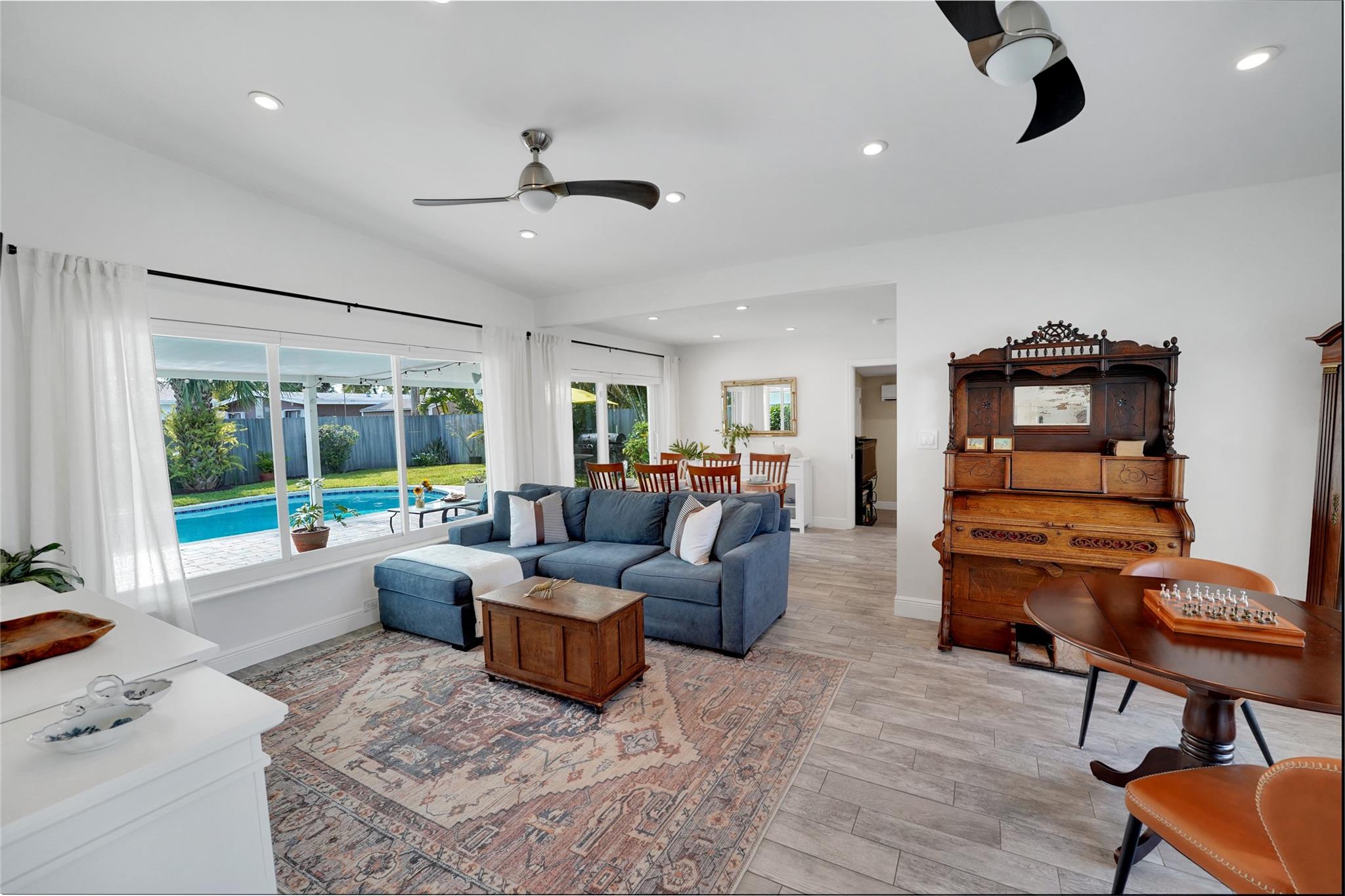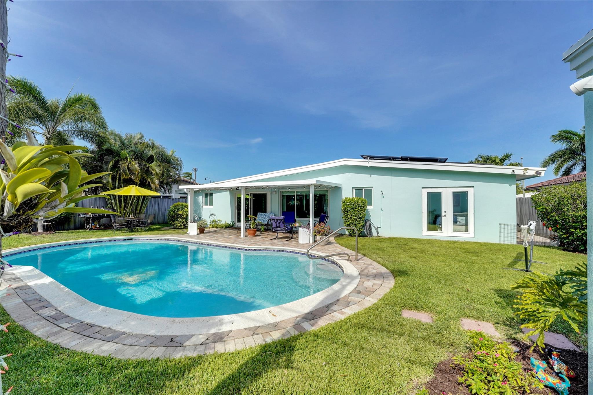 Walk to the BEST BEACH in So Florida! This is it! Your new mid-century modern beauty with sparkling pool views and tropical landscaping, framed by high-impact windows and doors. Paid Off solar panels and a Nest thermostat provide comfort and savings. Solid roof and HVAC, updated kitchen, Smart appliances and beautiful flooring throughout. Fenced backyard, a wonderful covered porch, custom patio and the sweetest pool on the market! A matching cottage provides potential, well-protected—back yard secure. This historical neighborhood with no HOA offers quiet, friendly neighbors. Less than 5-minutes to a “secret” sunrise spot and tons of shops and excellent restaurants. The Women’s Club, Historical Society, Cultural Center and library are nearby. Fresh, clean, solid and move-in ready!!