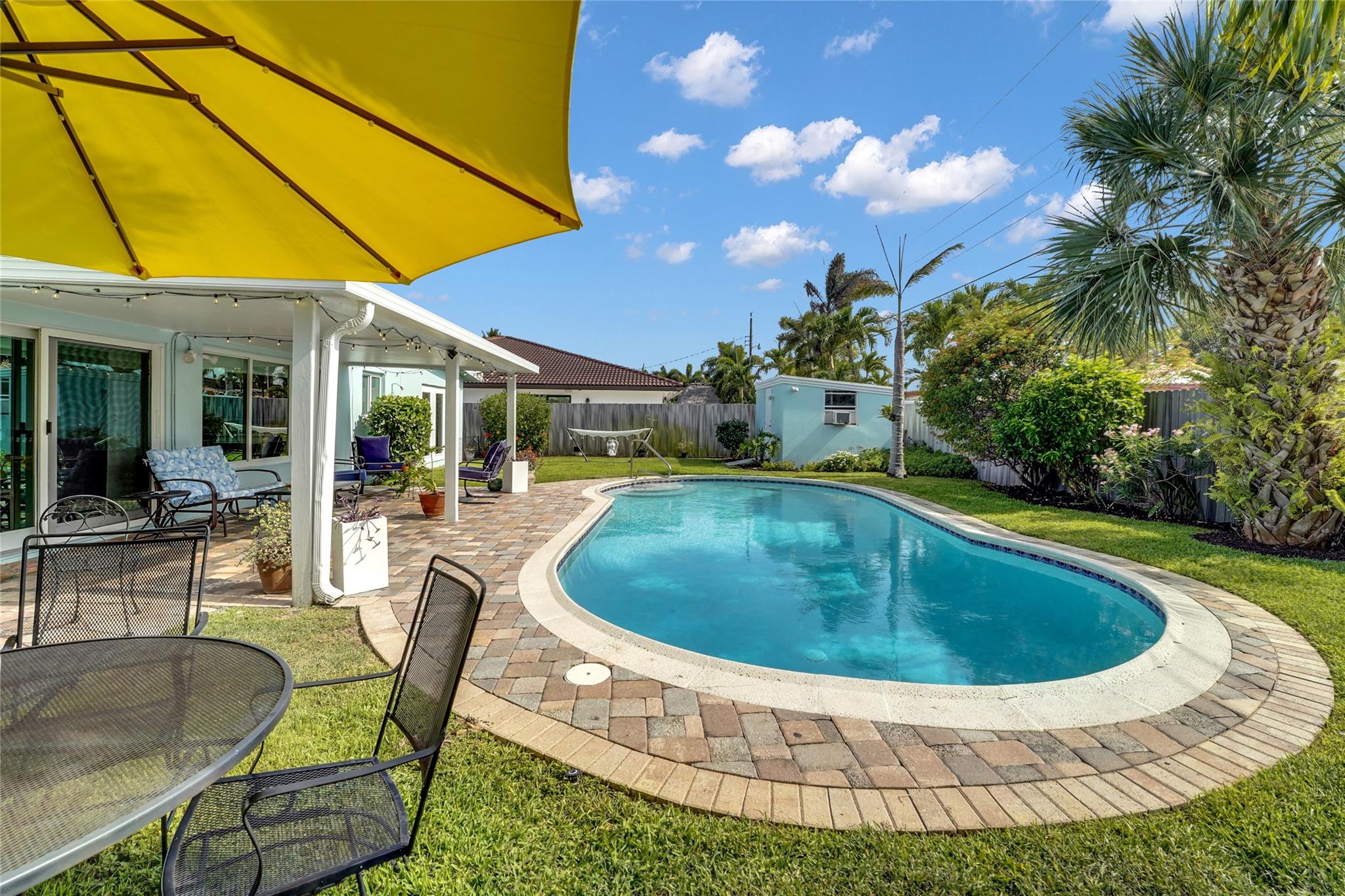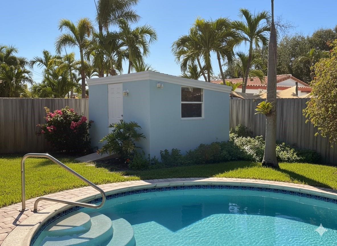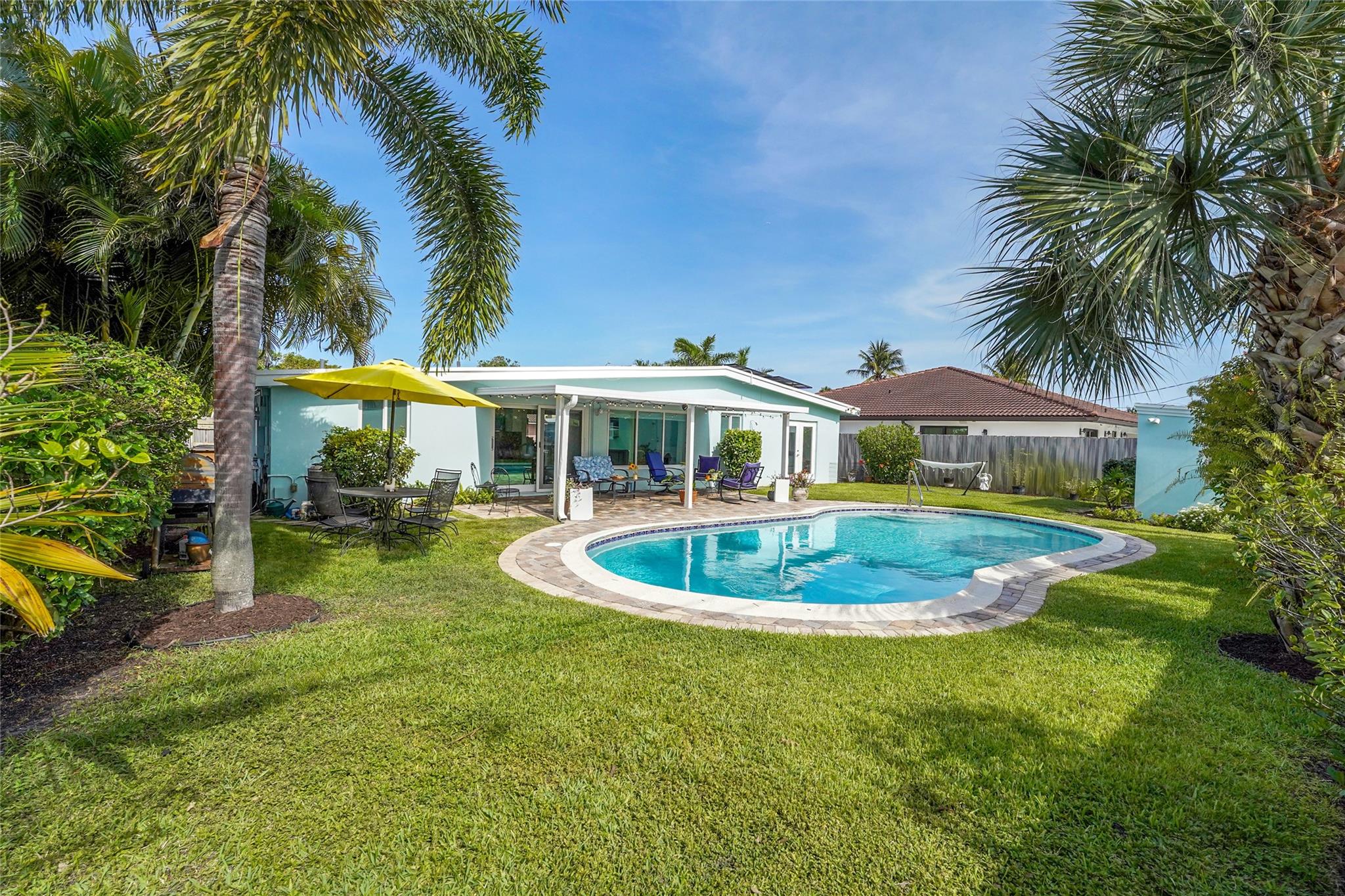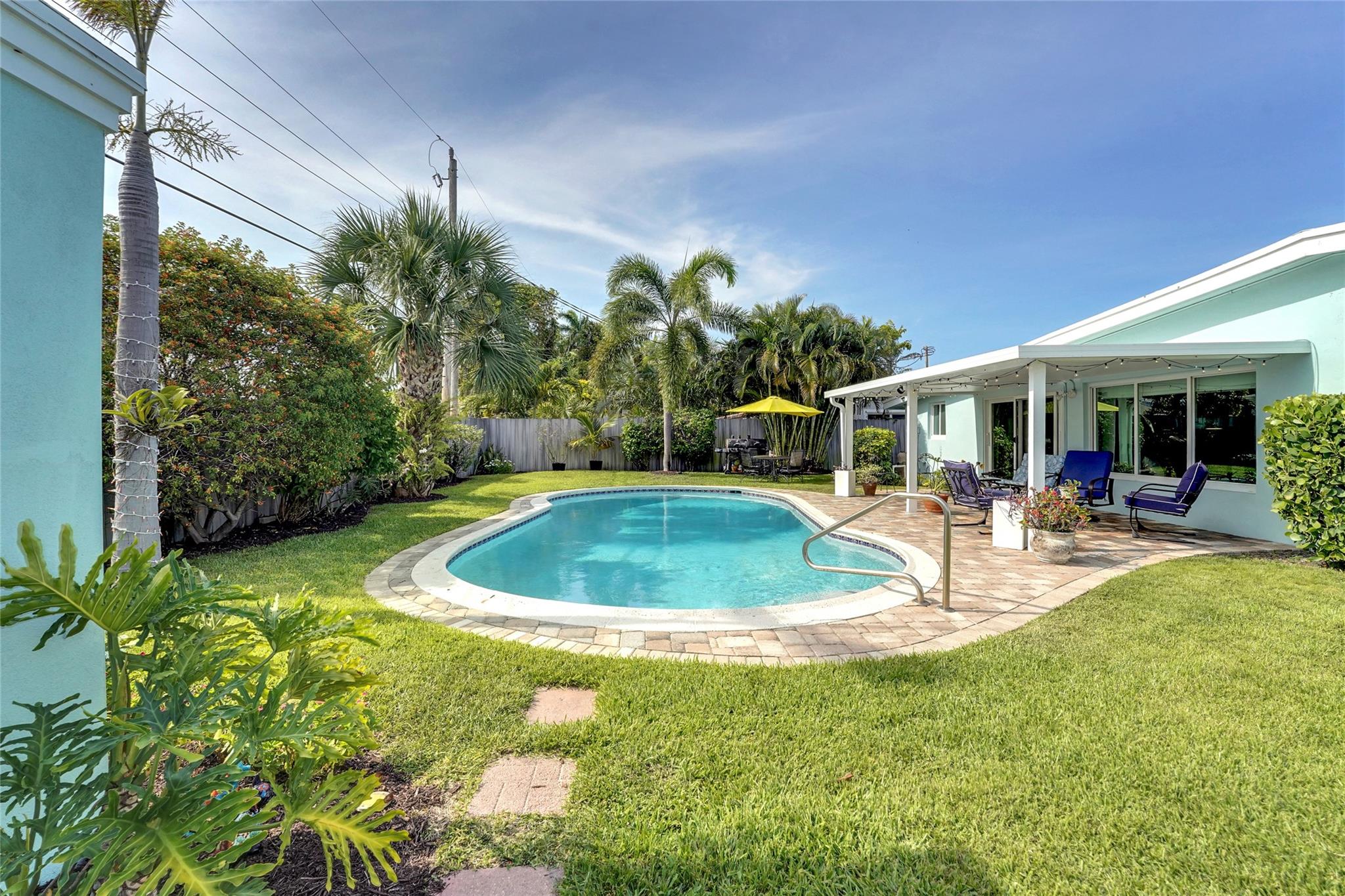 Walk to the BEST BEACH in So Florida! This is it! Your new mid-century modern beauty with sparkling pool views and tropical landscaping, framed by high-impact windows and doors. Paid Off solar panels and a Nest thermostat provide comfort and savings. Solid roof and HVAC, updated kitchen, Smart appliances and beautiful flooring throughout. Fenced backyard, a wonderful covered porch, custom patio and the sweetest pool on the market! A matching cottage provides potential, well-protected—back yard secure. This historical neighborhood with no HOA offers quiet, friendly neighbors. Less than 5-minutes to a “secret” sunrise spot and tons of shops and excellent restaurants. The Women’s Club, Historical Society, Cultural Center and library are nearby. Fresh, clean, solid and move-in ready!!