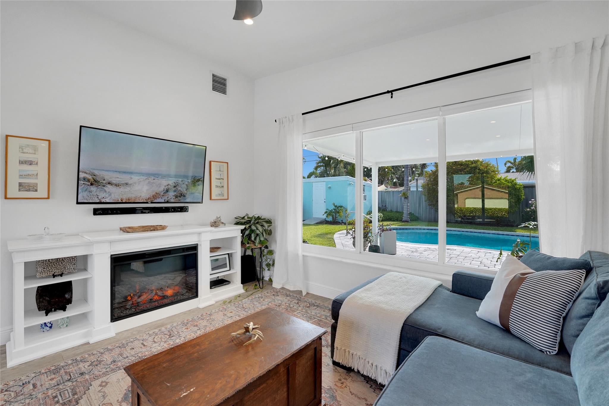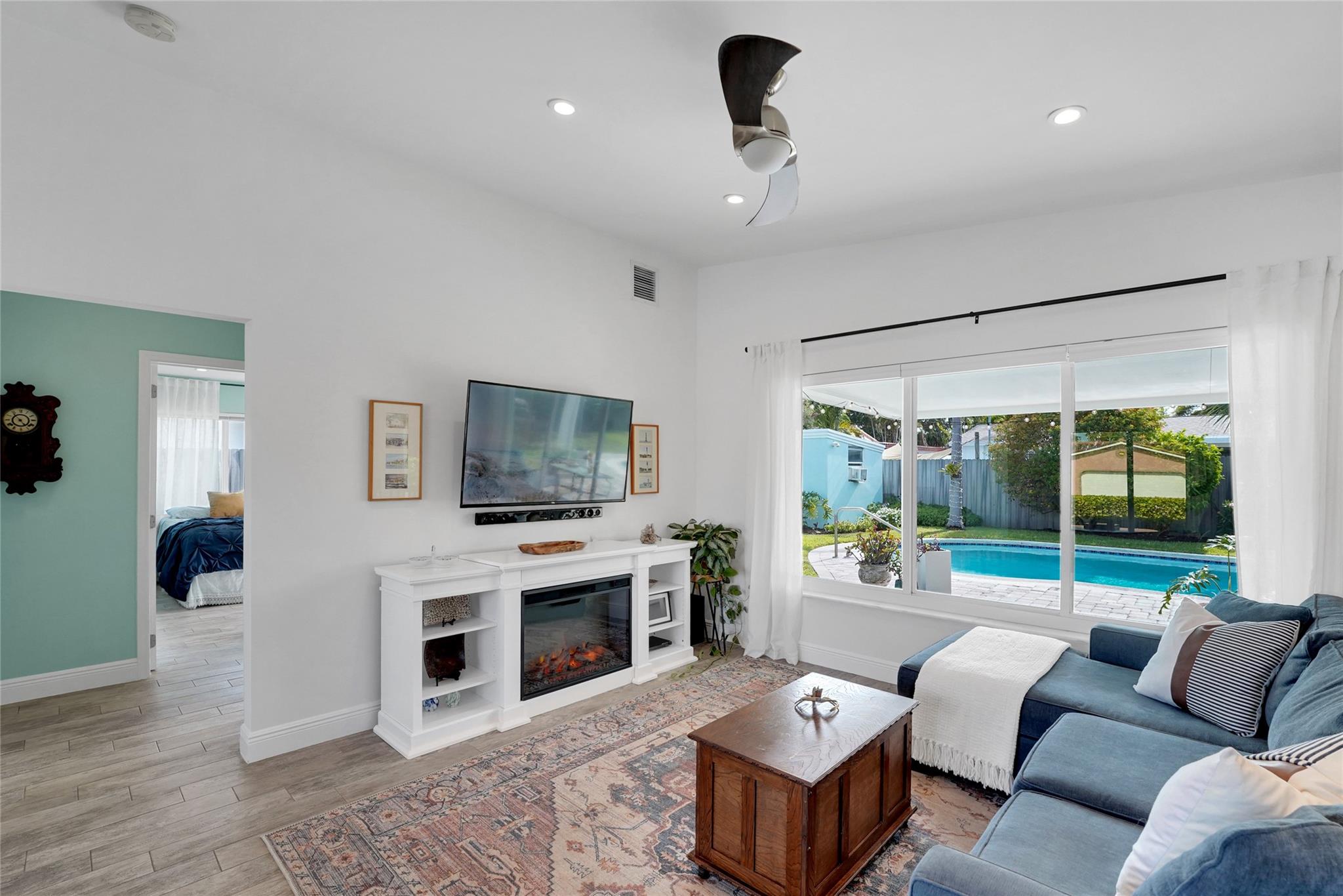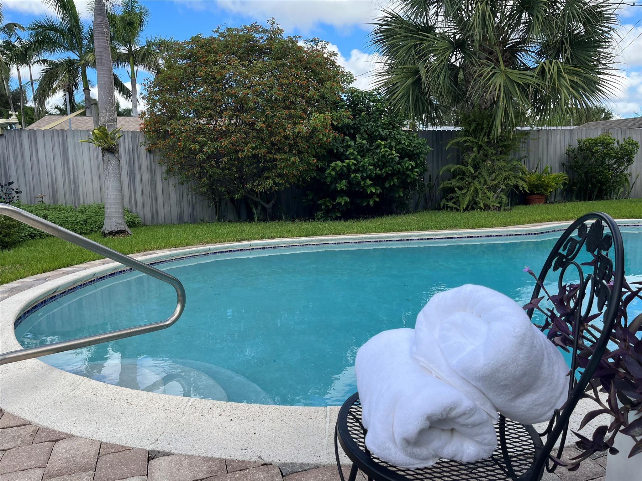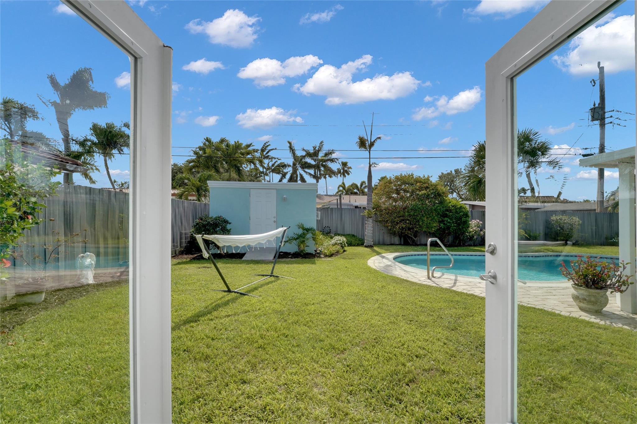 Walk to the BEST BEACH in So Florida! This is it! Your new mid-century modern beauty with sparkling pool views and tropical landscaping, framed by high-impact windows and doors. Paid Off solar panels and a Nest thermostat provide comfort and savings. Solid roof and HVAC, updated kitchen, Smart appliances and beautiful flooring throughout. Fenced backyard, a wonderful covered porch, custom patio and the sweetest pool on the market! A matching cottage provides potential, well-protected—back yard secure. This historical neighborhood with no HOA offers quiet, friendly neighbors. Less than 5-minutes to a “secret” sunrise spot and tons of shops and excellent restaurants. The Women’s Club, Historical Society, Cultural Center and library are nearby. Fresh, clean, solid and move-in ready!!