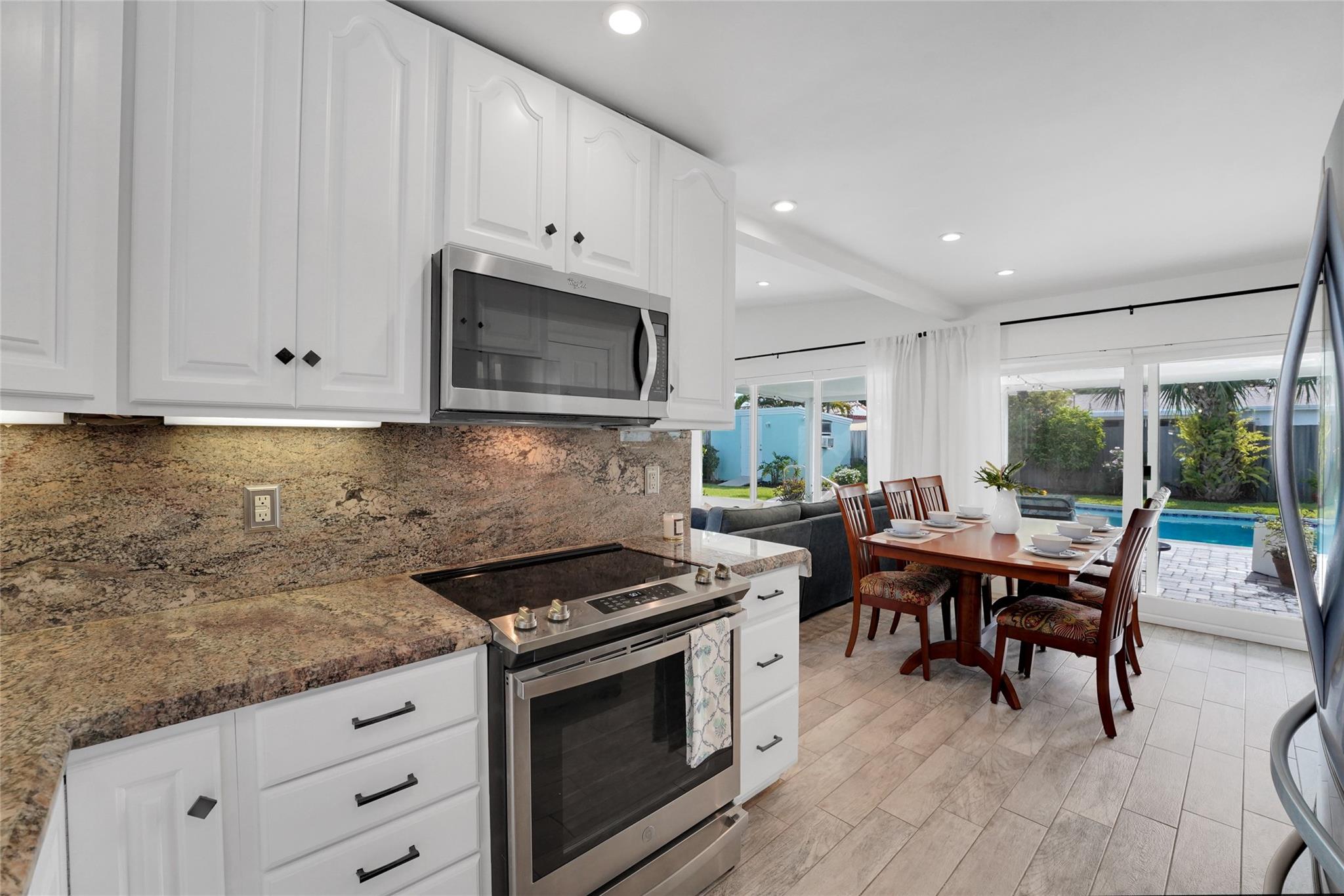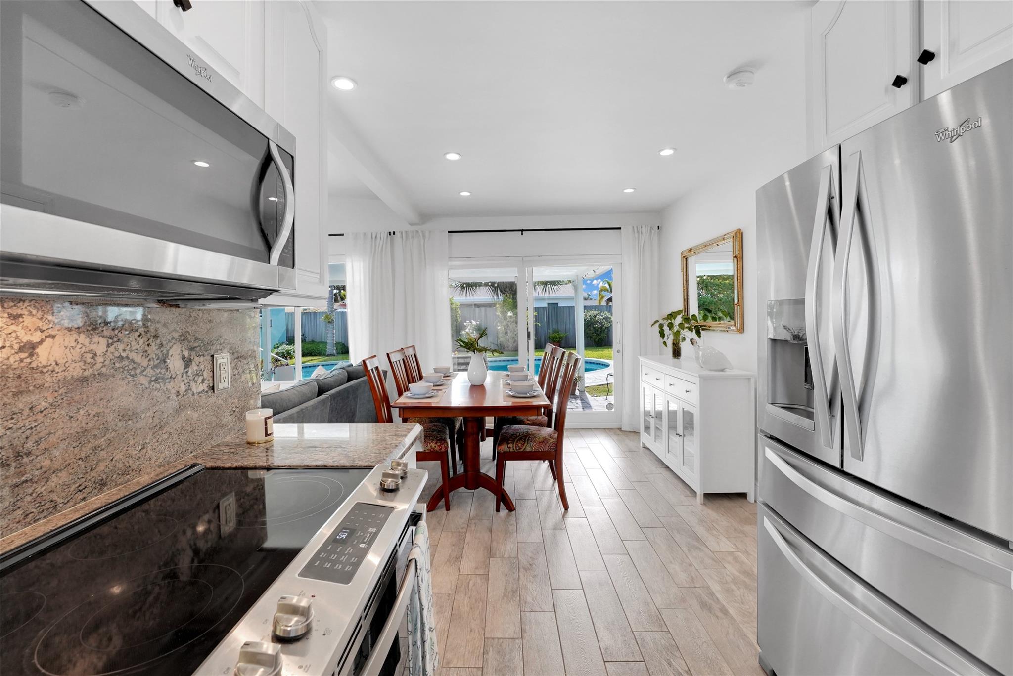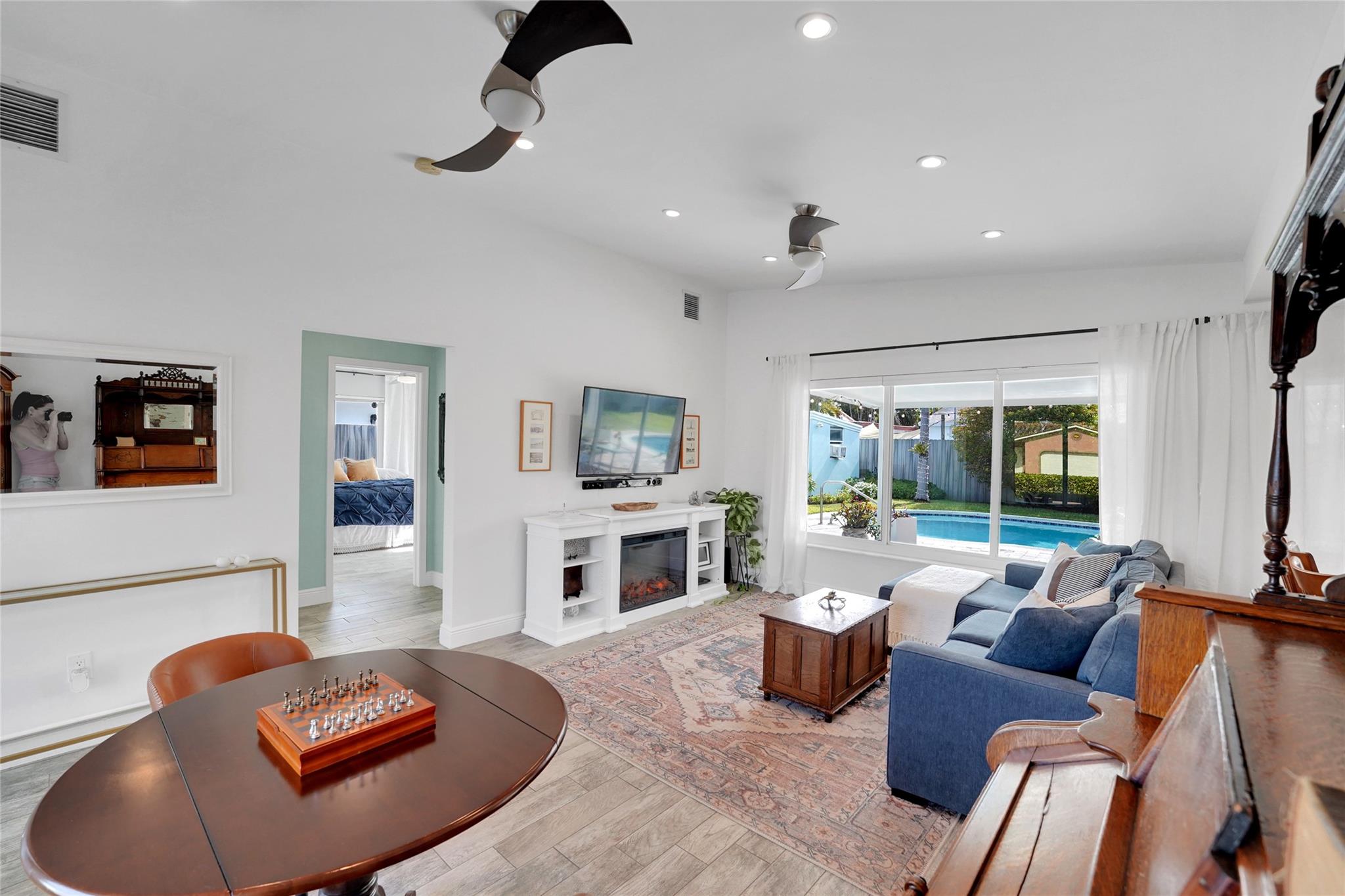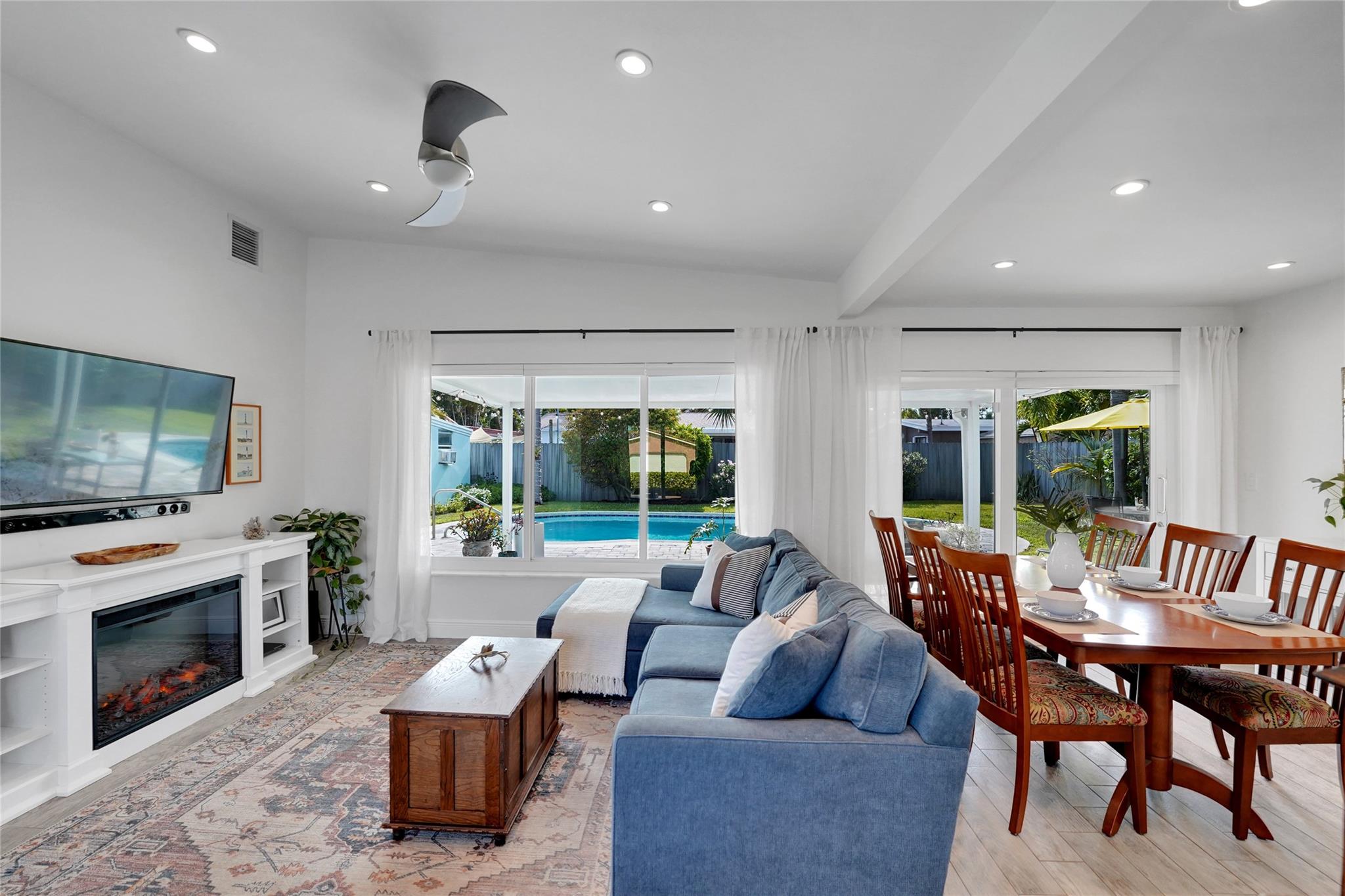 Walk to the BEST BEACH in So Florida! This is it! Your new mid-century modern beauty with sparkling pool views and tropical landscaping, framed by high-impact windows and doors. Paid Off solar panels and a Nest thermostat provide comfort and savings. Solid roof and HVAC, updated kitchen, Smart appliances and beautiful flooring throughout. Fenced backyard, a wonderful covered porch, custom patio and the sweetest pool on the market! A matching cottage provides potential, well-protected—back yard secure. This historical neighborhood with no HOA offers quiet, friendly neighbors. Less than 5-minutes to a “secret” sunrise spot and tons of shops and excellent restaurants. The Women’s Club, Historical Society, Cultural Center and library are nearby. Fresh, clean, solid and move-in ready!!