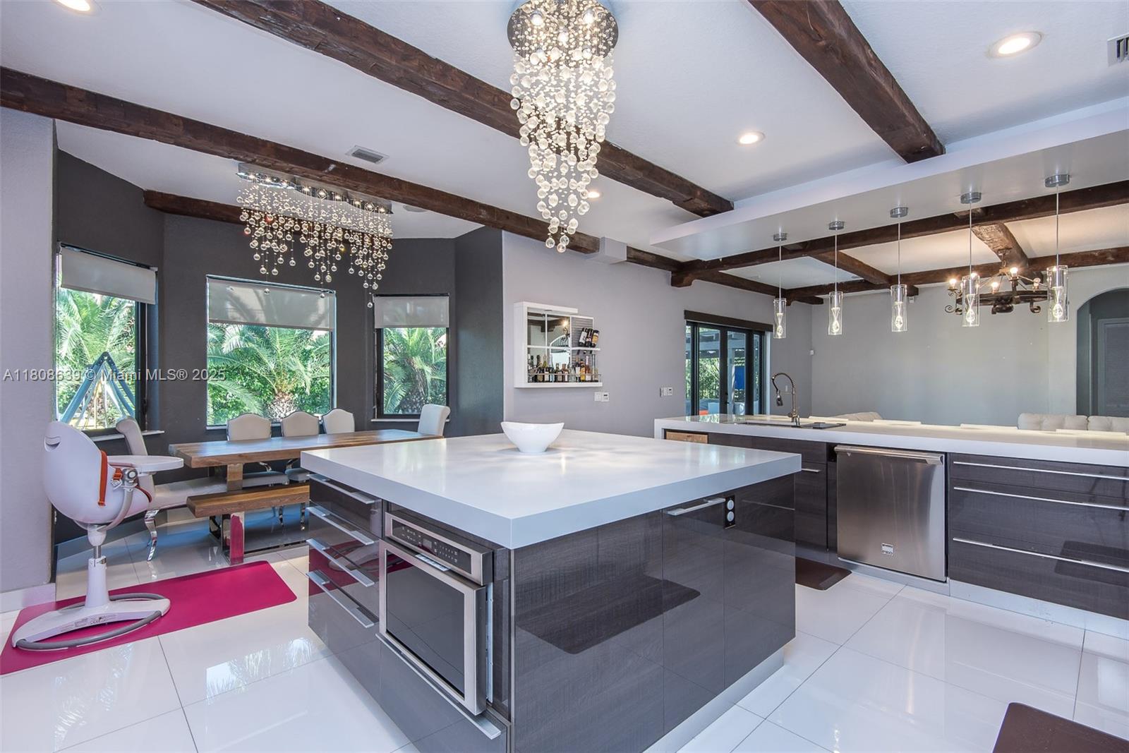 Truly one of a kind. In the gated community of Cutler Cay, this 6/5 offers a modern and upscale design. It has hurricane impact windows and has been completely renovated with the latest fixtures. The spectacular Italian kitchen has Monogram SS appliances, quartz countertops, a glass full backsplash, an island, and an eat-in area. The spacious primary suite has expansive walk-in closets. Marble patio deck and gazebo with built-in BBQ and bar area with quartz countertop, Speakers throughout the house, and electric shades. The HOA includes alarm, Internet, cable, lawn maintenance, access to the spectacular Clubhouse with gym, heated pool, tennis and basketball court, and kids' playground. It is very easy to show.