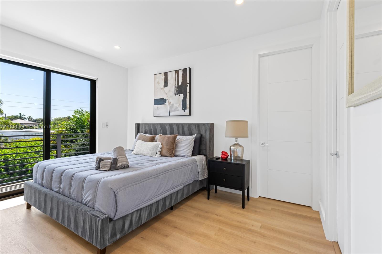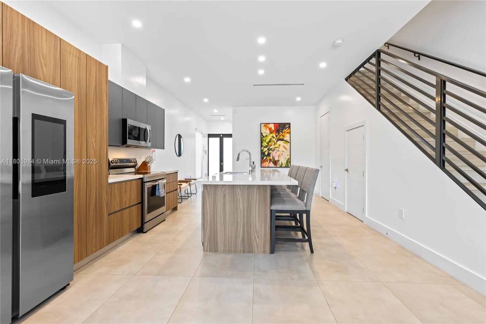 Experience modern luxury in this stunning corner-lot townhome located in Fort Lauderdale’s desirable Lake Ridge neighborhood—home to Bijou Lake Ridge, a one-of-a-kind modern new construction development known for its bold design and impeccable craftsmanship. With over 2,300 sq ft of thoughtfully designed living space, this 4-bedroom, 3.5-bath residence offers high ceilings, hurricane impact windows, and high-end finishes throughout. The first floor features sleek porcelain tile, while the second level showcases warm wood-style vinyl flooring. A chef-inspired kitchen is equipped with smart stainless steel appliances and opens seamlessly to the living and dining areas. Large sliding glass doors lead to a private turfed backyard and sparkling pool, perfect for entertaining or relaxing.