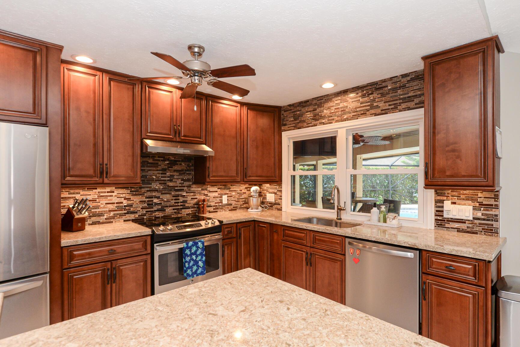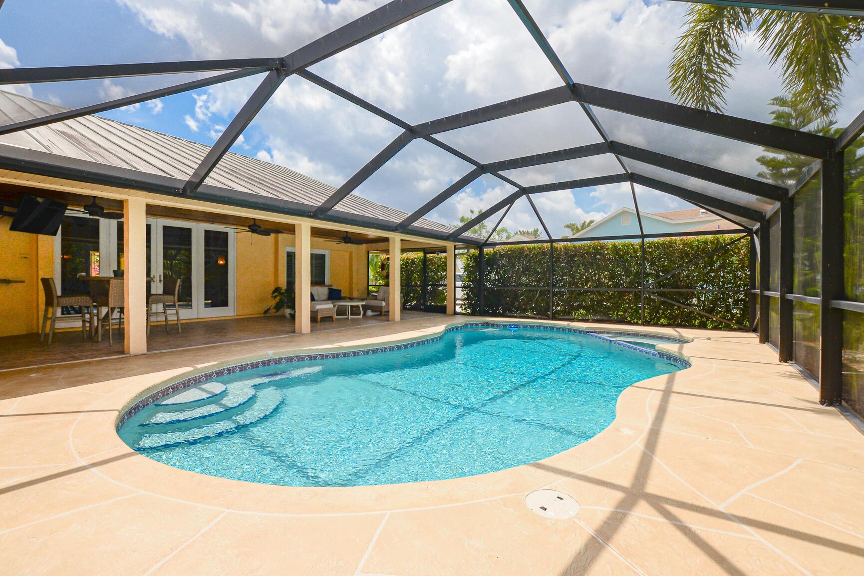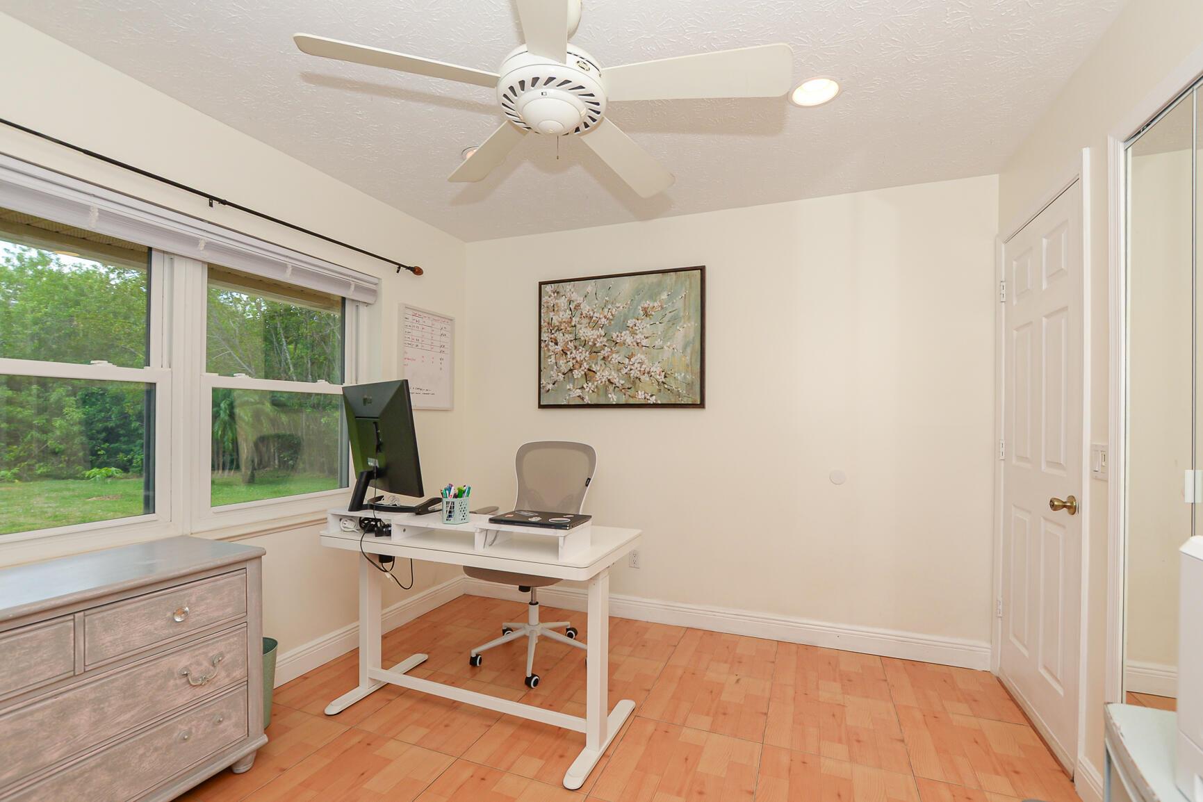 The magic begins as you drive through the gate into this serene community of spacious 1/2-acre lots. Step through the front door and be welcomed by soaring ceilings, an open floor plan, and captivating views of the heated pool, spa, and lush backyard. The kitchen features granite countertops, stainless steel appliances, and plenty of space for cooking and entertaining. The adjoining great room with a cozy fireplace creates a perfect gathering spot and leads to three additional bedrooms and a full bath--an area that can easily be closed off for privacy. A third bathroom and laundry room are conveniently located off the drop zone connecting the garage and kitchen. Park your RV, boat, or toys in the community lot for just $100 per year.