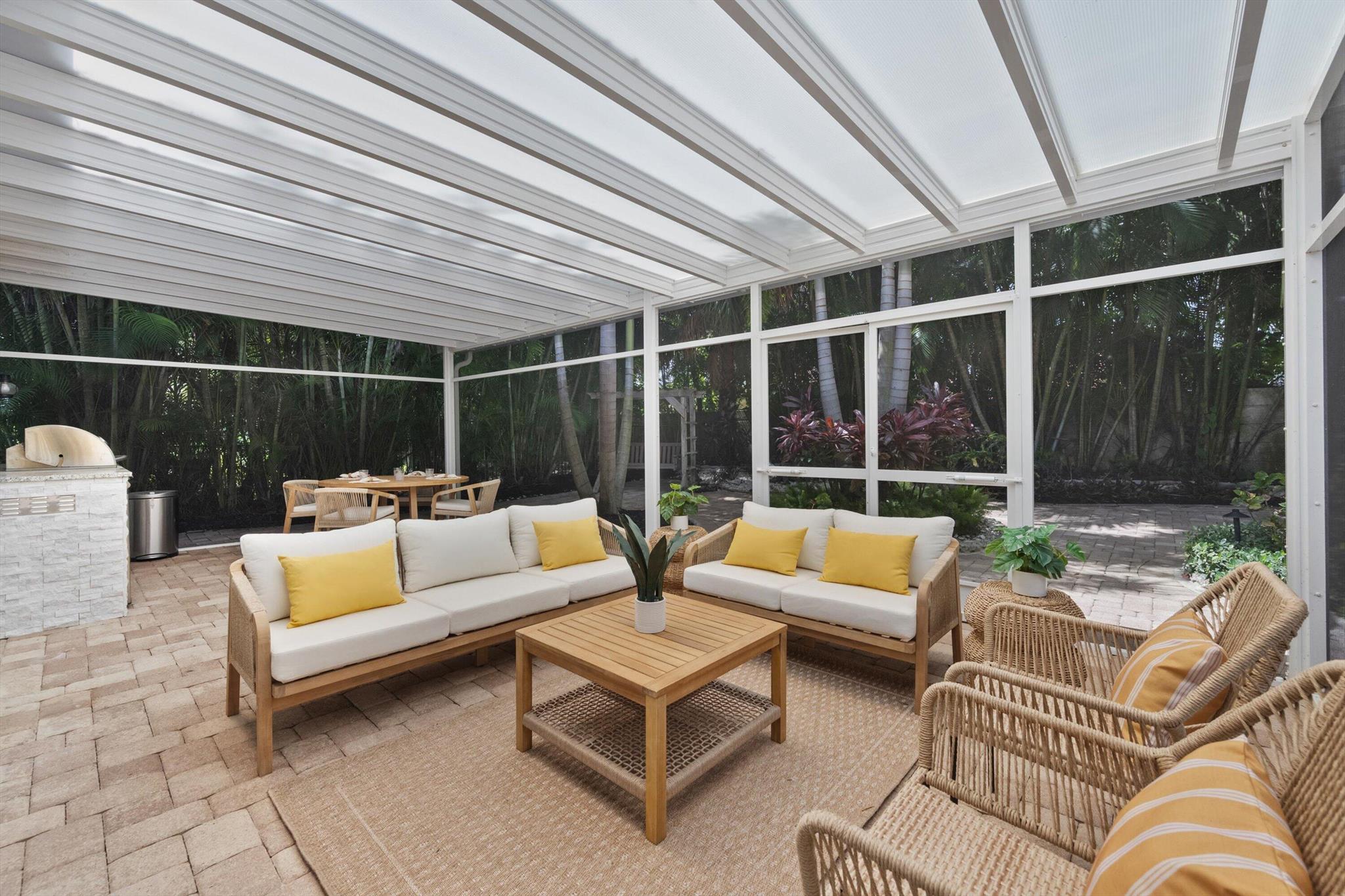 Redesigned & renovated with clean, open spaces, this Breakers West home in the popular Flagler Manor neighborhood offers 4 Bedrooms, 3.5 Baths & 2 car + golf cart garage in almost 3,300 SF of living area. Taking center stage is the NEW re-designed Chef's kitchen completed in 2024 w/white Shaker cabinets, quartz counters, GE Cafe appliances including induction cooktop & vented hood, 48'' built-in refrigerator, double ovens and microwave drawer. The Primary Suite has updated HIS & HER Baths with new vanities, quartz counters, soaking tub & separate shower with beautiful tile work. Split Bedroom floor plan provides privacy for the 3 guest Bedrooms. Additional interior updates: NEW tile roof (2022); NEW luxury vinyl flooring & baseboards in main living areas (2023); NEW HVAC (2025) & (2021)