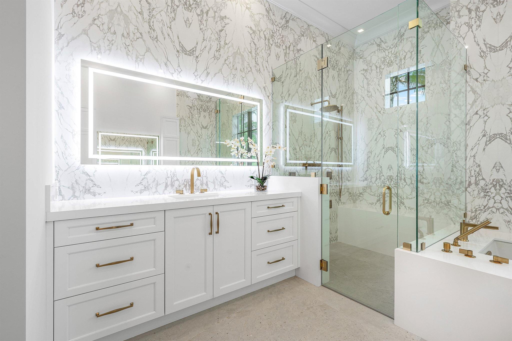 NEW CONSTRUCTION Luxury estate home built by award winning home builder CJM Luxury Homes in the desirable Boca Villas Neighborhood's best location. Nothing else compares to this exquisite custom home with every luxury option! Interior features open concept, 5-bedrooms, 6 full bathrooms and powder room. The home was built with the highest-level quality finishes including a concrete second floor system, concrete stairs under white oak custom stained wood, beautiful decorator stair railings, wood flooring throughout, beautiful ceiling detailing with cove lighting throughout, double kitchen islands with exotic stone tops, custom built-in with electric fireplace in living room, separate his and hers master baths with body sprays, and oversized upper living room/loft with full refreshment bar.
