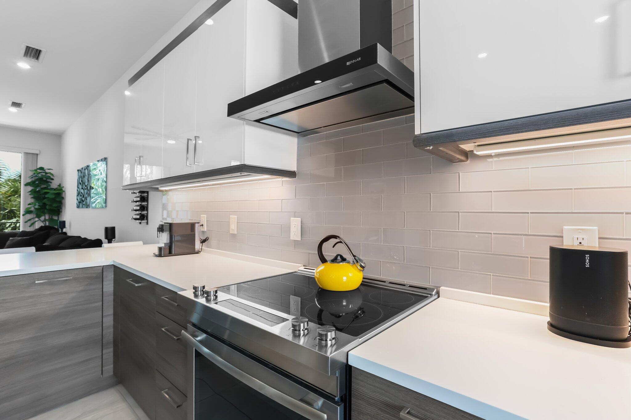 Modern Elegance & Refined Living in Boca Raton's Coveted Moderne Community Discover sophisticated living in this beautifully upgraded townhome located in the exclusive Moderne Boca Raton. With three bedrooms, two and a half bathrooms, and sleek contemporary design throughout, this residence offers a rare blend of luxury, comfort, and convenience in one of South Florida's premier communities. At the heart of the home is the stunning double island kitchen, an entertainer's dream. Outfitted with top-of-the-line JennAir appliances, European-style cabinetry, quartz countertops, and dramatic designer lighting, this space delivers both function and flair for elevated everyday living.Natural light fills the open-concept living and dining areas, creating a warm and welcoming ambiance.