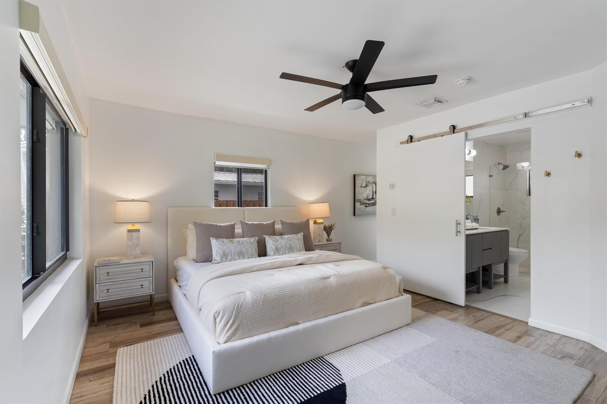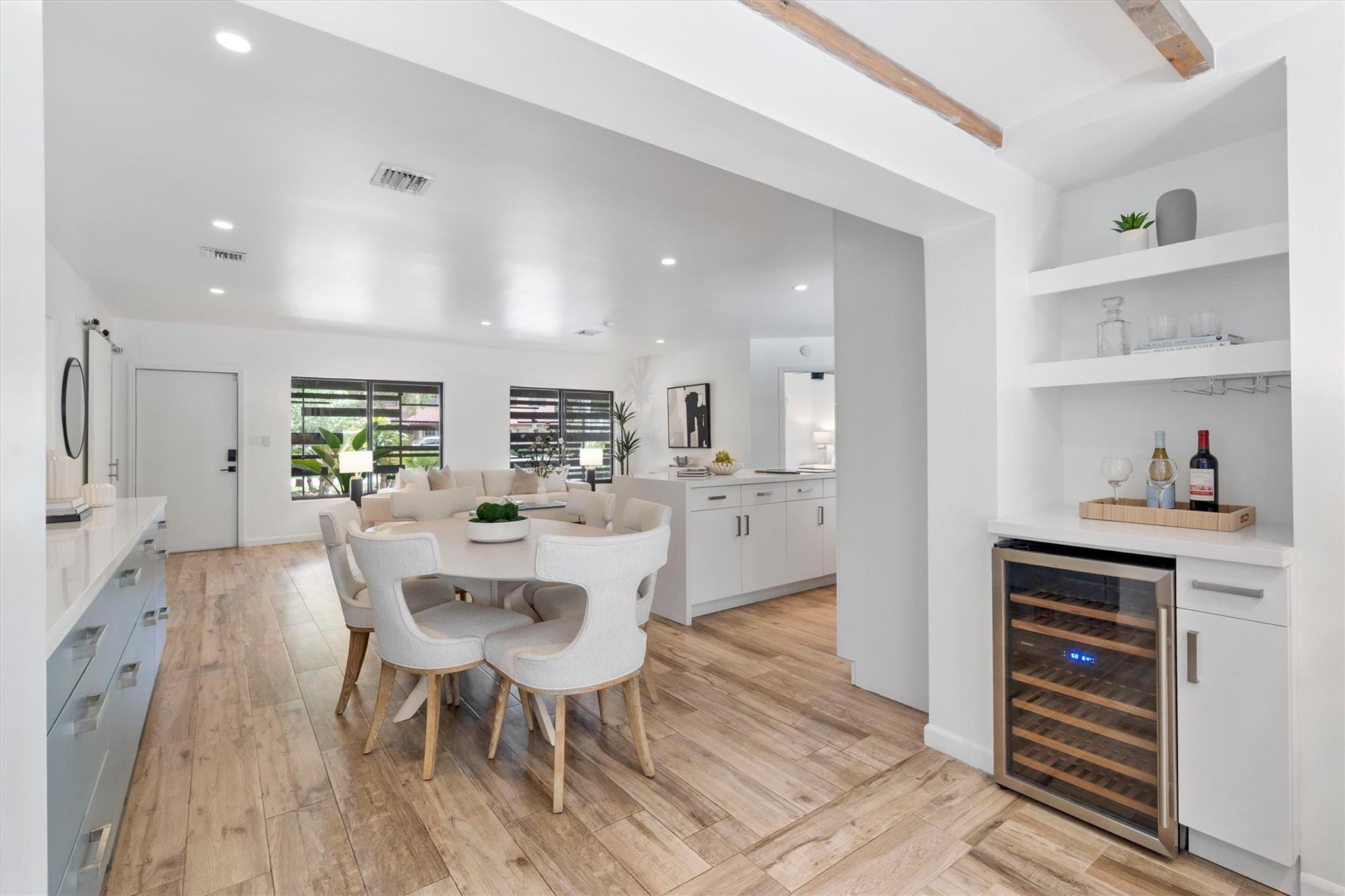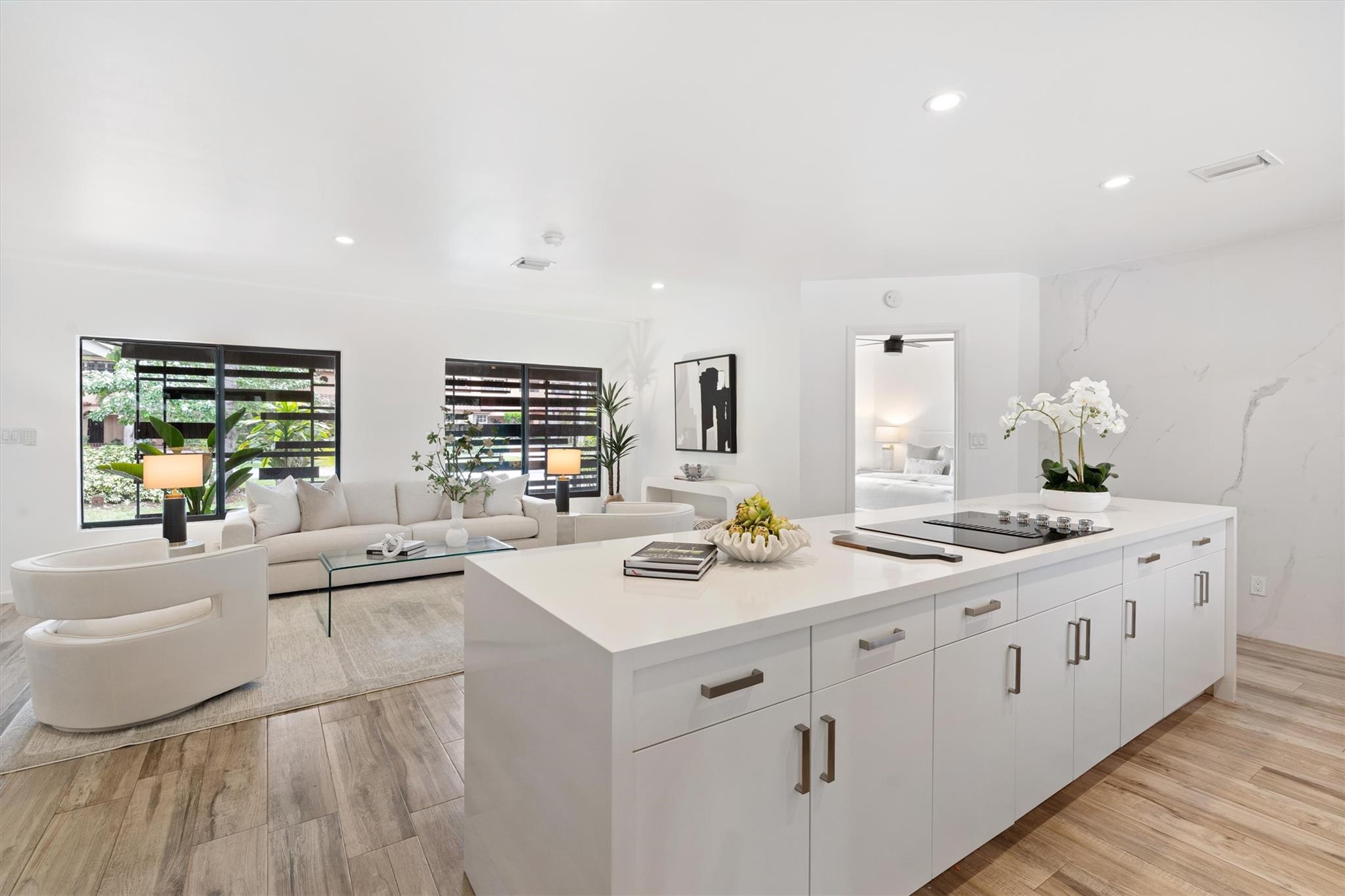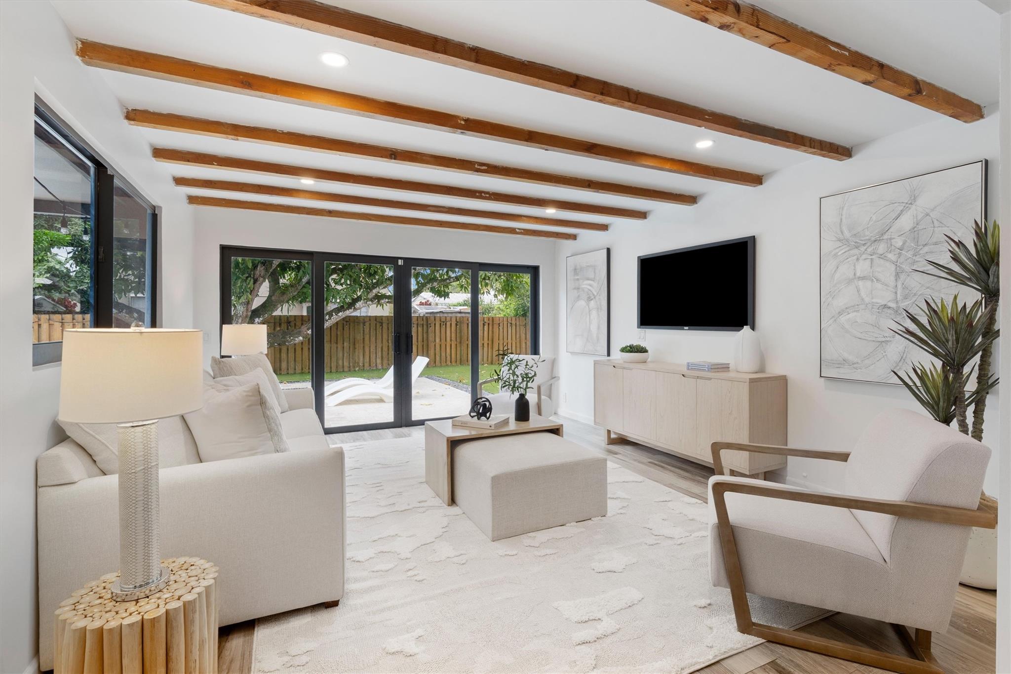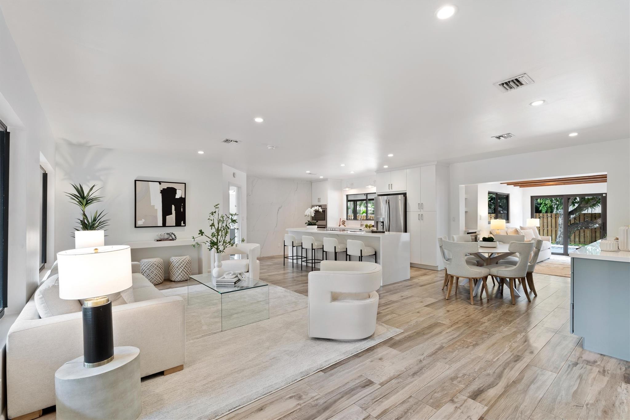 Award winning, remodeled 3bed/3bath home in the highly desirable Placido Place neighborhood, a short walk to restaurants, shops, and nightlife on Wilton Drive. This spacious home offers an open floor plan with expansive living and entertaining areas. The gourmet kitchen is truly chef inspired w/ a large quartz island and double ovens. A wall of glass in the family room opens to a private, fenced backyard oasis with a sparkling heated saltwater pool and a large covered outdoor patio—ideal for entertaining and dining al fresco. Wood plank tile flooring runs throughout the home, and impact windows and doors provide added security and energy efficiency. This move-in ready home blends modern upgrades with a premium walkable neighborhood close to everything.