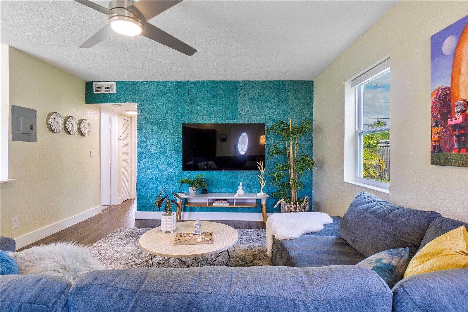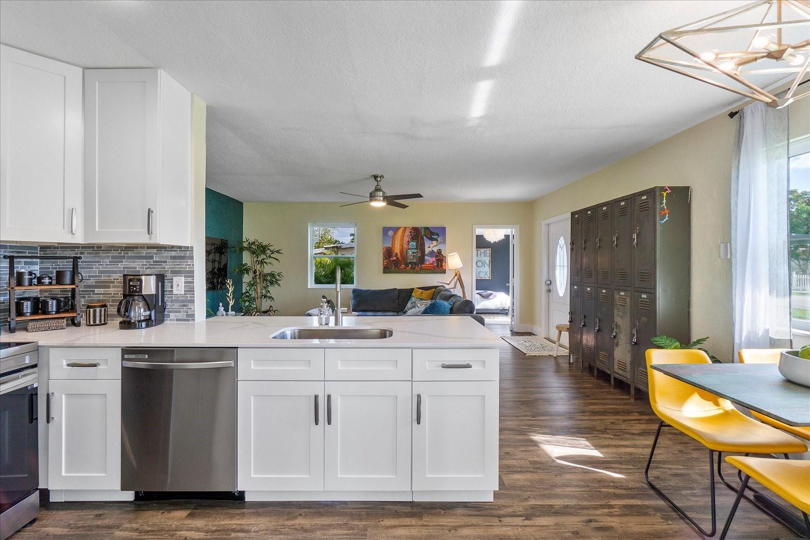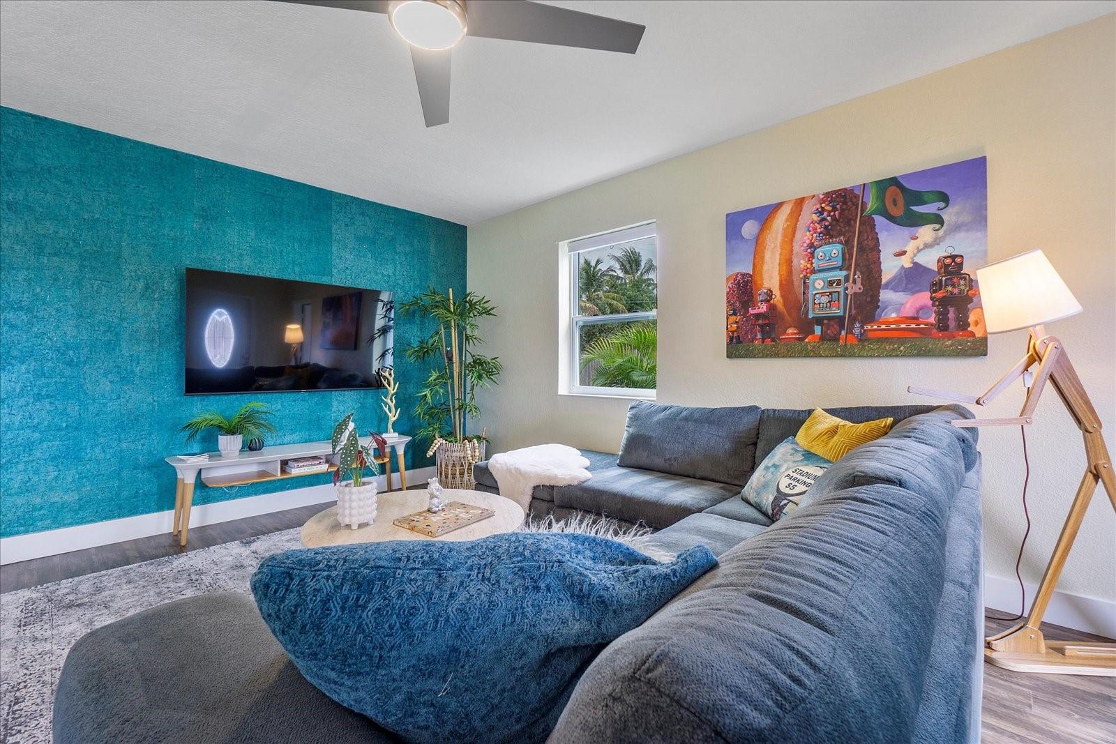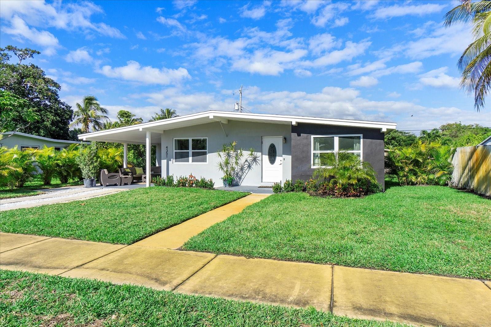 This amazing 3/1 mid century updated home in Pompano Beach is all ready for you! Kitchen features modern cabinets, quartz countertops, stainless steel appliances. Features include 2021 roof, dual air conditioning units and ceiling fans. The property also features impact windows, providing an extra layer of safety. Stepping outside, you'll find a generous grassy yard equipped with an outdoor shower. The property also includes a storage room/laundry room with a full-sized front-loading washer and dryer. No HOA. Only 4 miles to the beach this quiet homes location can’t be beat. This won’t last long, make an appointment to see for yourself!