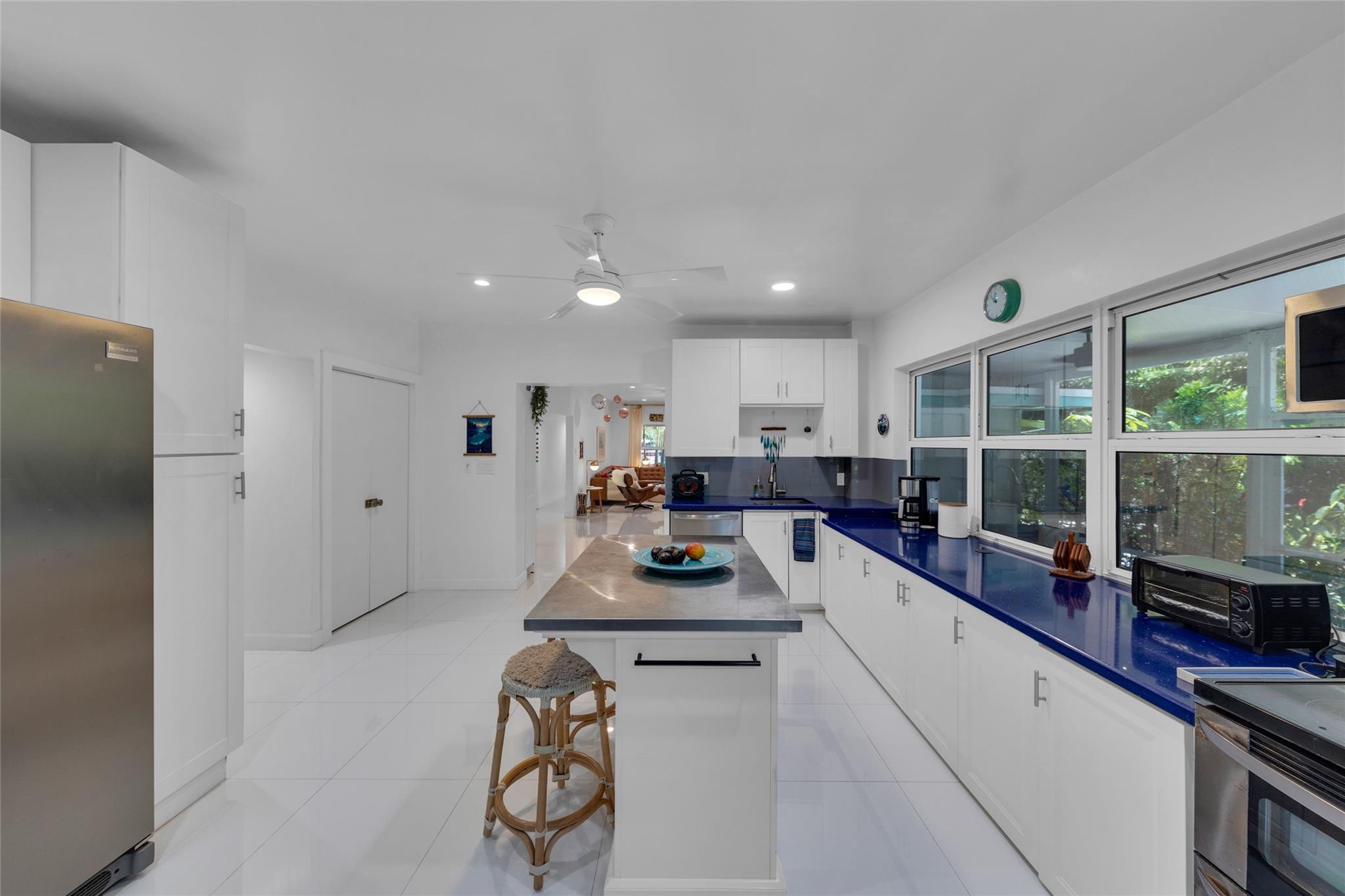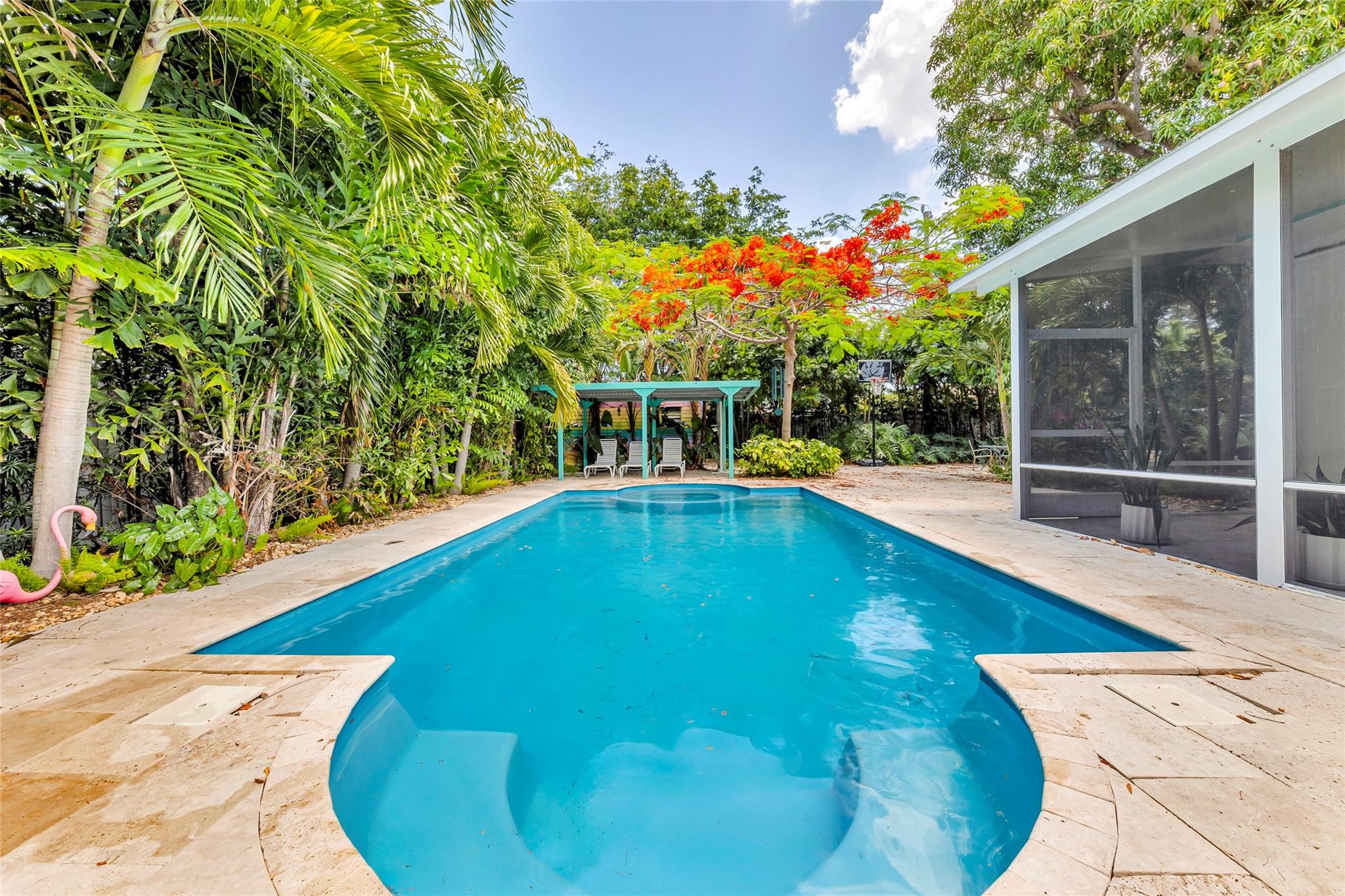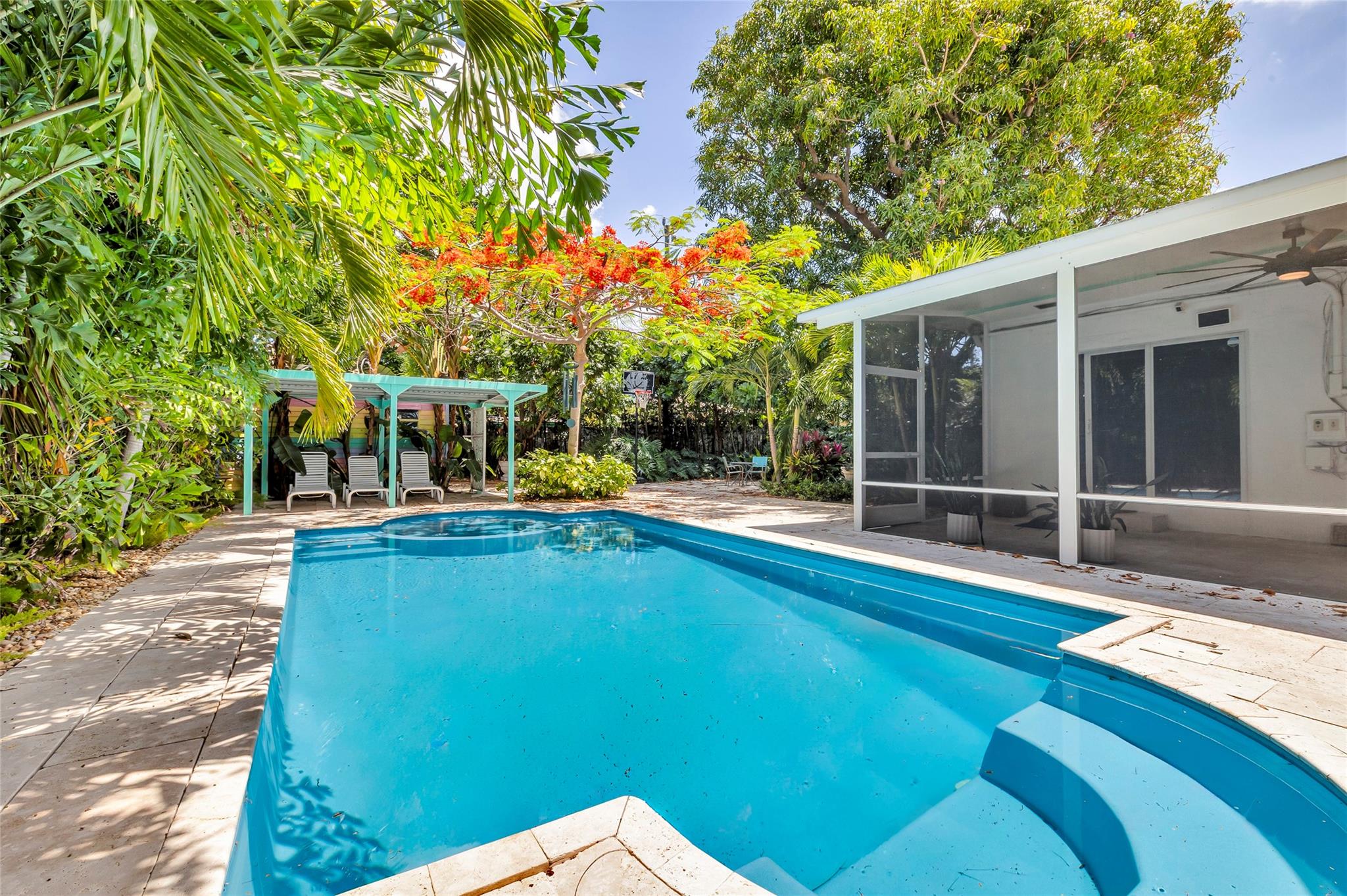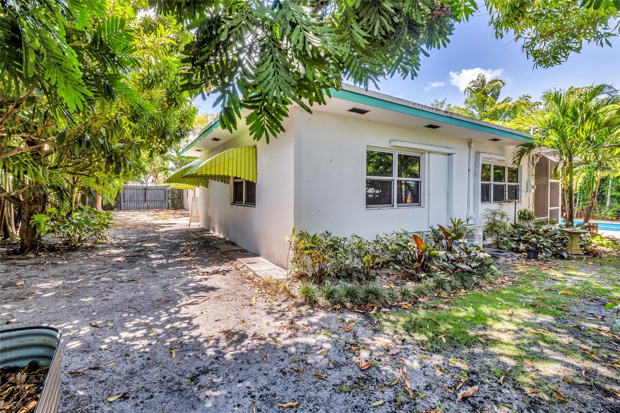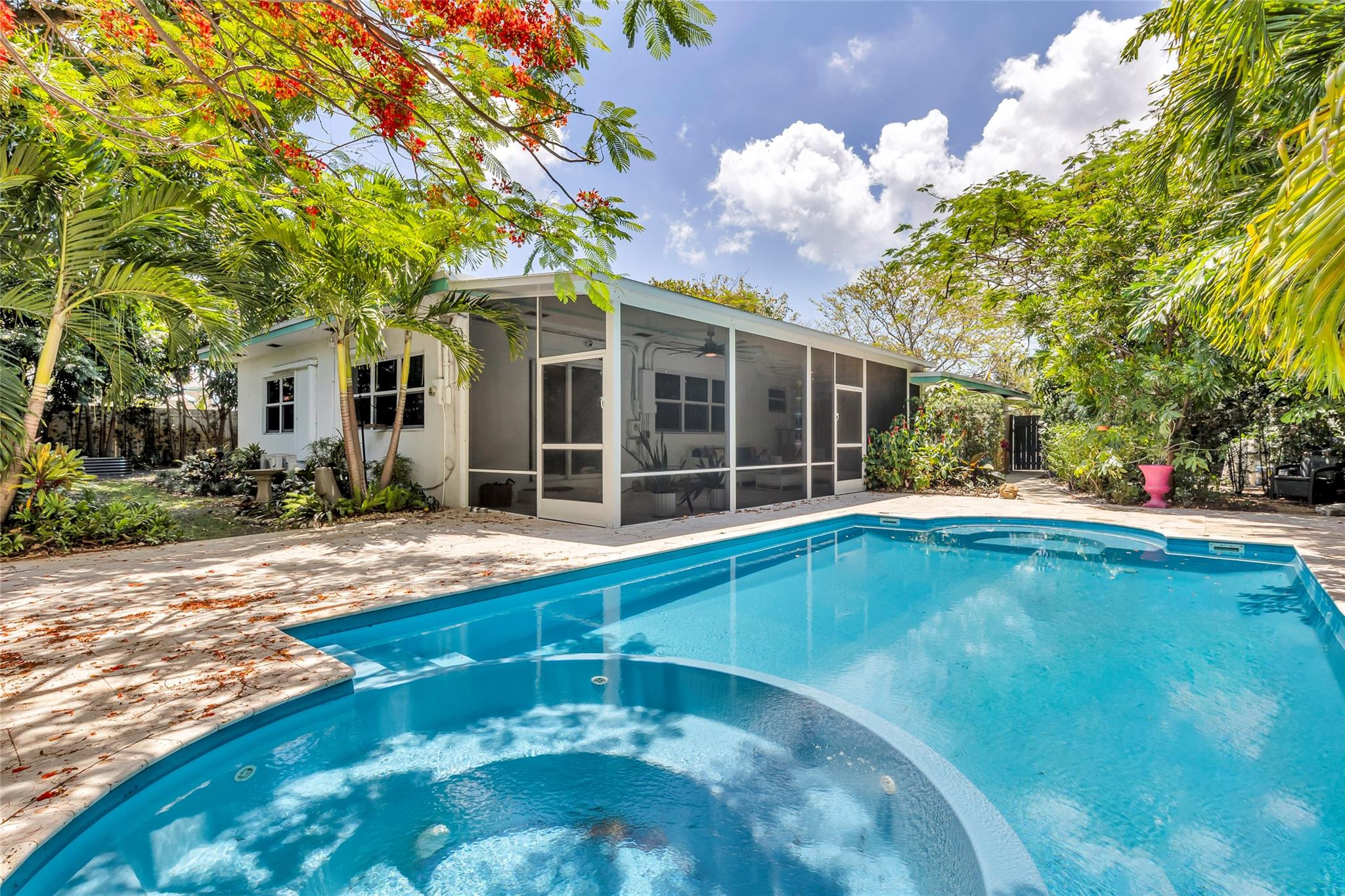 Unique Oasis in Historic Pompano Beach! Spacious & bright 4 bedroom & 3 bathroom + den pool home located on a large oversized lot. This Florida Keys inspired property features a private mother-in-law suite ideal for guests or multigenerational living. The home is surrounded by lush tropical landscaping, mature fruit trees, and both a resort style pool/spa, pergola and screened in porch perfect for outdoor entertaining and relaxation. Interior highlights include a light filled open floor plan, large kitchen, impact windows and doors, newer roof, coastal finishes, and a light & bright area atmosphere throughout. Home has split unit air-conditioning system = efficient electricity bills. Unique tropical retreat, neat beaches, shopping, dining & major highways. Private side yard for boat or RV.