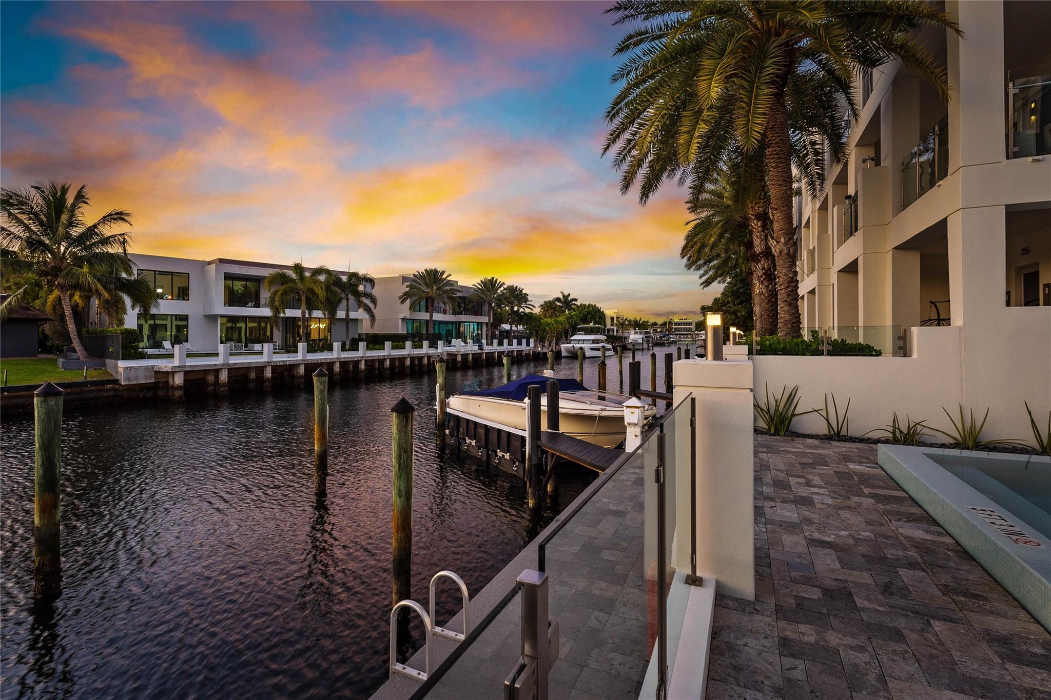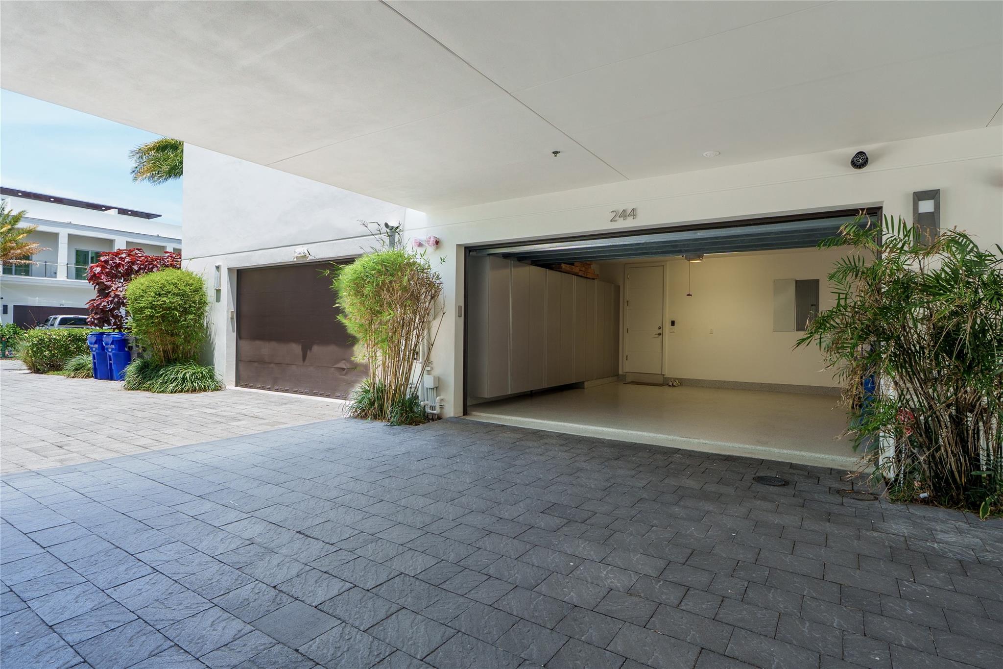 Coastal charm meets elevated elegance at this four-level, modern townhouse in the beach town of Lauderdale-by-the-Sea. With 3 spacious bedrooms and 3.5 baths, this like-new residence offers stylish living across three interior levels, plus a private rooftop terrace with 360° views. The ground floor features a 2-car garage with custom storage, entry courtyard, and en-suite bedroom/office. A floating staircase leads to a designer kitchen, pantry, laundry, spacious living area, terrace, powder room, and second bedroom with full bath. The third-floor primary suite stuns with dual walk-ins, soaking tub, and luxe shower. Private elevator, community pool, hydro-spa, and boat slips (as available). Walk to beach, dining, shops. Unmatched value.
