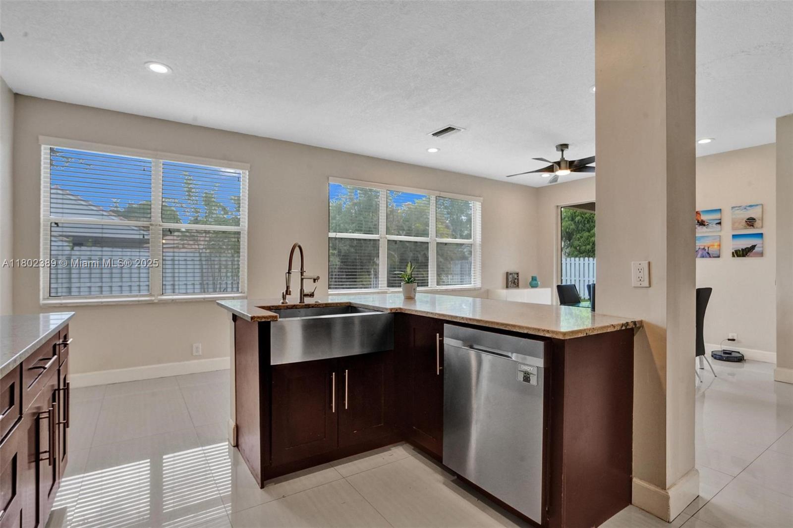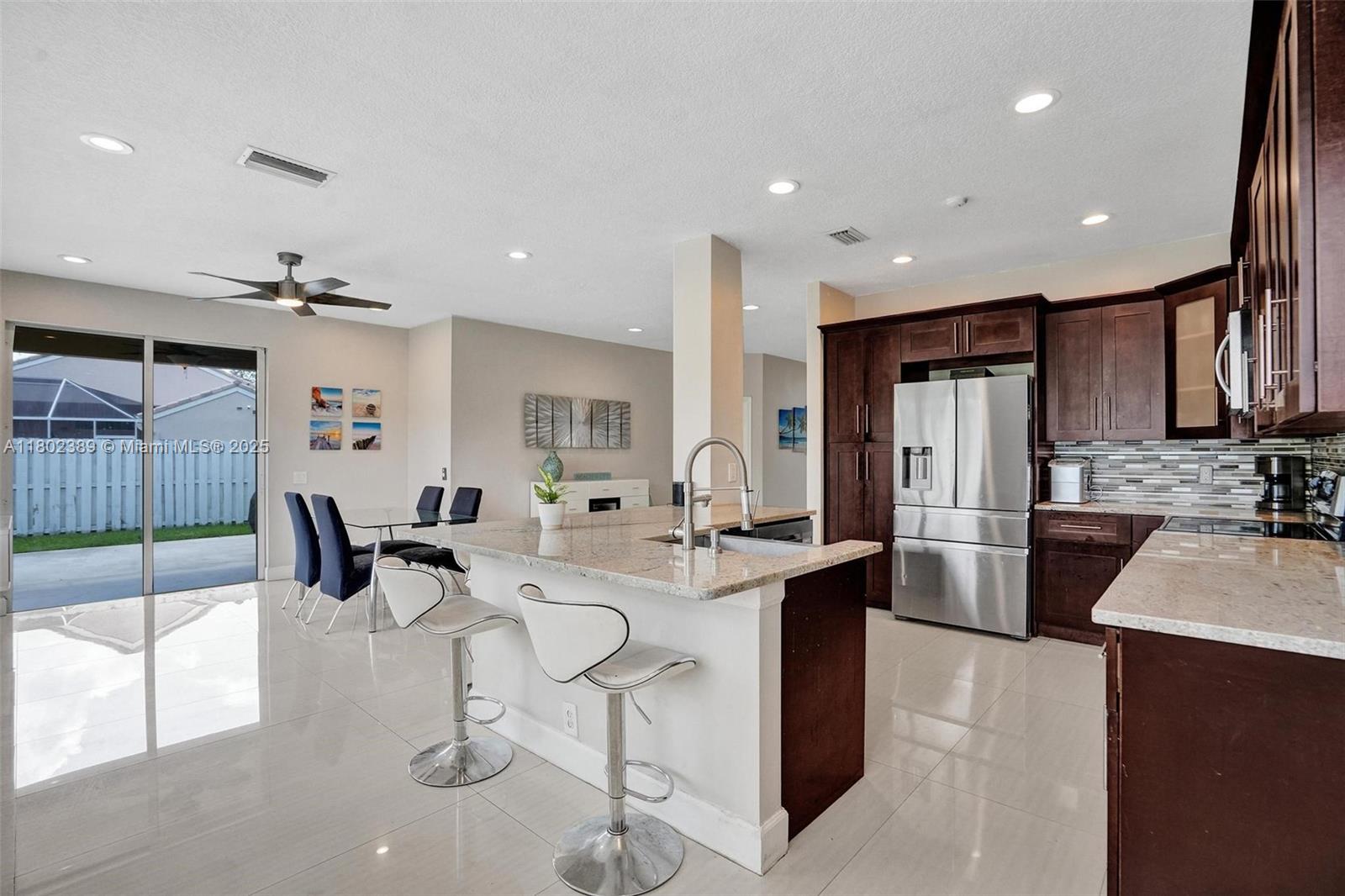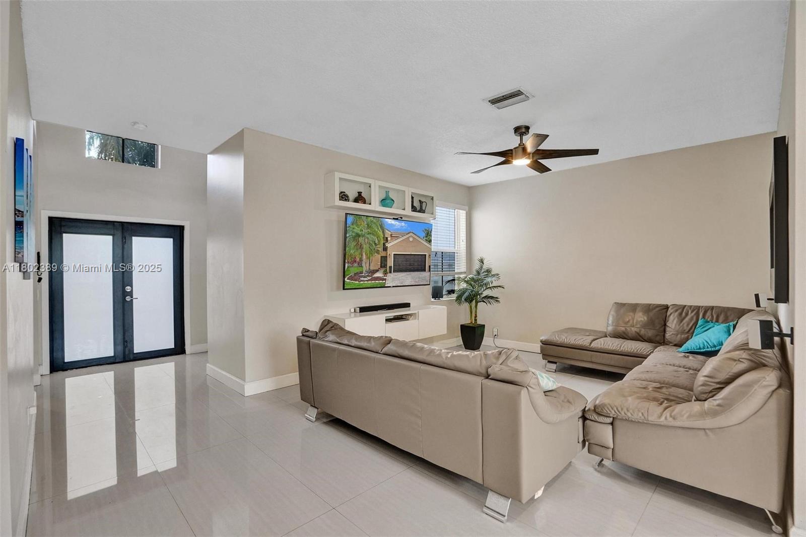 Beautiful 4-bed, 2.5-bath home in The Falls, Weston, nestled on a quiet cul-de-sac in a guard-gated community. This updated home also has a Roof & AC approximately 6.5 years new. Master suite on the first floor features a custom closet & upgraded bath with large shower and dual sinks. Upstairs offers three spacious bedrooms and a fully renovated bathroom. Open floor plan with high ceilings & abundant natural light. Updated kitchen with updated appliances, wood cabinets, and granite countertops. Extended covered patio perfect for entertaining, with plenty of space for a pool, gazebo and more. Tile flooring on the first floor, vinyl on stairs and second floor. Additional features include newer roof, AC, recessed lighting, updated half bath downstairs, laundry room under air, & 2-car garage.