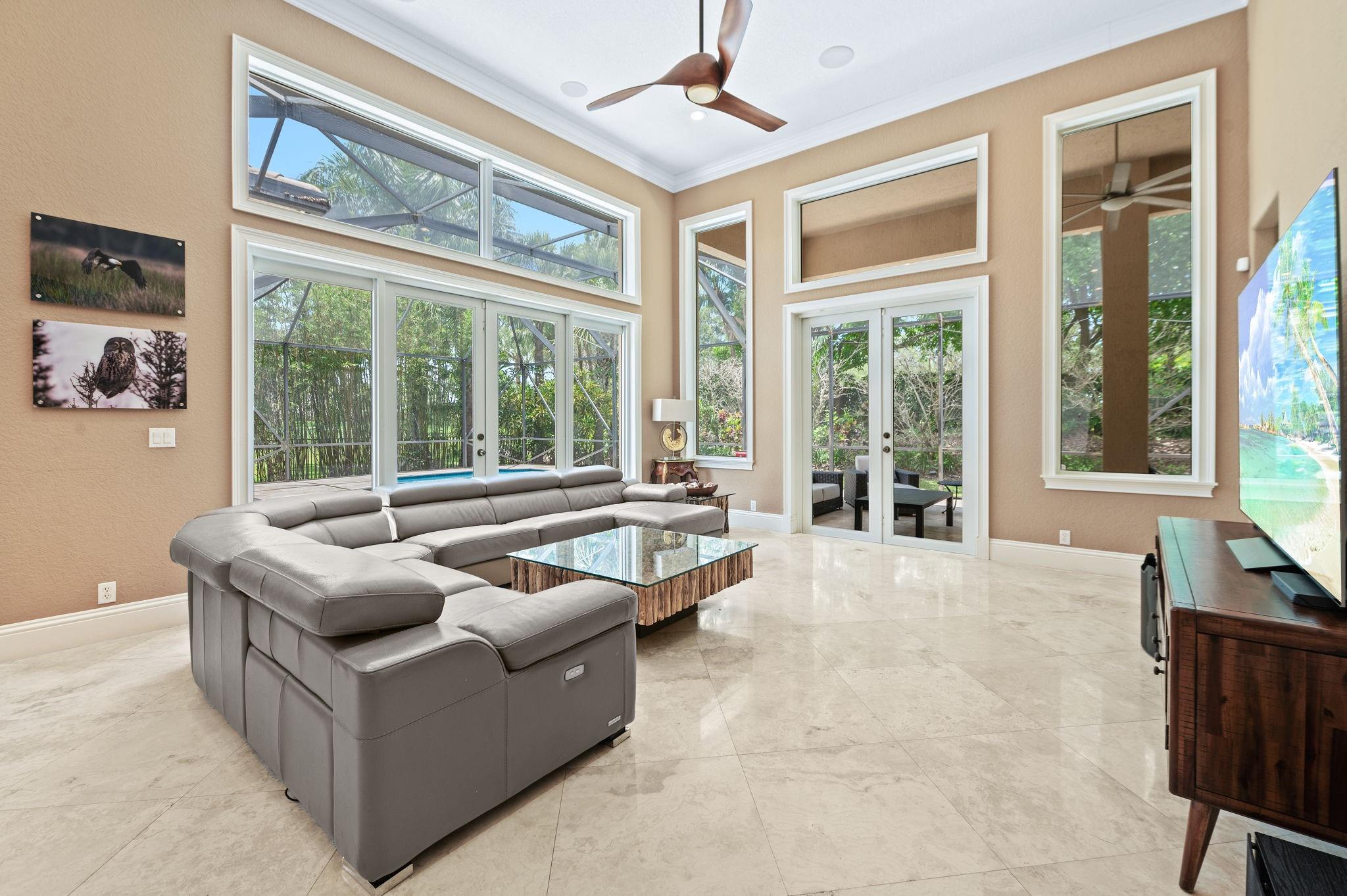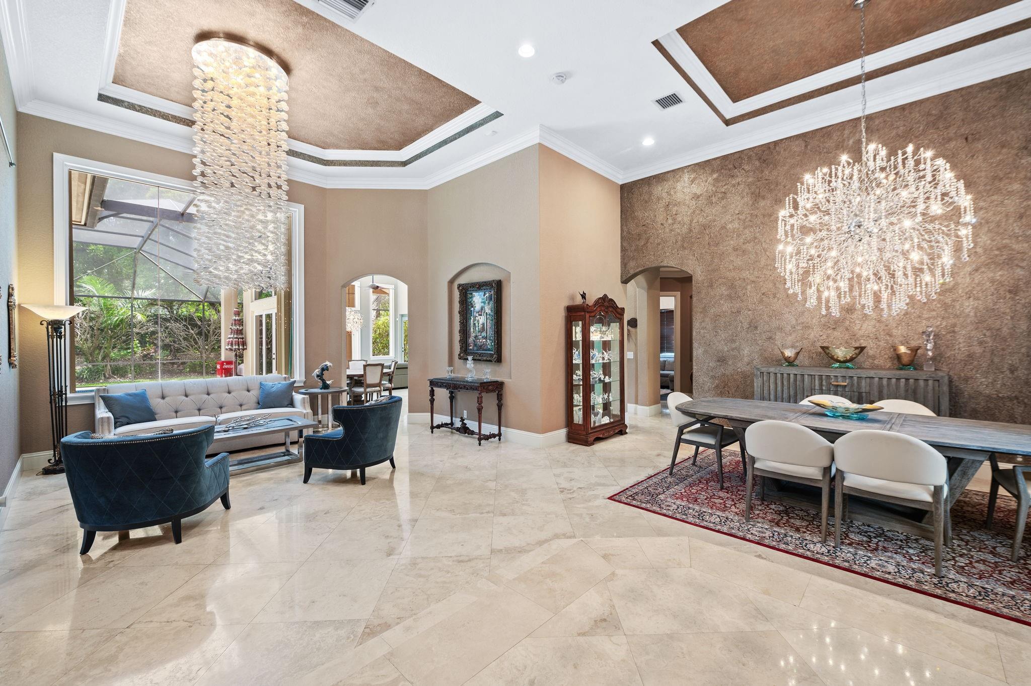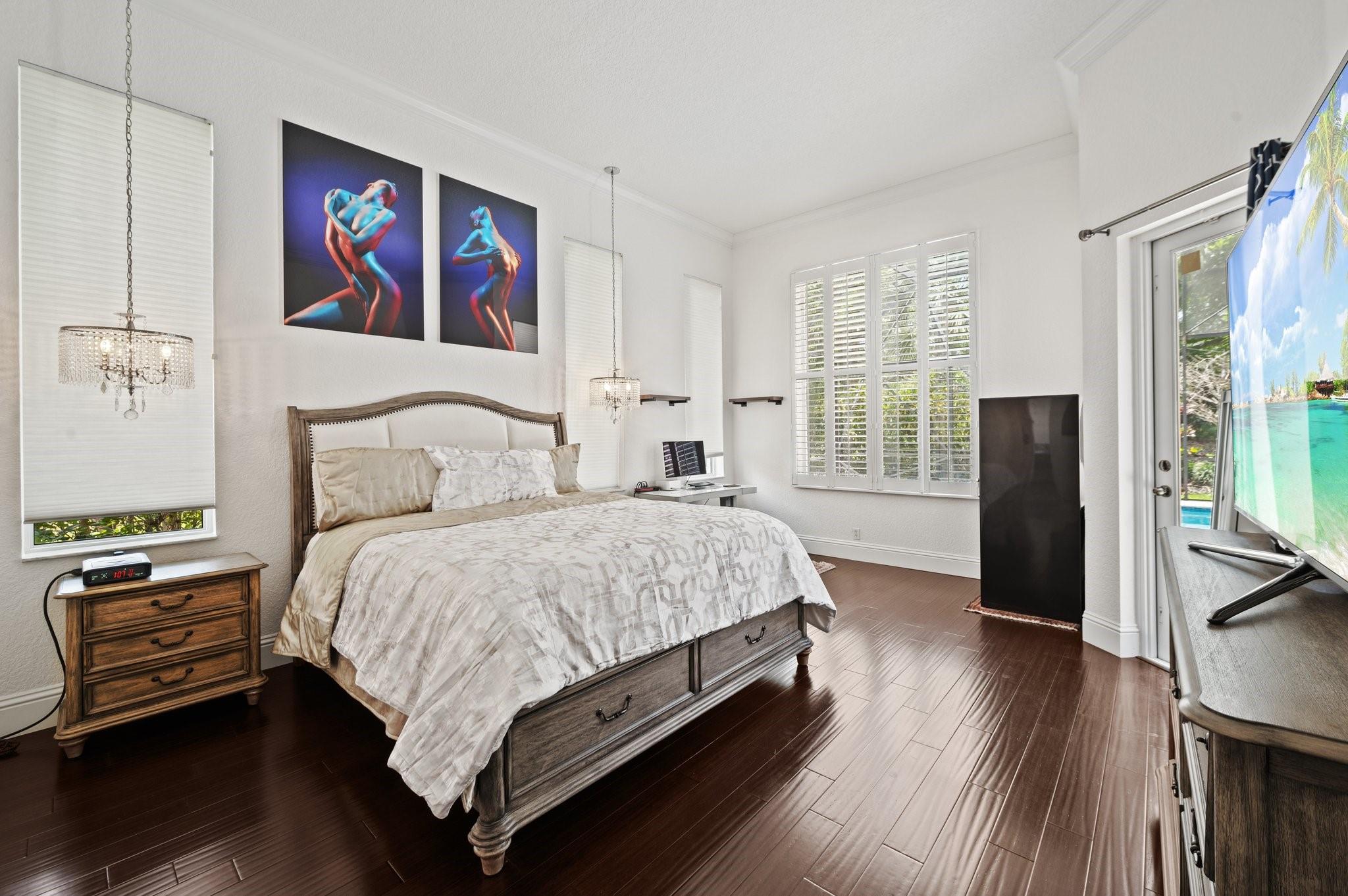 This beautifully updated 5-bedroom, 3-bath home features a stunning saltwater pool w/ a marble patio & impact glass windows & doors. The interior boasts a split floor plan, high ceilings, & luxurious finishes like Saturnia marble & Brazilian bamboo wood flrs. The modern kitchen offers custom 53-inch wood cabinets, a large island, & Quartzite counters & backsplash, w/ top-of-the-line SS appliances. The home also includes elegant lighting features like pendant lights, & chandeliers. Additional highlights include 2017 5- ton 3-ton AC units, a custom master closet system & a laund. rm that is equipped w/ a GE Profile washer & dryer. The exterior is professionally landscaped w/ lighting & features a comprehensive irrigation system, & custom walkways. This home combines luxury & functionality