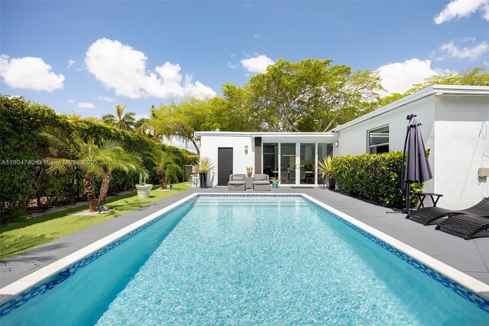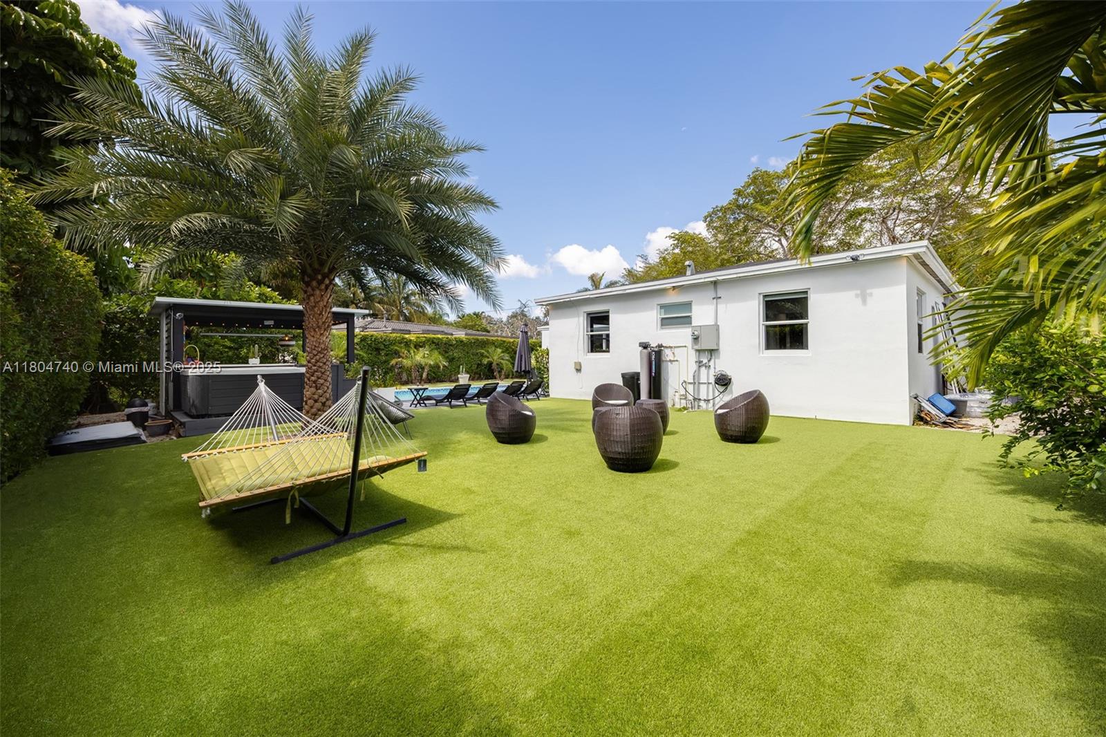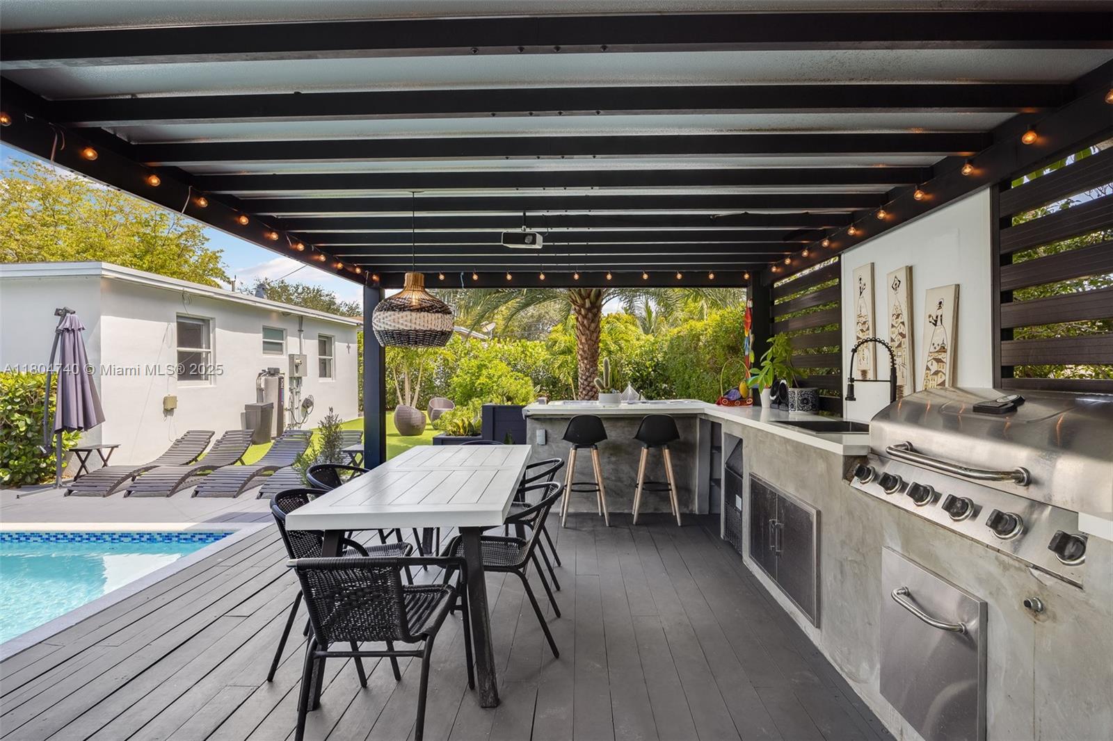 Stunning fully renovated 3-bed, 4-bath home in North Miami with 1,732 SF of living space. Features include a modern kitchen with Samsung appliances, en-suite baths in all bedrooms, plus a 4th bath accessible from the living room and pool. Upgrades include new porcelain tile, A/C, air ducts, plumbing, electrical, roof, impact windows, and pool with wood deck. Over $100K in additional improvements: full outdoor kitchen, deck, pergola, hot tub, turf, landscaping, and a full home water filtration system with hydrogen water. All work done with permits.