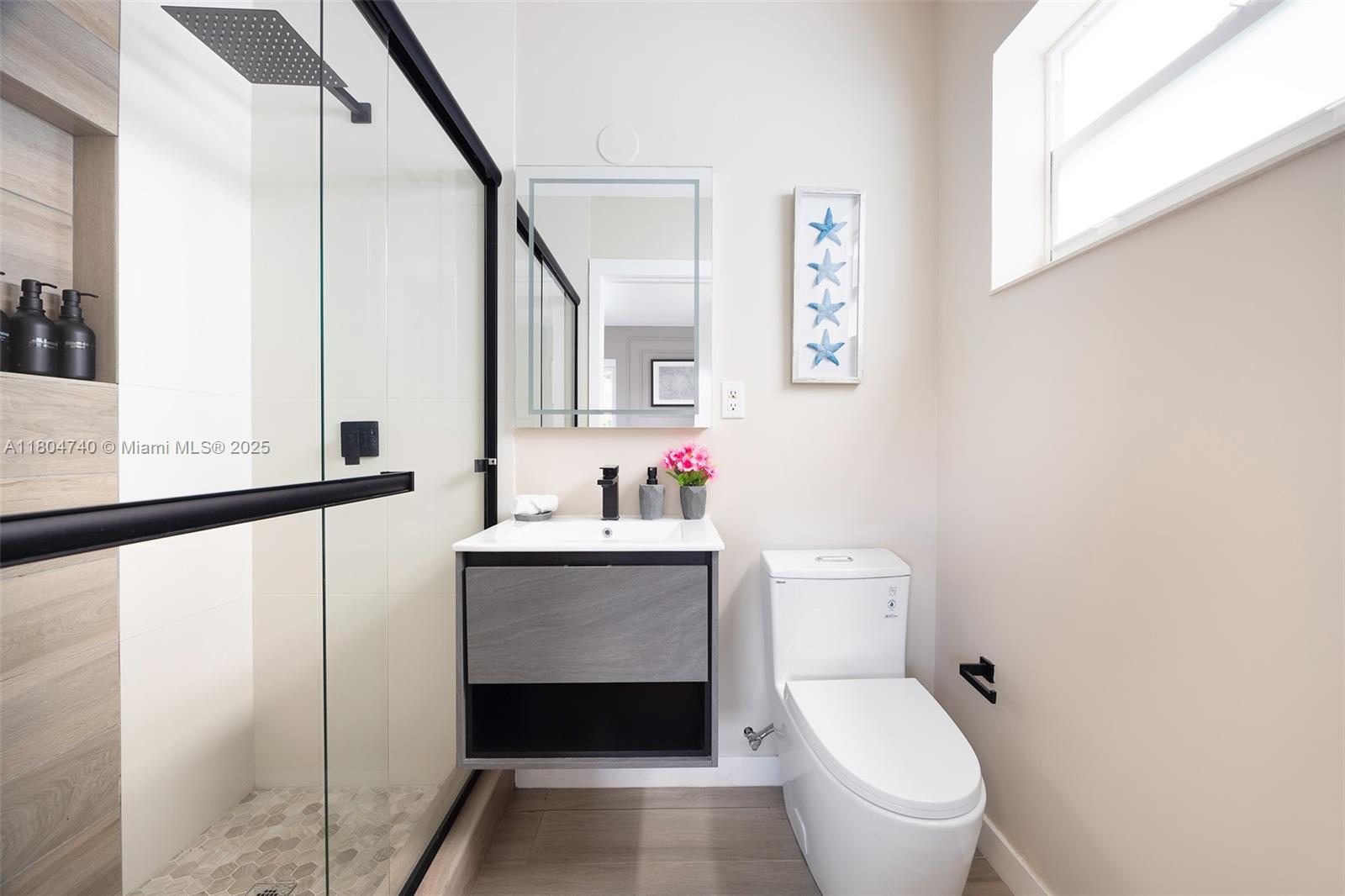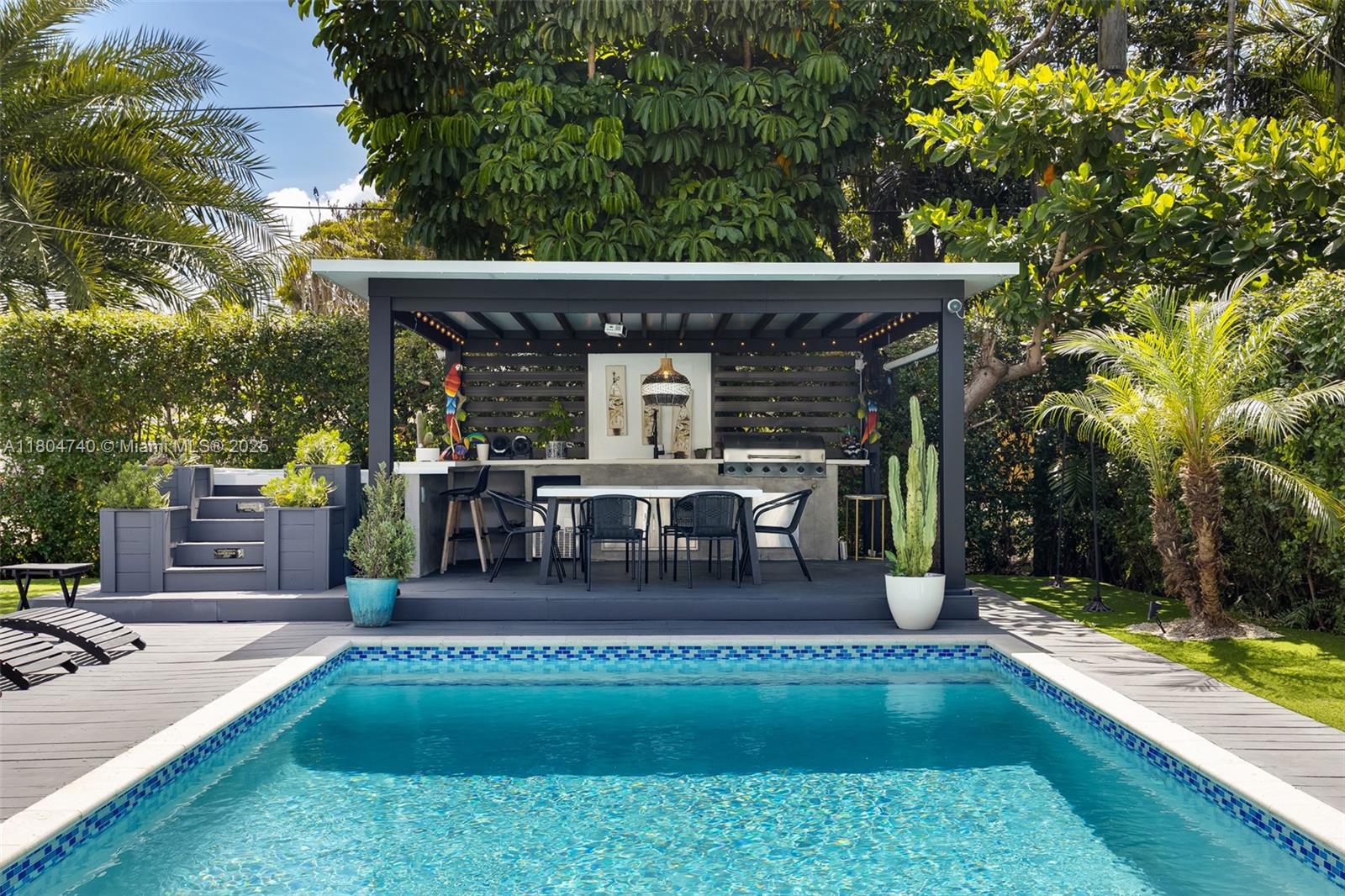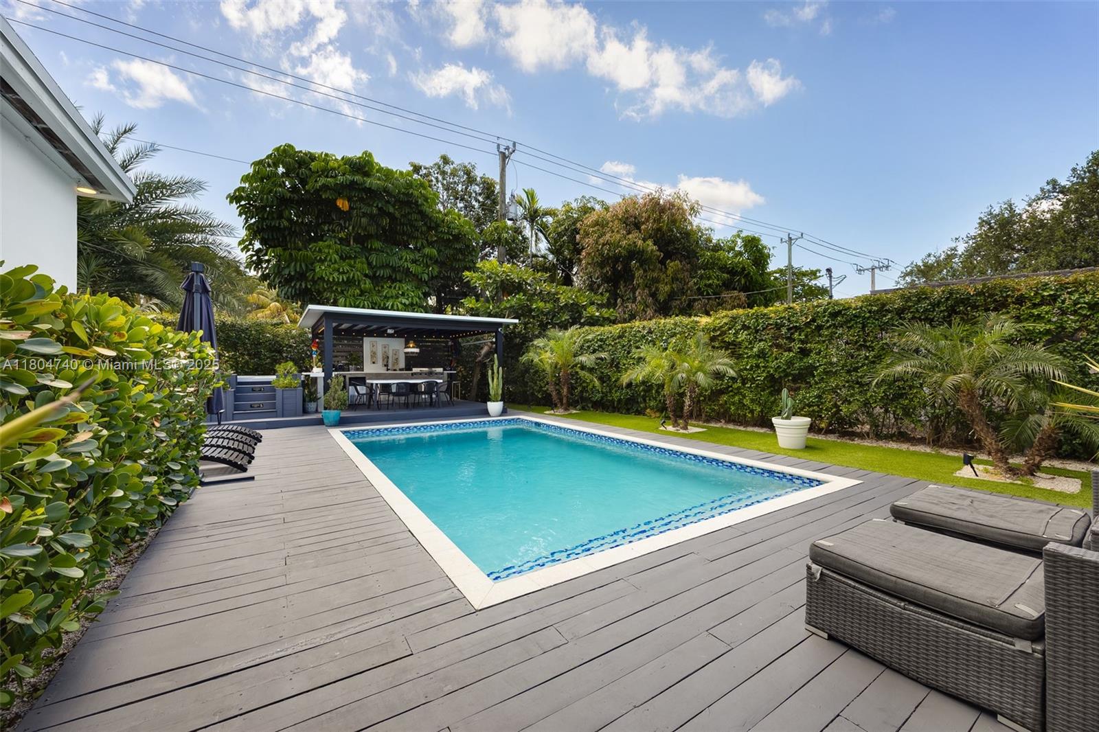 Stunning fully renovated 3-bed, 4-bath home in North Miami with 1,732 SF of living space. Features include a modern kitchen with Samsung appliances, en-suite baths in all bedrooms, plus a 4th bath accessible from the living room and pool. Upgrades include new porcelain tile, A/C, air ducts, plumbing, electrical, roof, impact windows, and pool with wood deck. Over $100K in additional improvements: full outdoor kitchen, deck, pergola, hot tub, turf, landscaping, and a full home water filtration system with hydrogen water. All work done with permits.