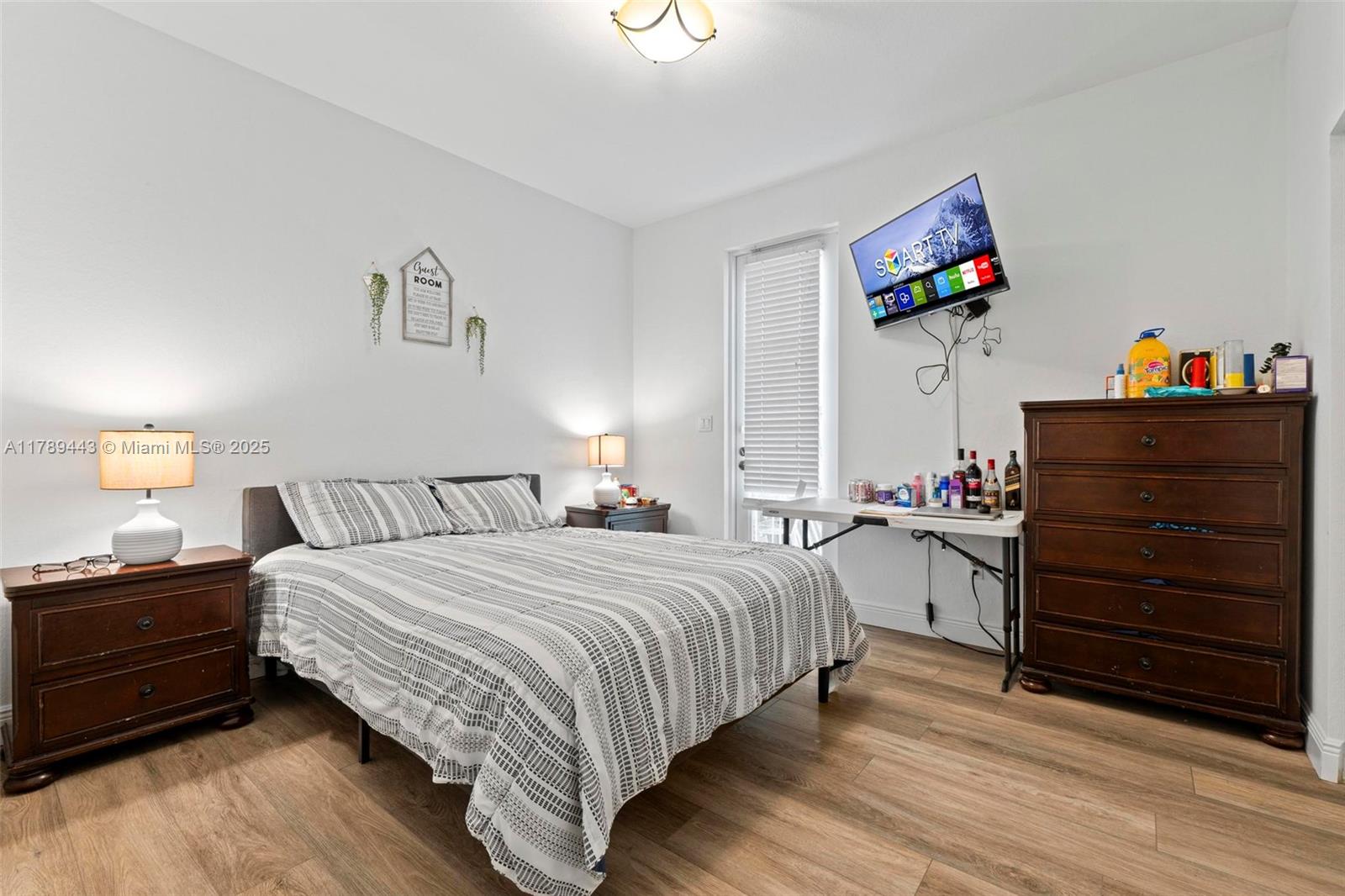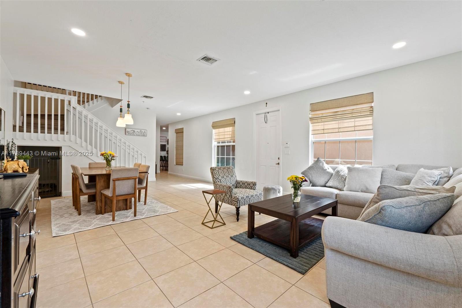 Beautifully maintained 3-bedroom, 3-bathroom home located in a prime Pembroke Pines neighborhood! This spacious property features a modern kitchen with stainless steel appliances, ceramic tile flooring throughout the main living areas, and laminate flooring in all bedrooms and on the staircase—no carpet anywhere! The functional layout includes a full bedroom and bathroom on the first floor, ideal for guests or multigenerational living. Laundry is conveniently located downstairs. The home also features an attached garage equipped with a Tesla charger, plus plenty of surrounding guest parking. Located near top-rated schools, shopping, dining, and major highways.