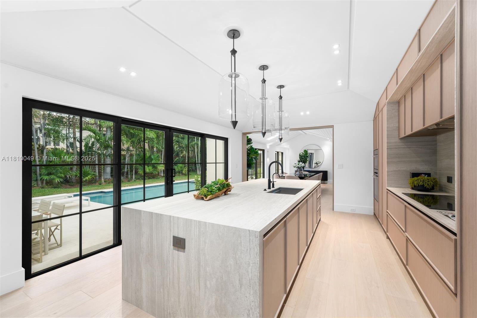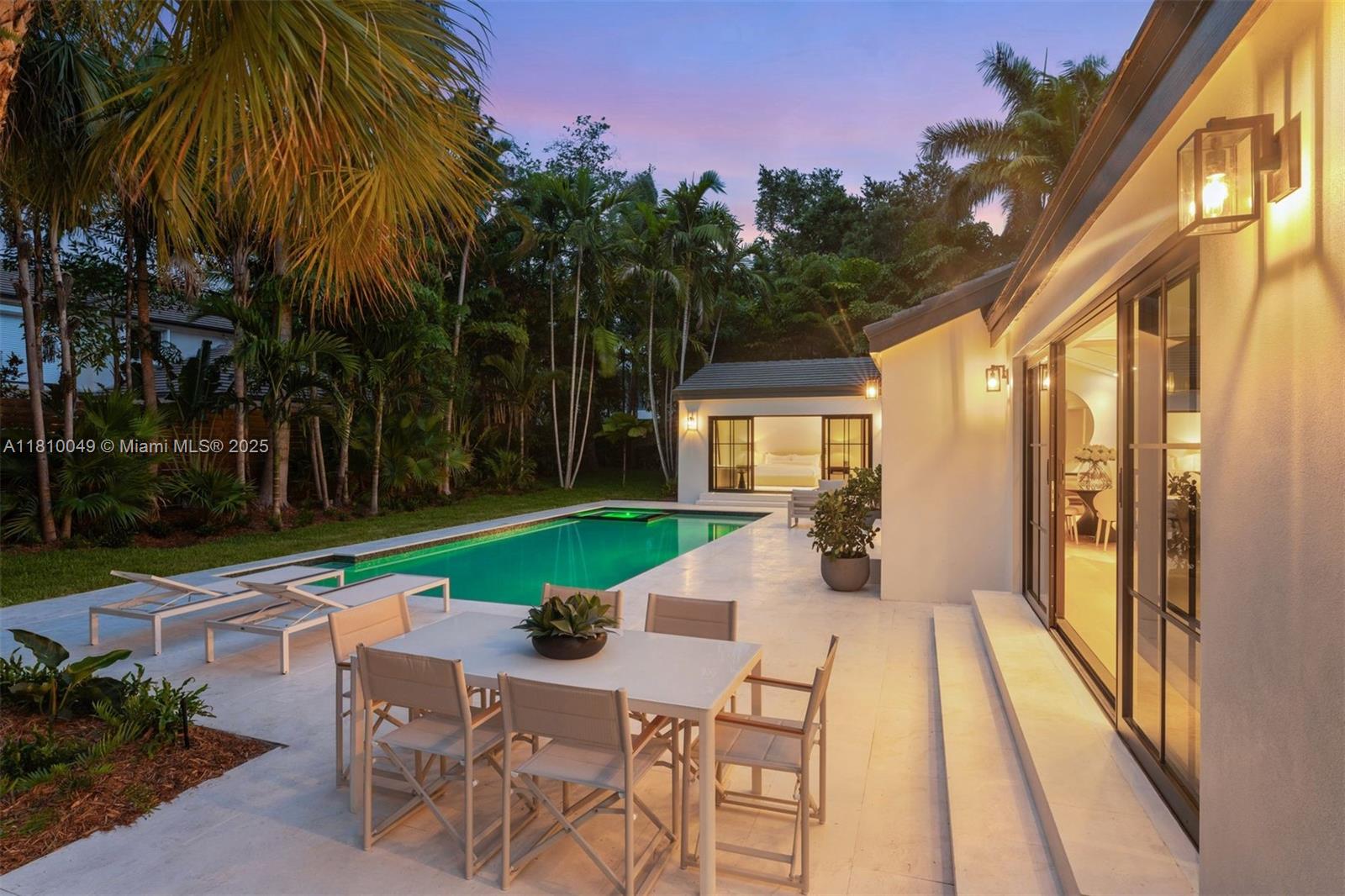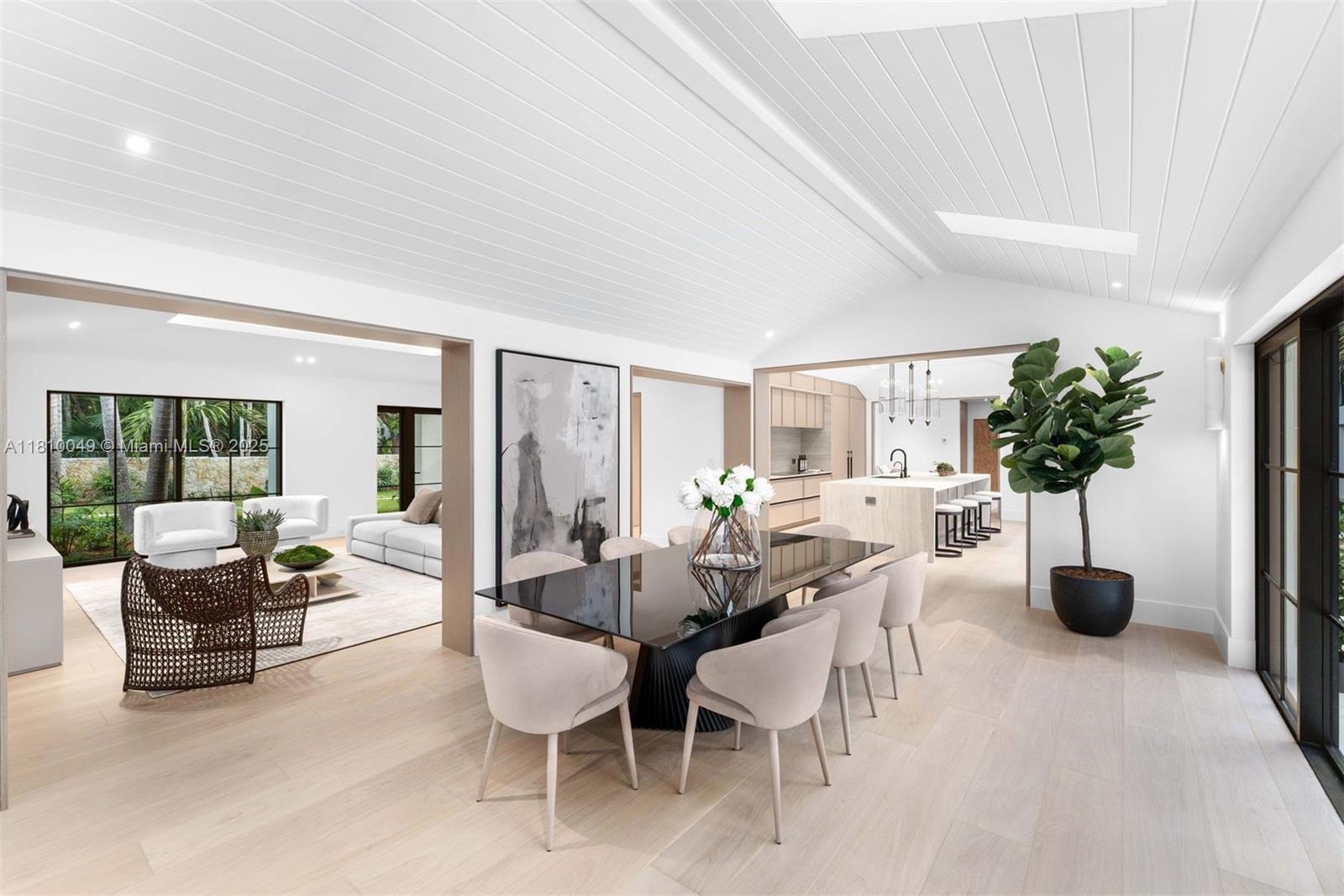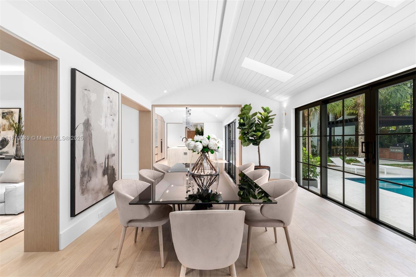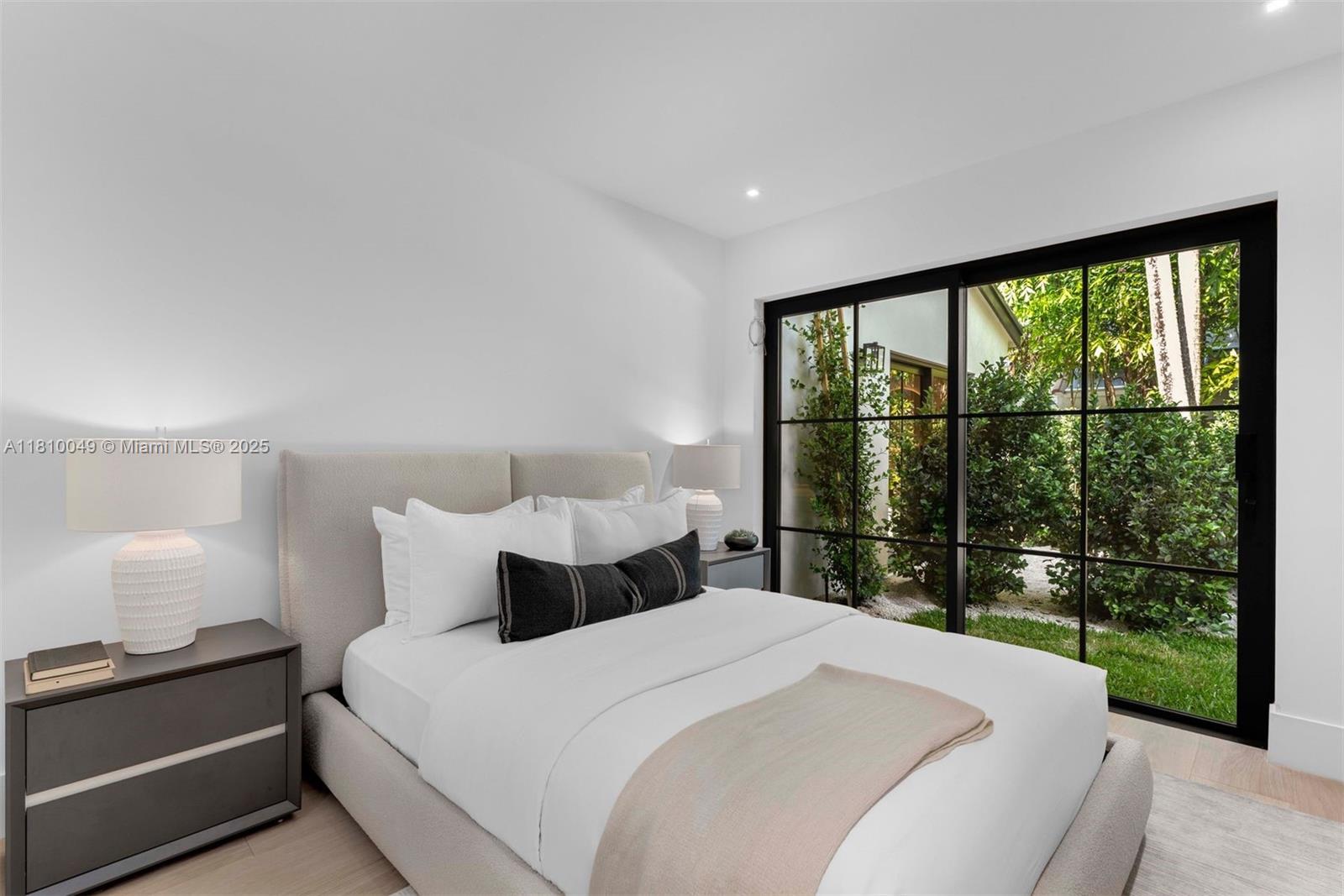 Located in the private and exclusive gated neighborhood of Ye Little Woods in Coconut Grove, this new luxury residence by CASA Development, designed by Farache Bromberg Design Studio, offers 5,077 SF of living space on a spacious 16,530 SF lot. It features 6 BD + flex room, 7.5 BA, bronze windows by Linea Rossa, hardwood floors, and a custom made kitchen with Miele appliances and Dekton countertops. Outdoors, enjoy a large pool, built-in BBQ under a pergola, shell-stone deck, a guest house with a kitchenette, and an attached garage. Modern comforts include frameless glass shower doors, infinity drains, La Cava fixtures, custom millwork, Cat6 wiring, Control 4 home system, alarm, security cameras, and built-in speakers. A perfect blend of sophistication and comfort.