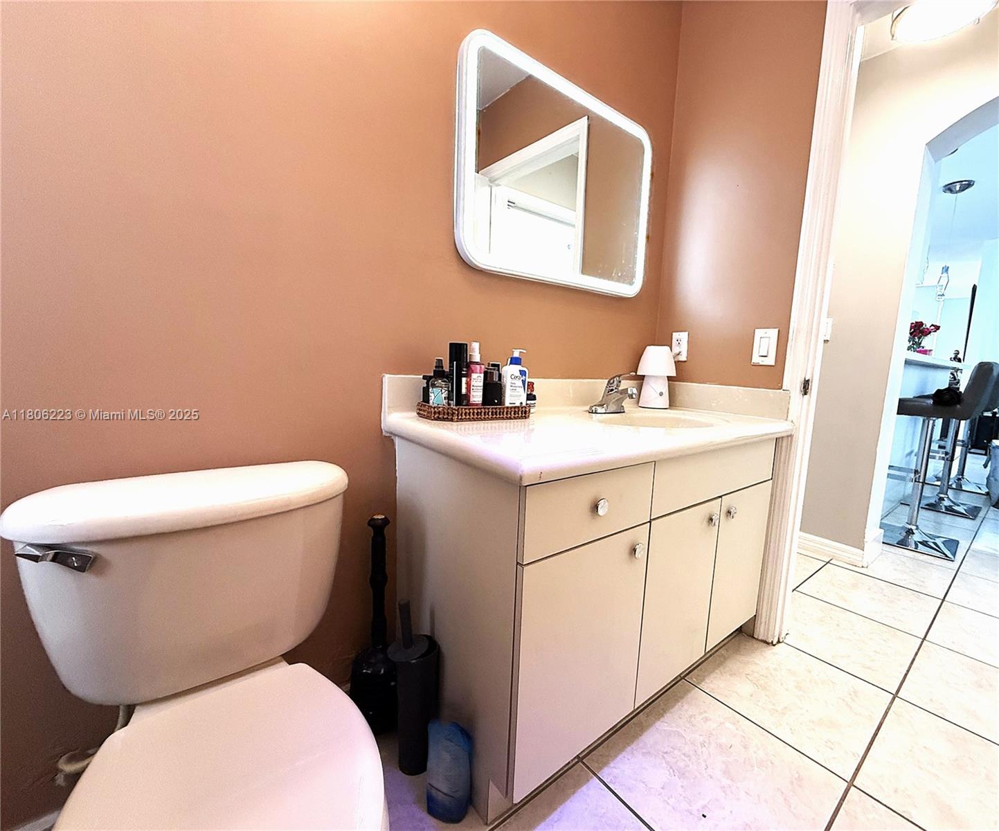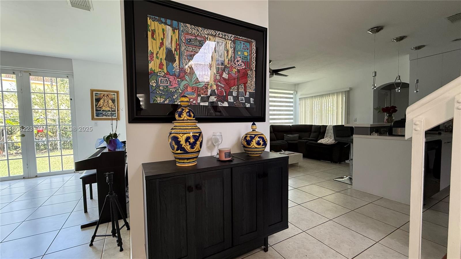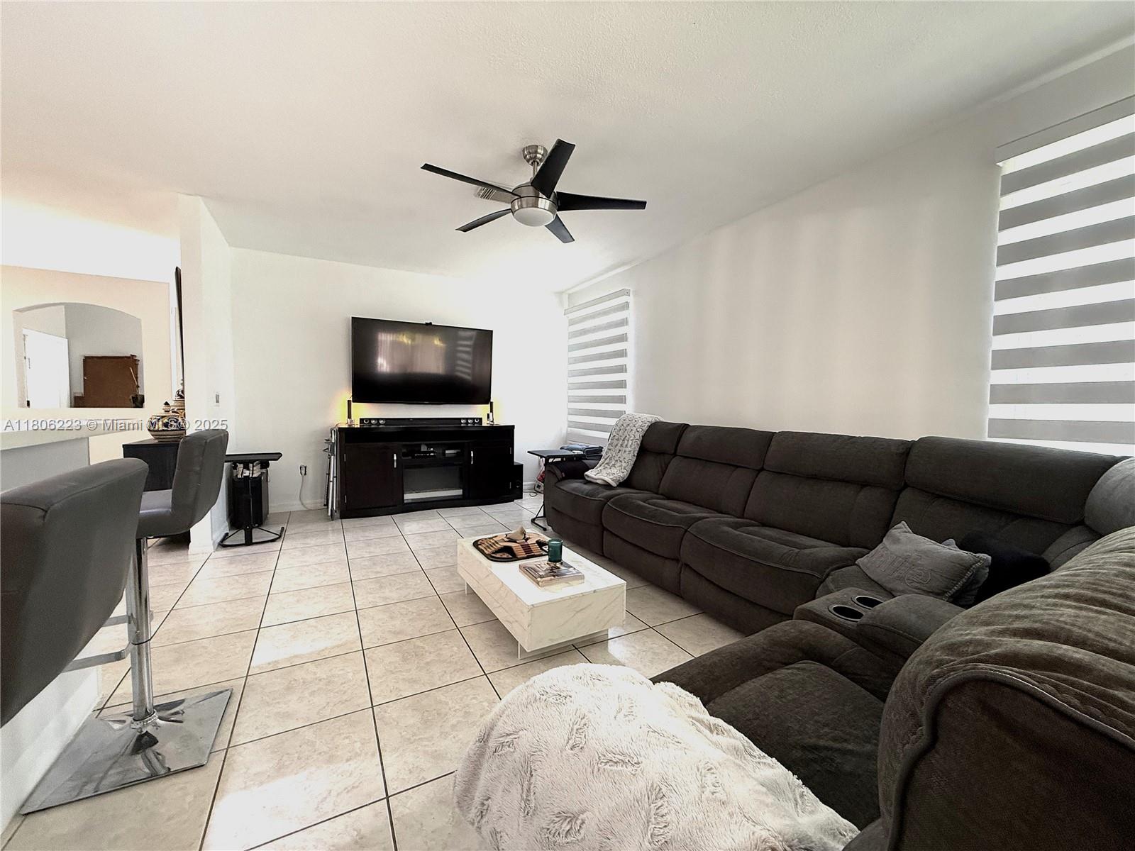 In the sought-after subdivision of Gardens Hills. This Spanish style home features arched doorways and red tile roofing for a classic design. You will be greeted by a generous size formal living and dining room, family room and kitchen combination. Kitchen remodeled with stainless steel appliances, new cabinets and quartz countertop. Bedroom and full bathroom located on the first level. The second level offers three bedrooms, including a master suite with en-suite bathroom, two additional bedrooms, a joining bathroom designed with ample space. Outside the property reveals a large fenced in back yard, perfect size to build a pool. The exterior was painted in 2024.This home has NO HOA. Combine the charm of Miami living, the convenience of being close to shopping, dining and major highways.