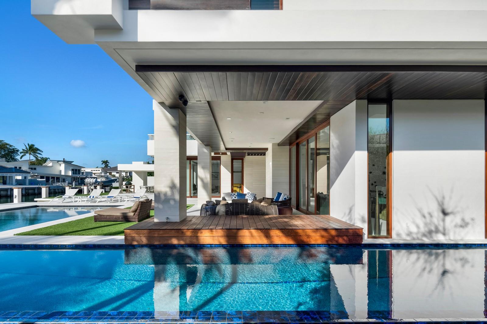 Welcome to 10 Pelican Drive—a super-custom tri-level organic modern estate blending clean lines with natural materials. 9300+sf Total Area built in 2014 with a major exterior renovation completed in 2024. 110ft of ocean-access dockage on a 130' deep lot. An orchid-lined courtyard with ipe yoga deck opens to interiors of polished limestone, ipe hardwood finished in a Brazilian baked varnish, and stone walls bathed in light. Sapele mahogany framed impact glass reveals an 80-ft heated lap pool and sun shelf. Exterior pergola for outdoor dining and BBQ, with an opportunity to design your own summer kitchen. A Miele-appointed gourmet kitchen with gas stove, generator, elevator, and third-floor entertainment level with panoramic Intracoastal and skyline views complete this rare offering.