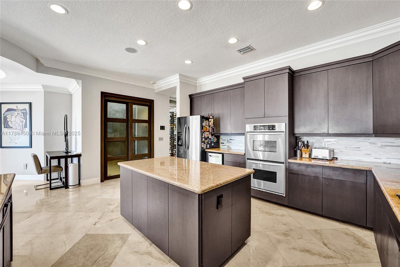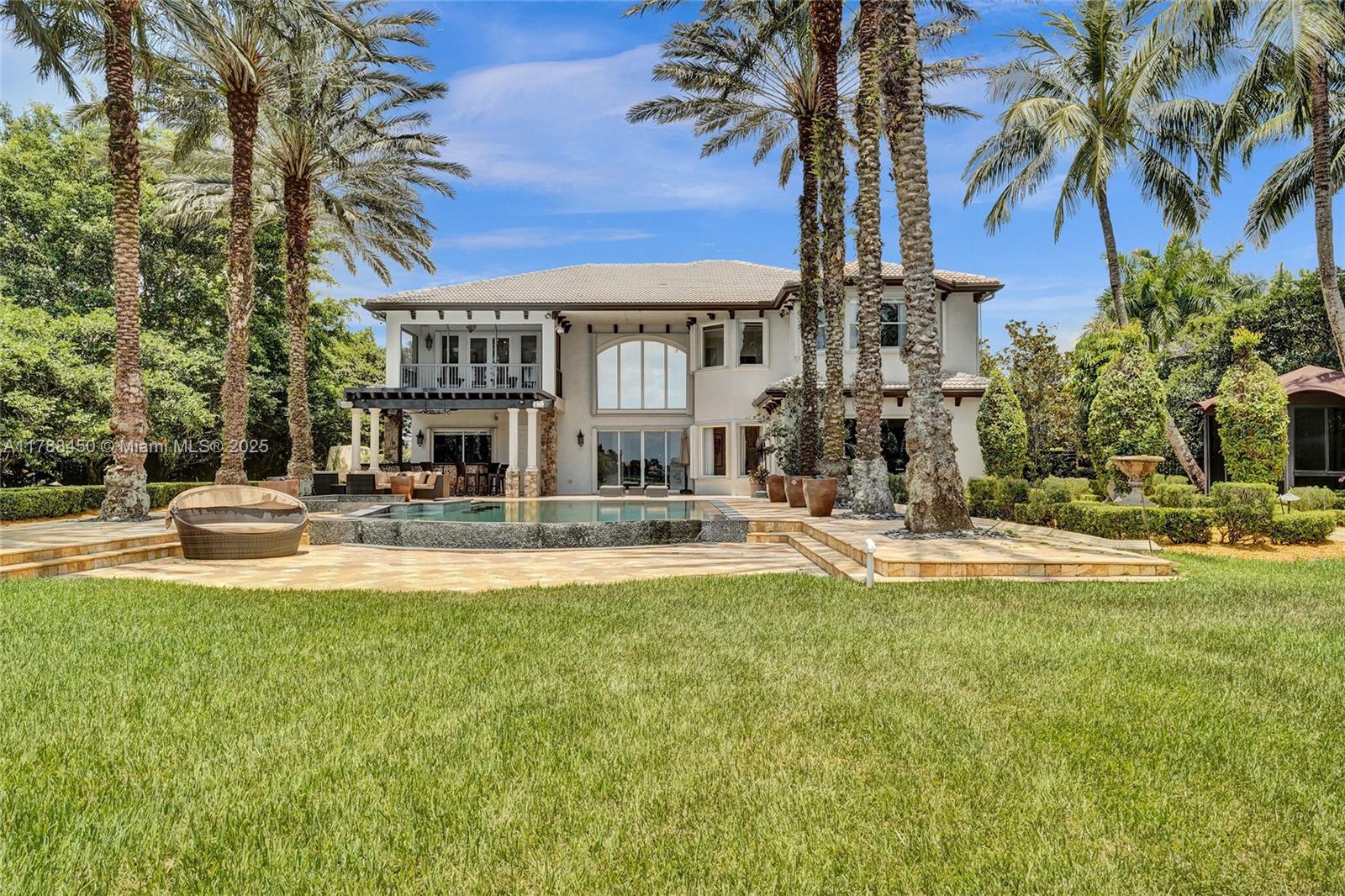 Welcome to the “Van Gogh” estate on 35052SF waterfront lot. This 6 BD, 5.5 BT home features 6910SF, with office, media and sound-proof room. Enter into the grand foyer with 24-ft ceilings, crown molding, wood and marble floors, and Savant home automation. Gourmet kitchen features marble counters, stainless appliances, center island and temp-controlled wine room. Main-level guest suite is perfect for multi-generational living or live-in nanny. Primary suite upstairs with sitting area, 2 walk-in closets, and spa-like bathroom. Step outside to your own oasis: infinity-edge heated saltwater pool, 2 poolside cabanas, sunken fire-pit, playground, summer kitchen, and media projector. Added conveniences: accordion shutters, full-home generator, mosquito-mist system. See attached features booklet