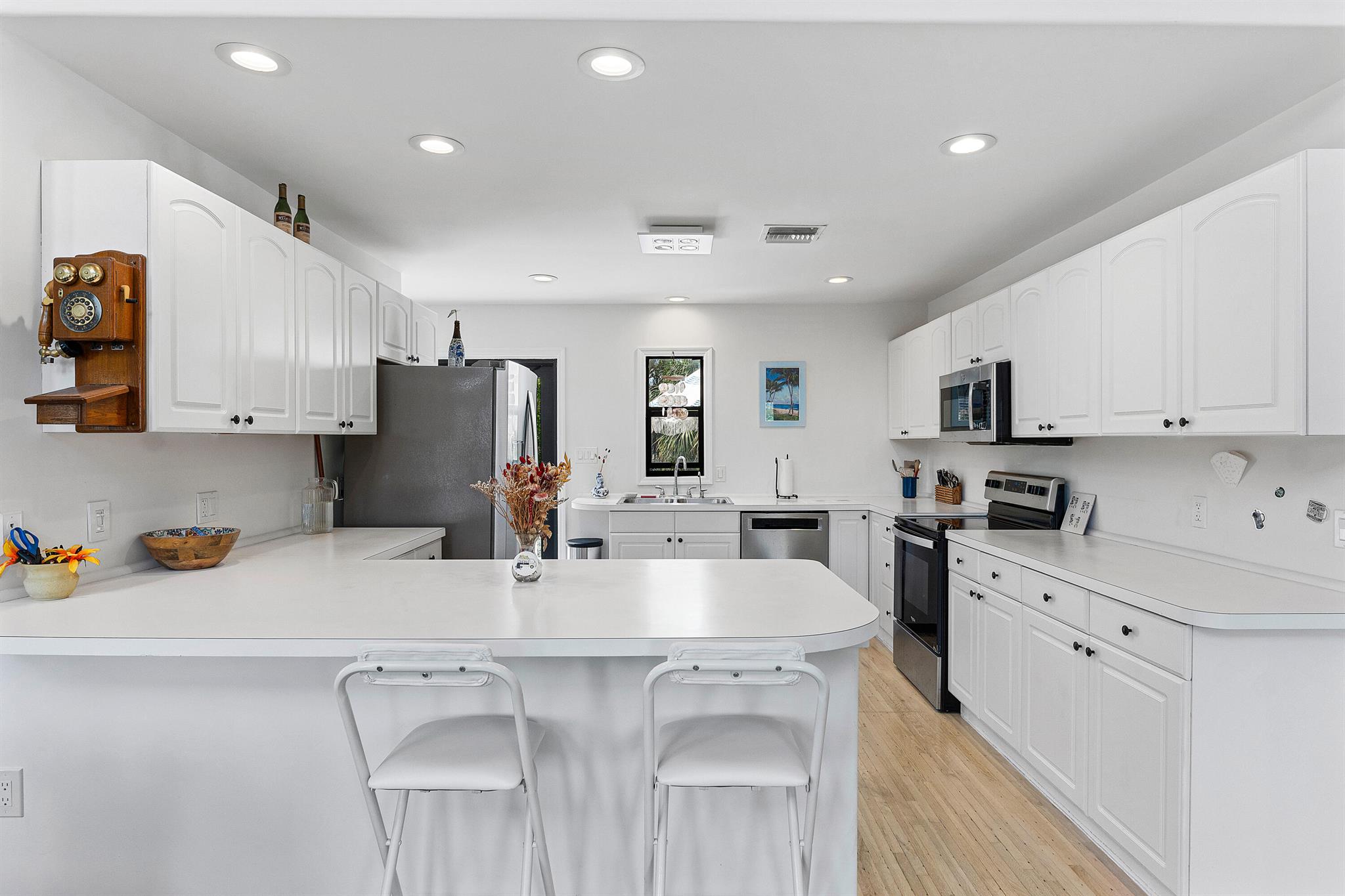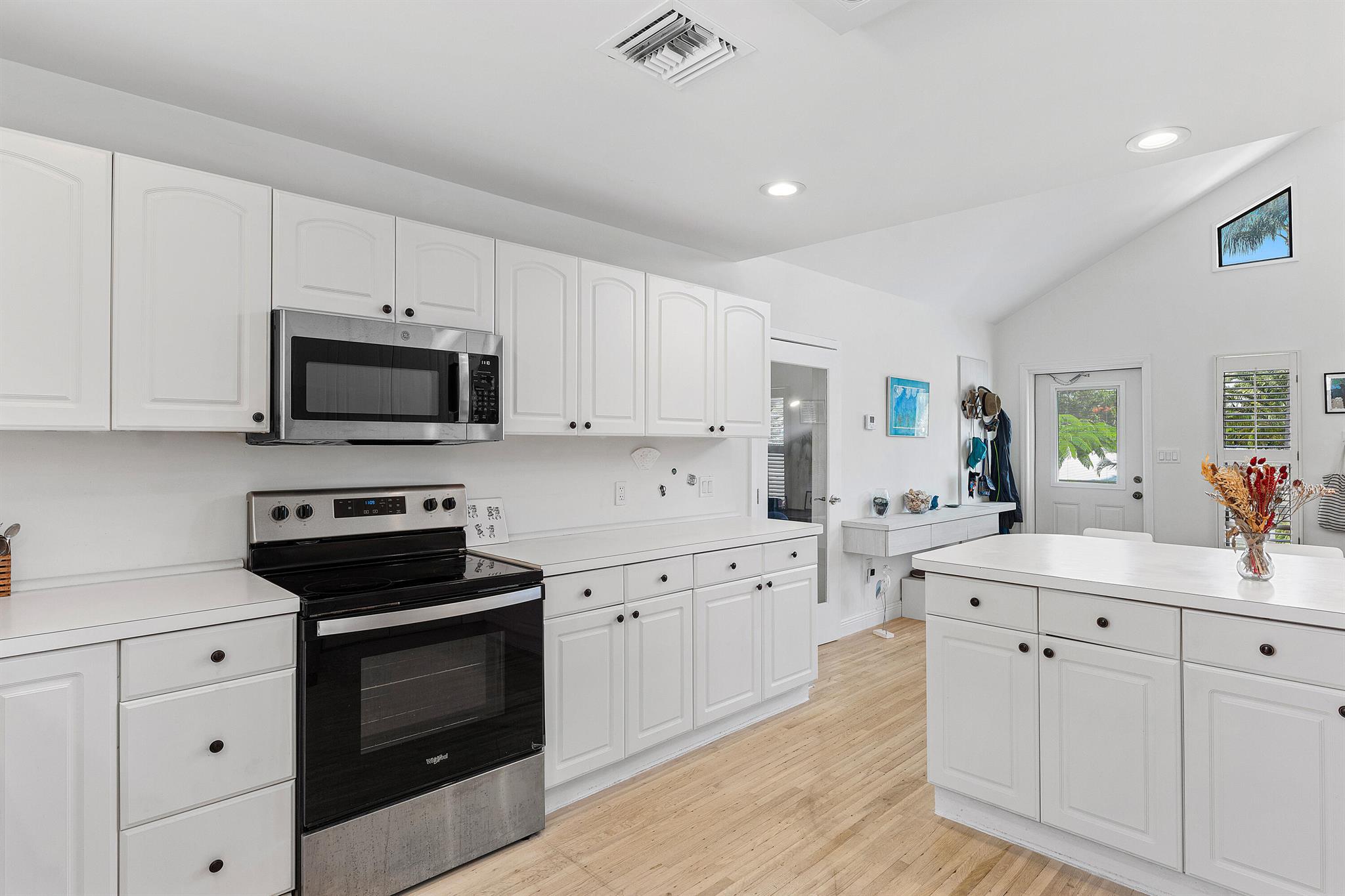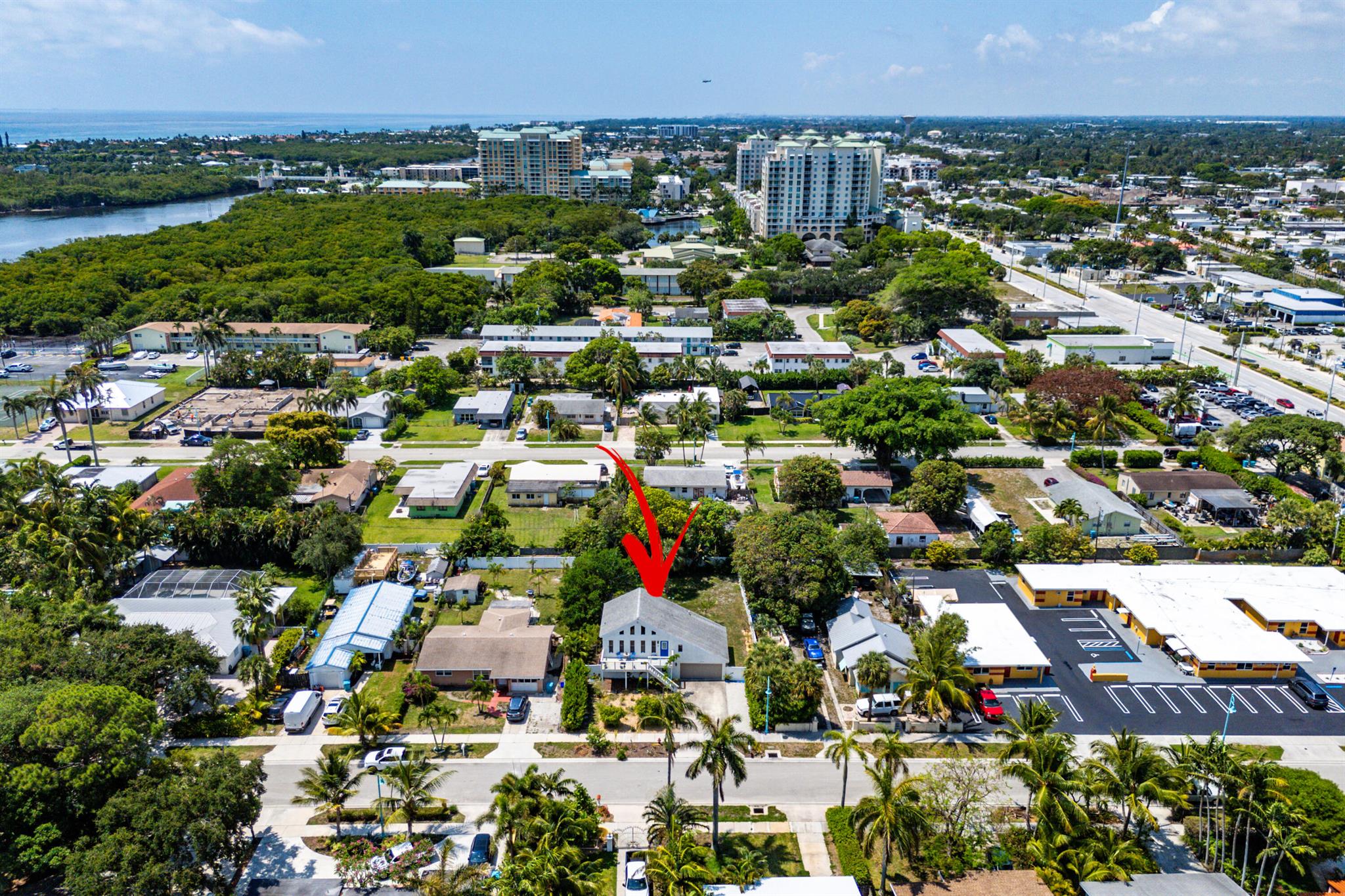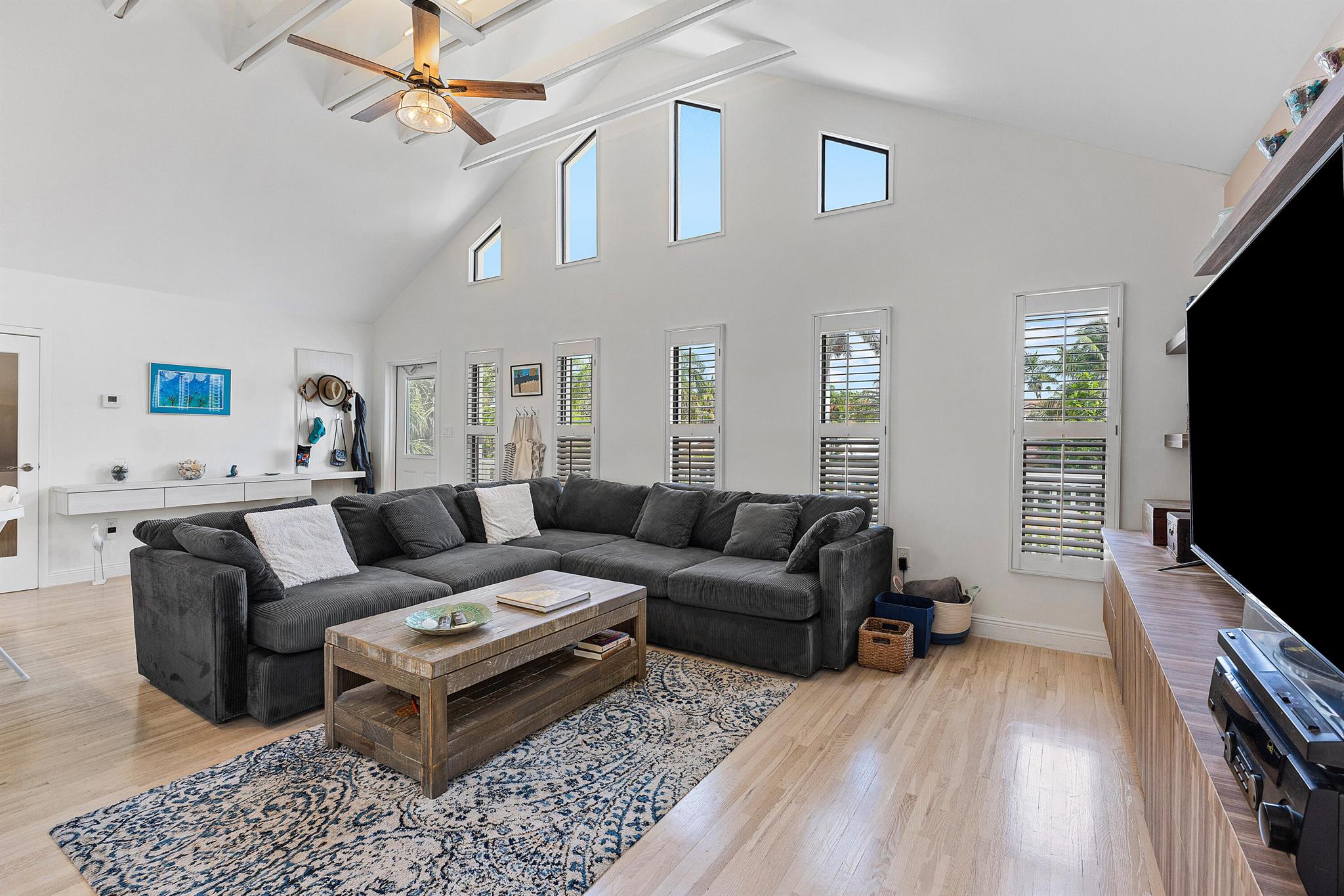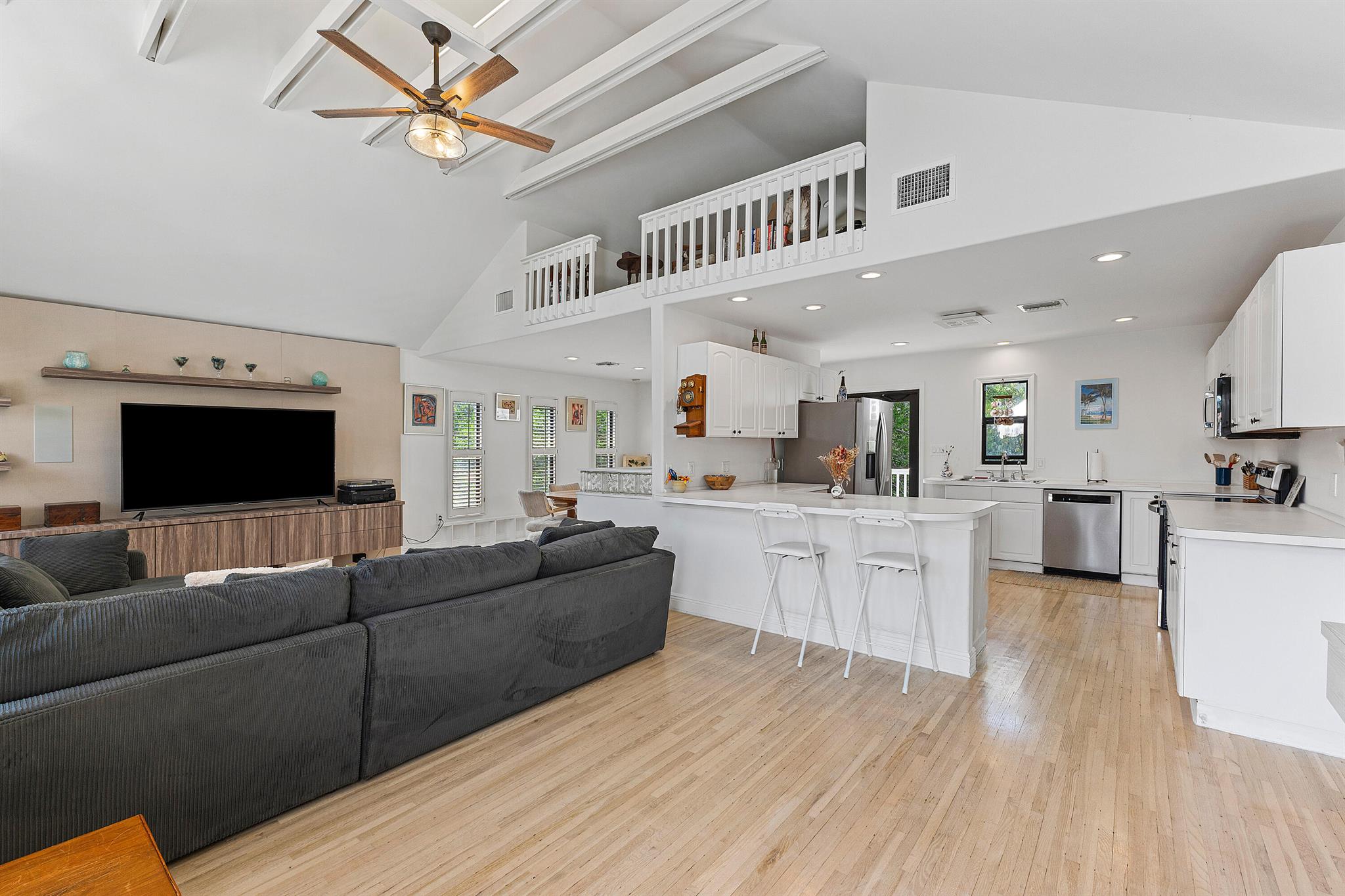 Truly one-of-a-kind, this two-story home sits on a tranquil, tree-lined street that ends at the Intracoastal in East Boynton Beach. Thoughtfully designed with character throughout, the home features unique elements like a cozy sleeping loft with ladder access, inviting front and back decks, and smart built-ins.The upstairs living area overlooks an expansive yard filled with swaying palms and mango trees, creating a serene, tropical retreat. Each bedroom offers its own distinct charm, and the oversized 2-car garage provides ample space for storage or hobbies. Recent updates include new appliances, modernized bathrooms, and a low-maintenance xeriscaped front yard.