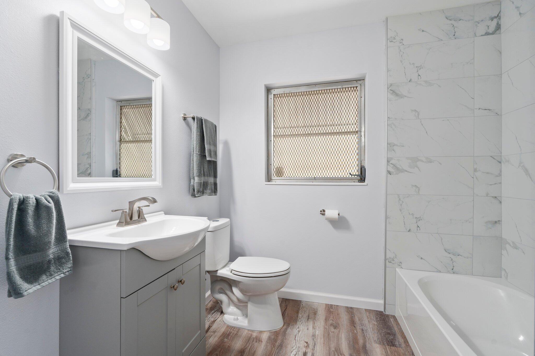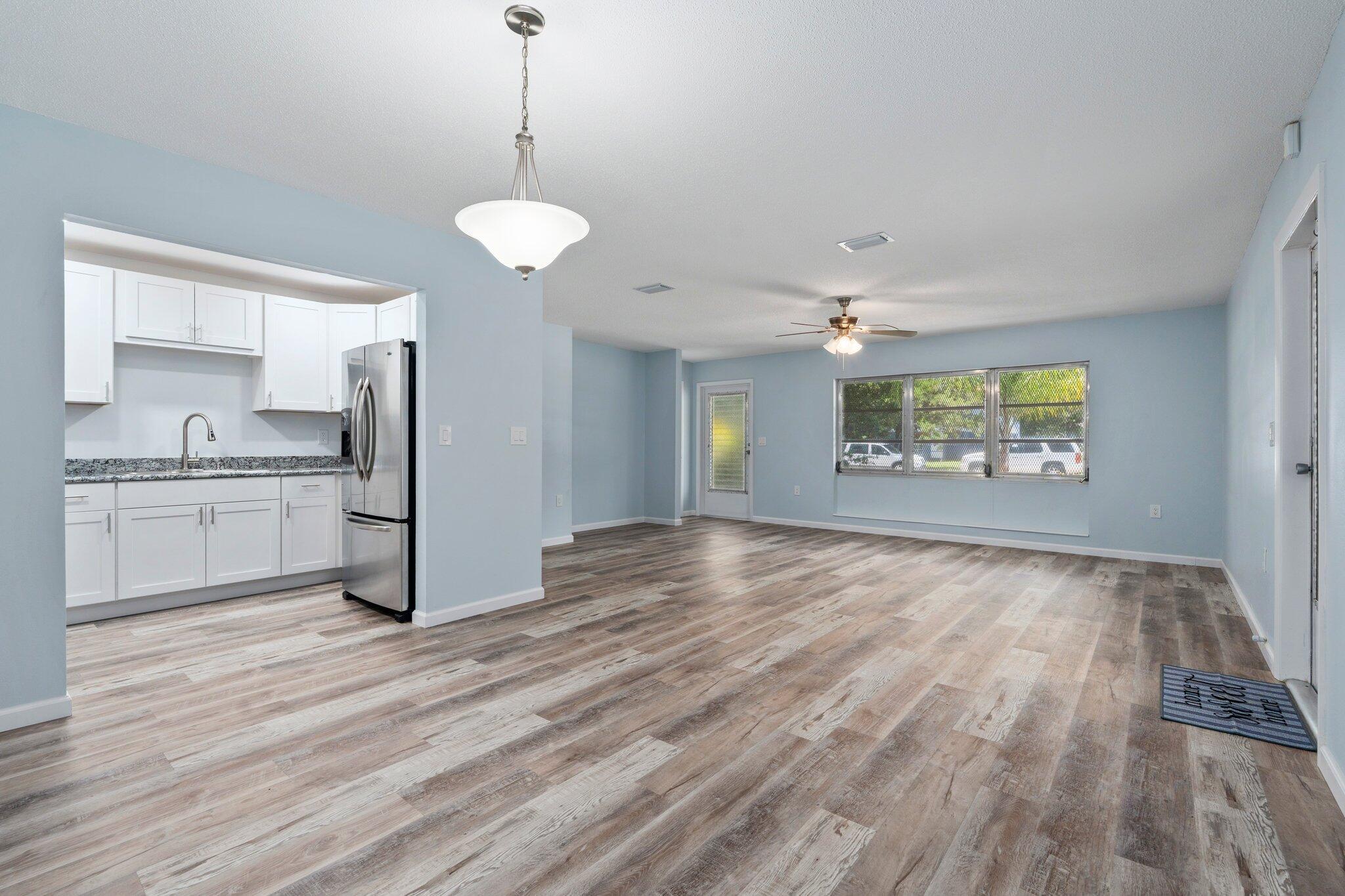 The perfect primary or investment property. This home is solid concrete block construction with a new 2025 METAL ROOF & A/C. It was completely remodeled this year which means everything is NEW! You are going to love that fresh new paint inside & out, LVP flooring throughout, fully renovated kitchen w/ granite counters, shaker style cabinets & SS appliances. Don't forget about the updated bathroom with new vanity/sink, toilet & tiled shower. You also get a front porch, rear screened porch & enclosed laundry room. This home is located on an oversized .36/acre lot with a fantastic backyard! Gas water heater!