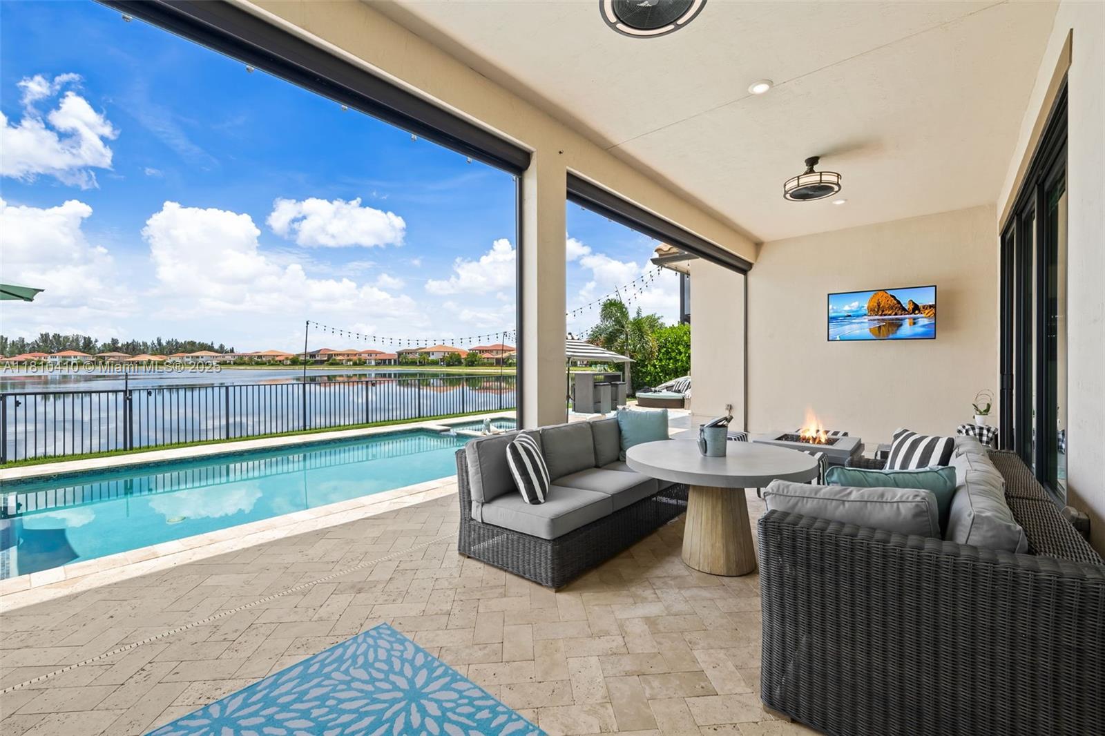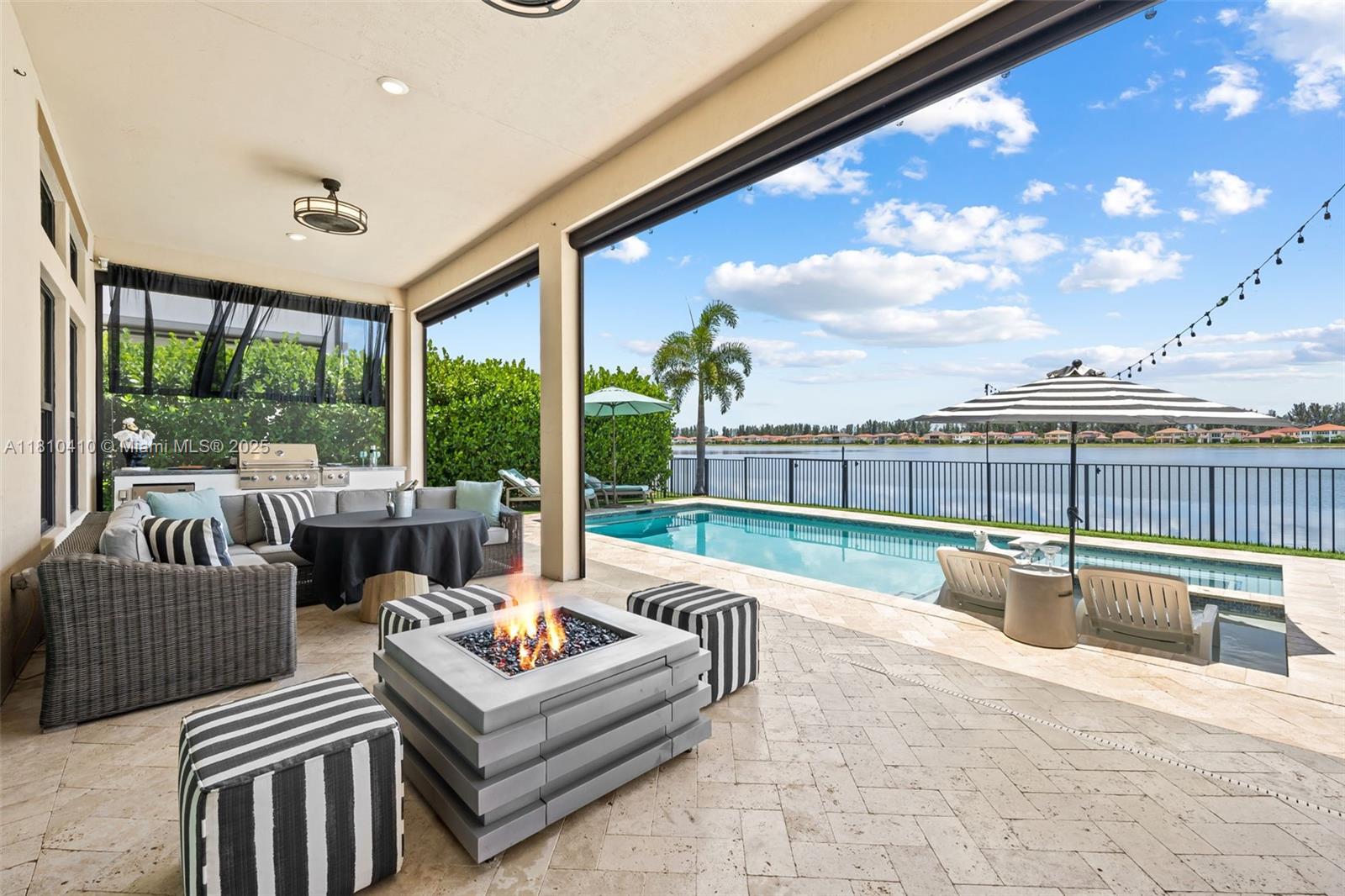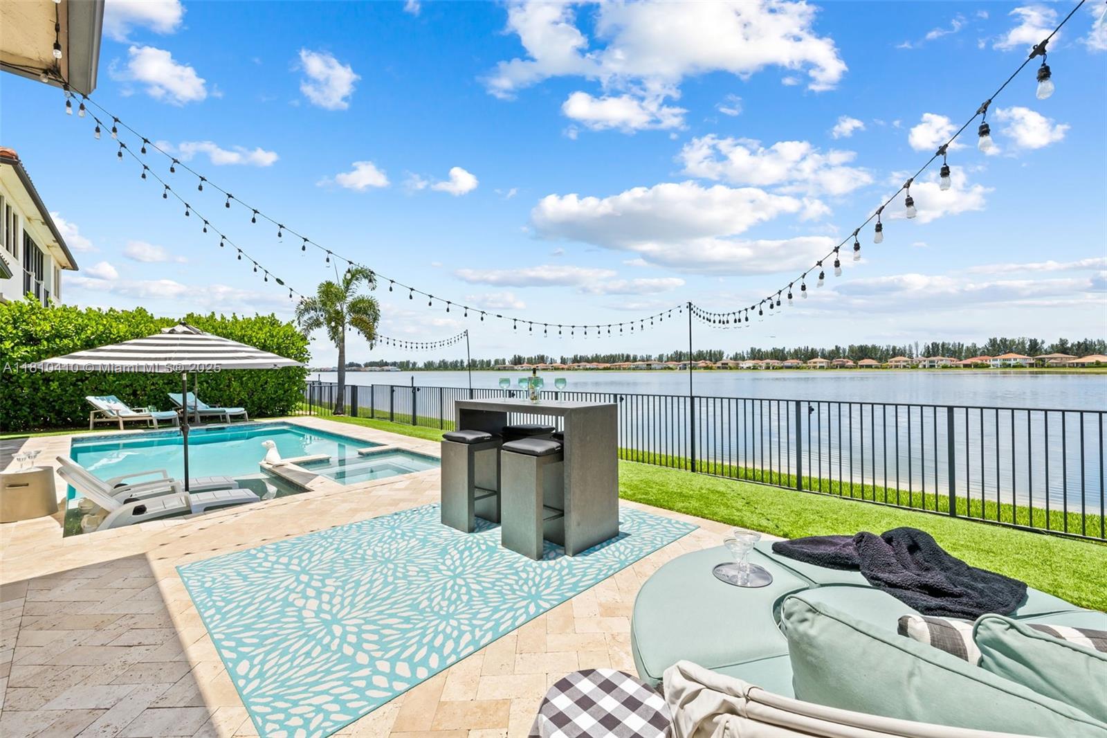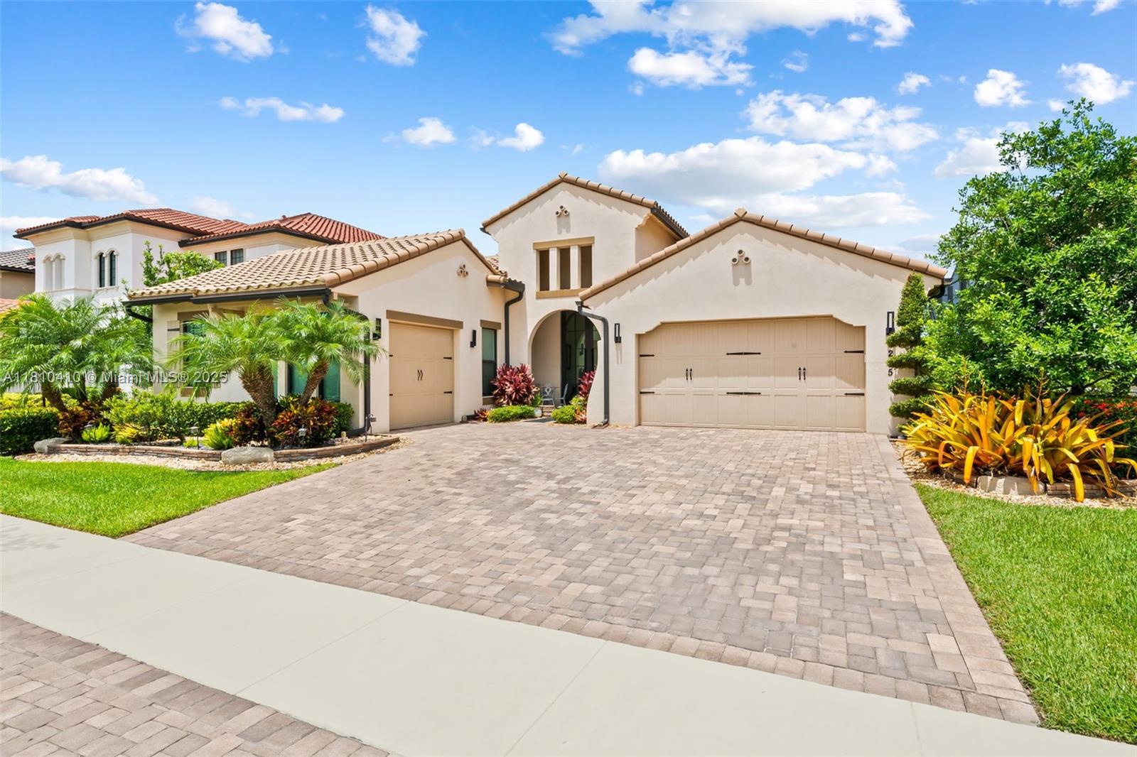 Discover refined elegance in this immaculate 4B/4B Catamaran model in Parkland Bay’s prestigious Waterfront Collection. Nestled on a 69’ lot along the coveted big lake with panoramic water views, this smart home dazzles with 12' ceilings, beautiful wood-look tile flooring, & a chef’s kitchen with quartz countertops, high-end appliances, & quality cabinetry. Smart home features include Alexa integration & Ring Alarm. IMPACT WINDOWS AND NEWER ROOF. Relax in your private saltwater pool with sunshelf & spa, expansive travertine deck, and lush turf yard. With spacious living areas and open-concept floor plan - this home is a true oasis. 3-car split garage with oversized pavered driveway is PERFECT FOR ENTERTAINING! Community Pool & Luxury Amenities! GREAT SCHOOLS. 24/7 guard-gated community.