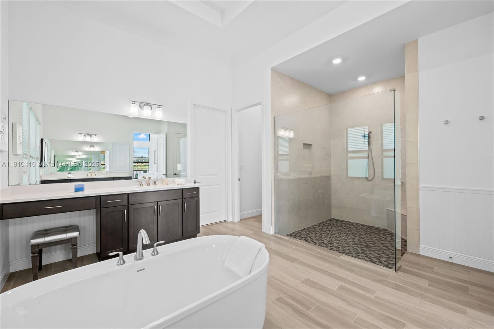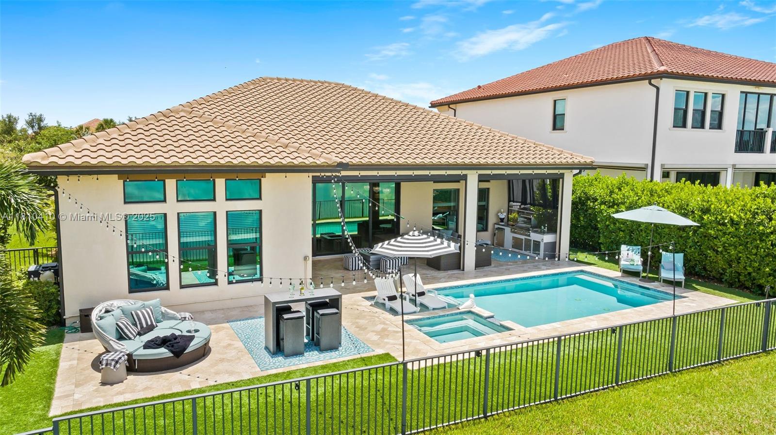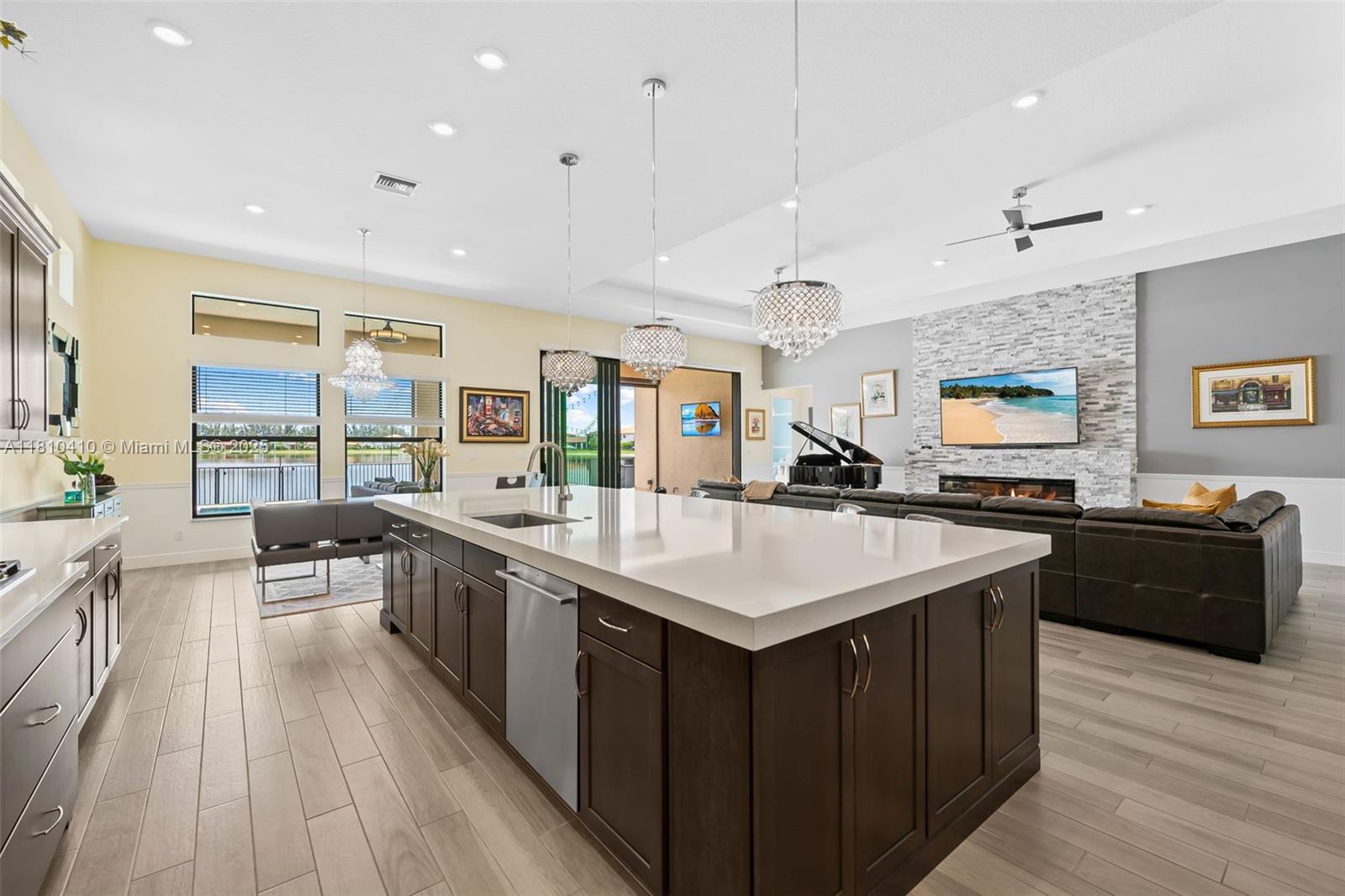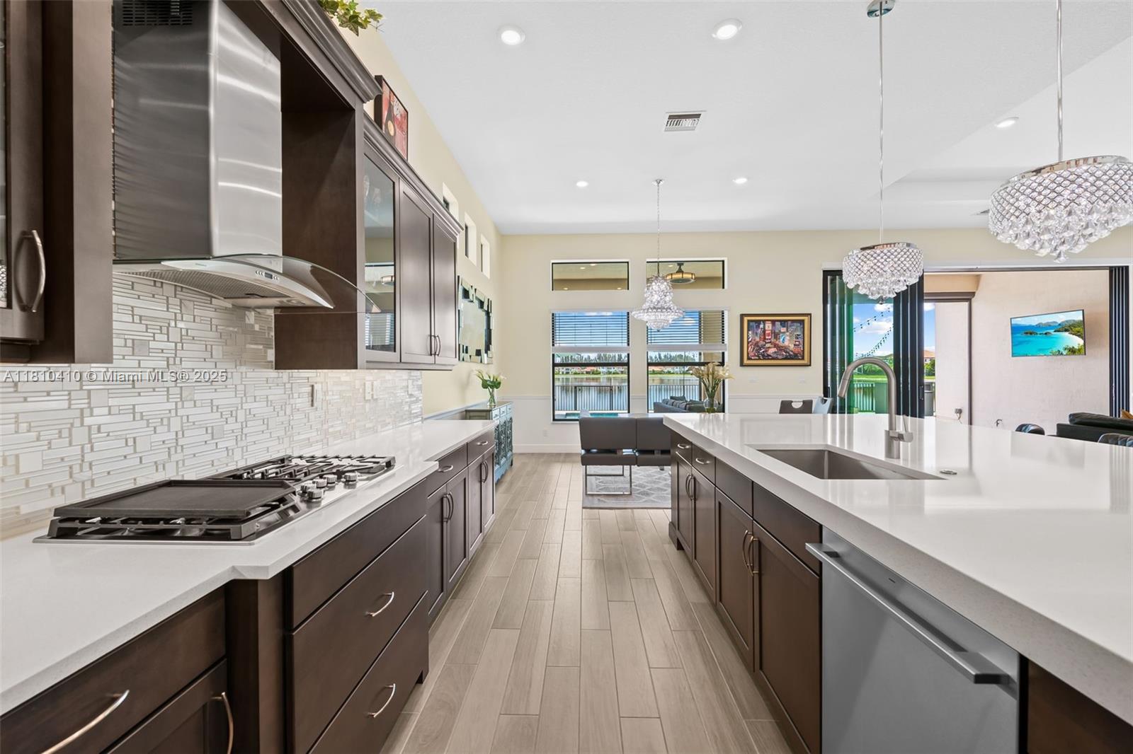 Discover refined elegance in this immaculate 4B/4B Catamaran model in Parkland Bay’s prestigious Waterfront Collection. Nestled on a 69’ lot along the coveted big lake with panoramic water views, this smart home dazzles with 12' ceilings, beautiful wood-look tile flooring, & a chef’s kitchen with quartz countertops, high-end appliances, & quality cabinetry. Smart home features include Alexa integration & Ring Alarm. IMPACT WINDOWS AND NEWER ROOF. Relax in your private saltwater pool with sunshelf & spa, expansive travertine deck, and lush turf yard. With spacious living areas and open-concept floor plan - this home is a true oasis. 3-car split garage with oversized pavered driveway is PERFECT FOR ENTERTAINING! Community Pool & Luxury Amenities! GREAT SCHOOLS. 24/7 guard-gated community.