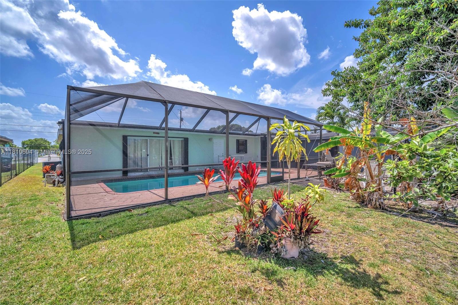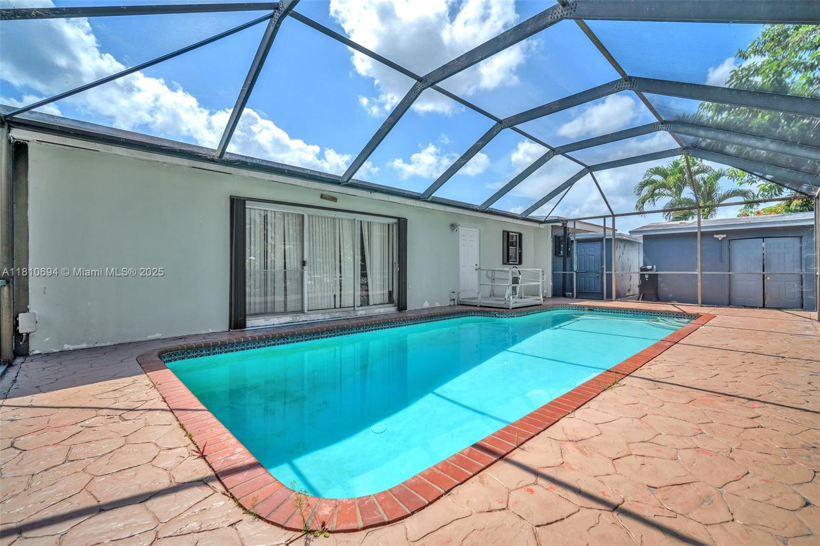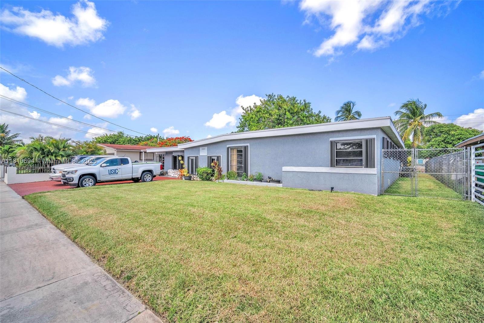 Spacious home in Miami Gardens! Just minutes from Hard Rock Stadium, airports, shopping, and dining. This oversized home features a corridor of bedrooms with the master suite privately tucked on the opposite side. Includes two rear storage rooms, a fenced canal-front pool, two 30-gallon water heaters, hurricane shutters, and a cozy breakfast nook. Built in fish pond. Generously sized living and dining areas, perfect for large families or entertaining. Spacious layout offers flexibility for multi-generational living or home offices. Newer roof, tile flooring throughout, ample closet space, Master bedroom has three closets, and plenty of natural light. You truly have to walk through it to grasp the size, layout, and endless possibilities.