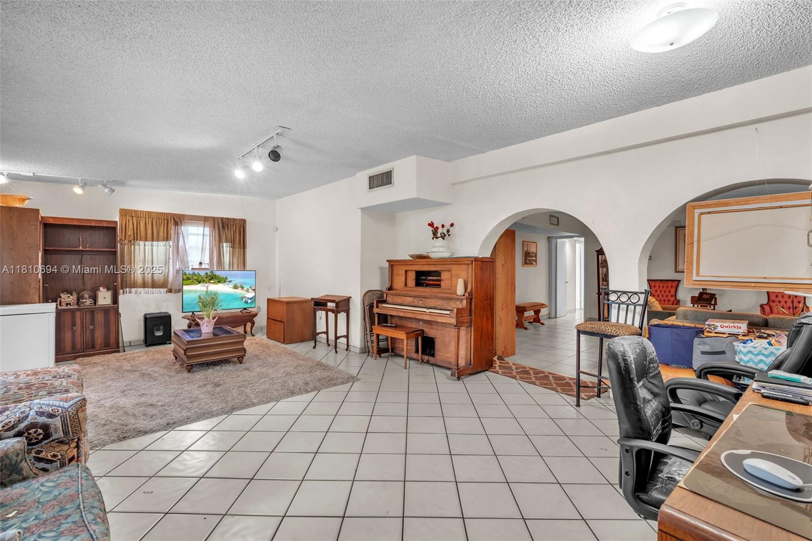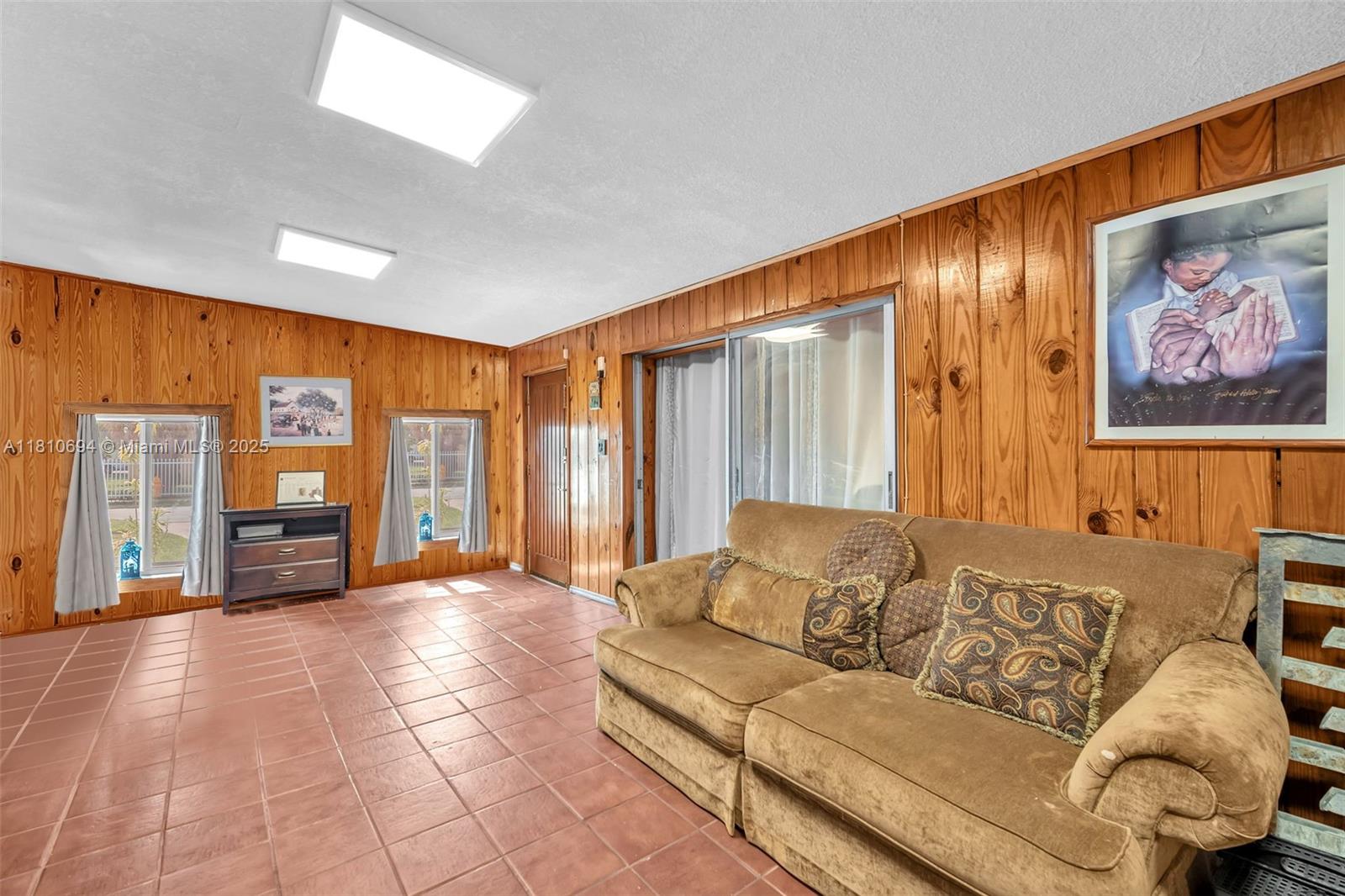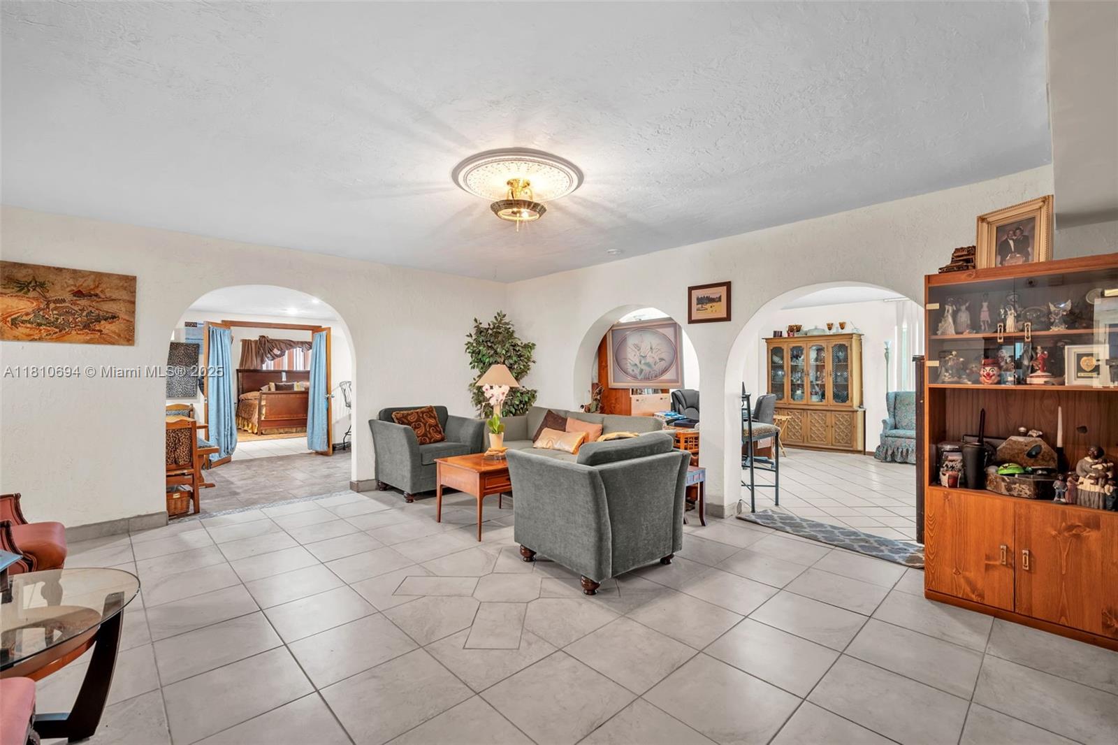 Spacious home in Miami Gardens! Just minutes from Hard Rock Stadium, airports, shopping, and dining. This oversized home features a corridor of bedrooms with the master suite privately tucked on the opposite side. Includes two rear storage rooms, a fenced canal-front pool, two 30-gallon water heaters, hurricane shutters, and a cozy breakfast nook. Built in fish pond. Generously sized living and dining areas, perfect for large families or entertaining. Spacious layout offers flexibility for multi-generational living or home offices. Newer roof, tile flooring throughout, ample closet space, Master bedroom has three closets, and plenty of natural light. You truly have to walk through it to grasp the size, layout, and endless possibilities.