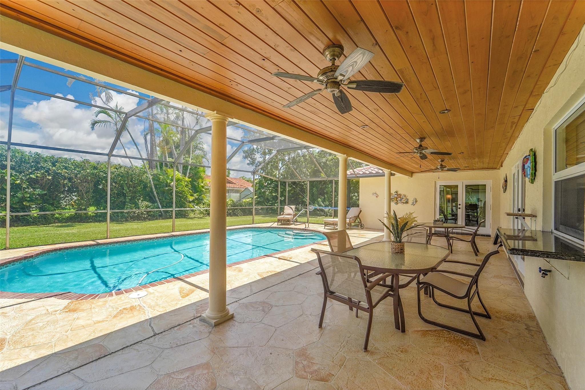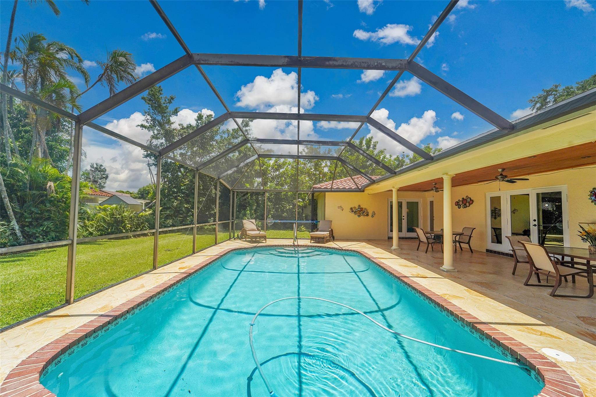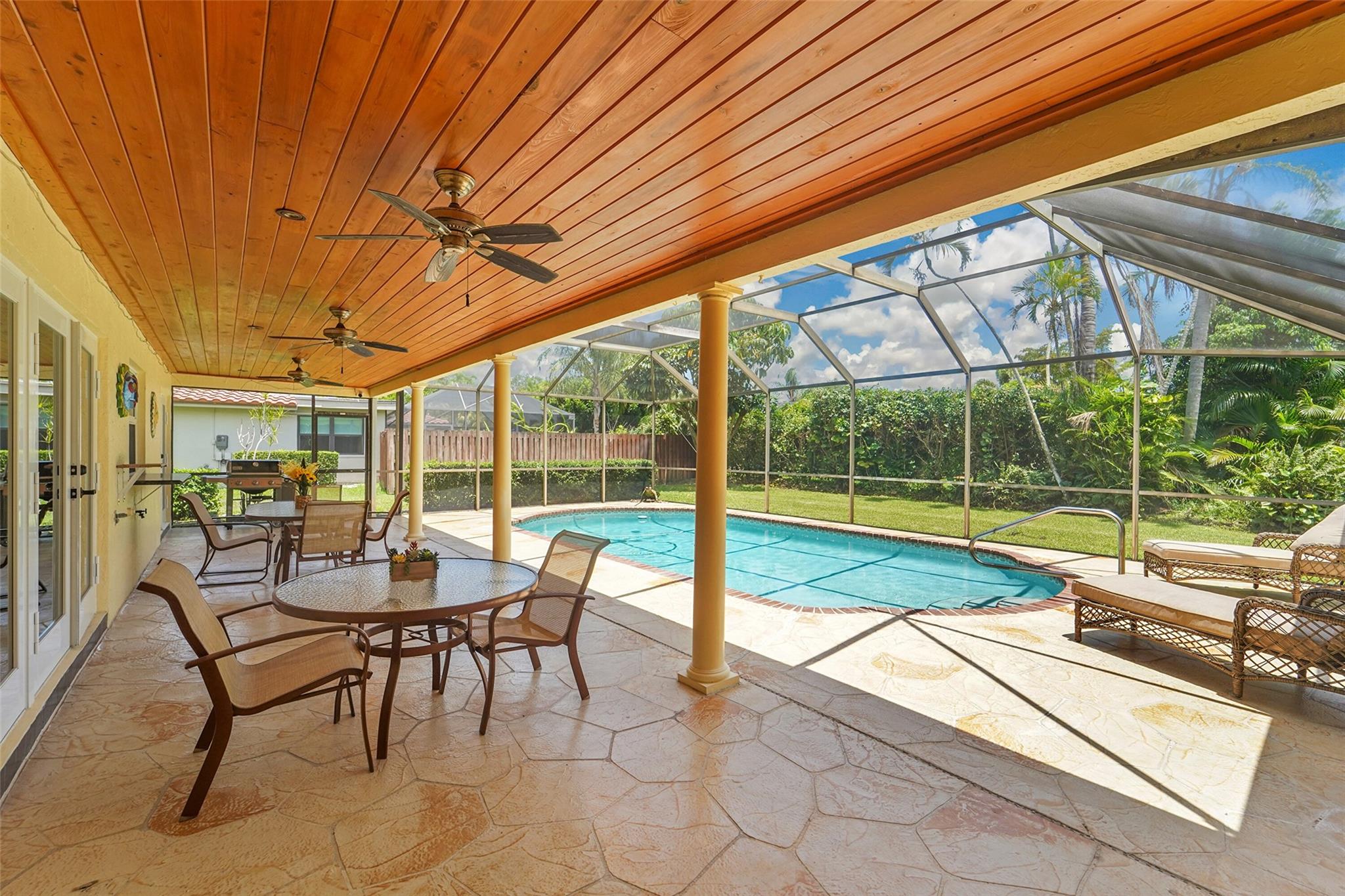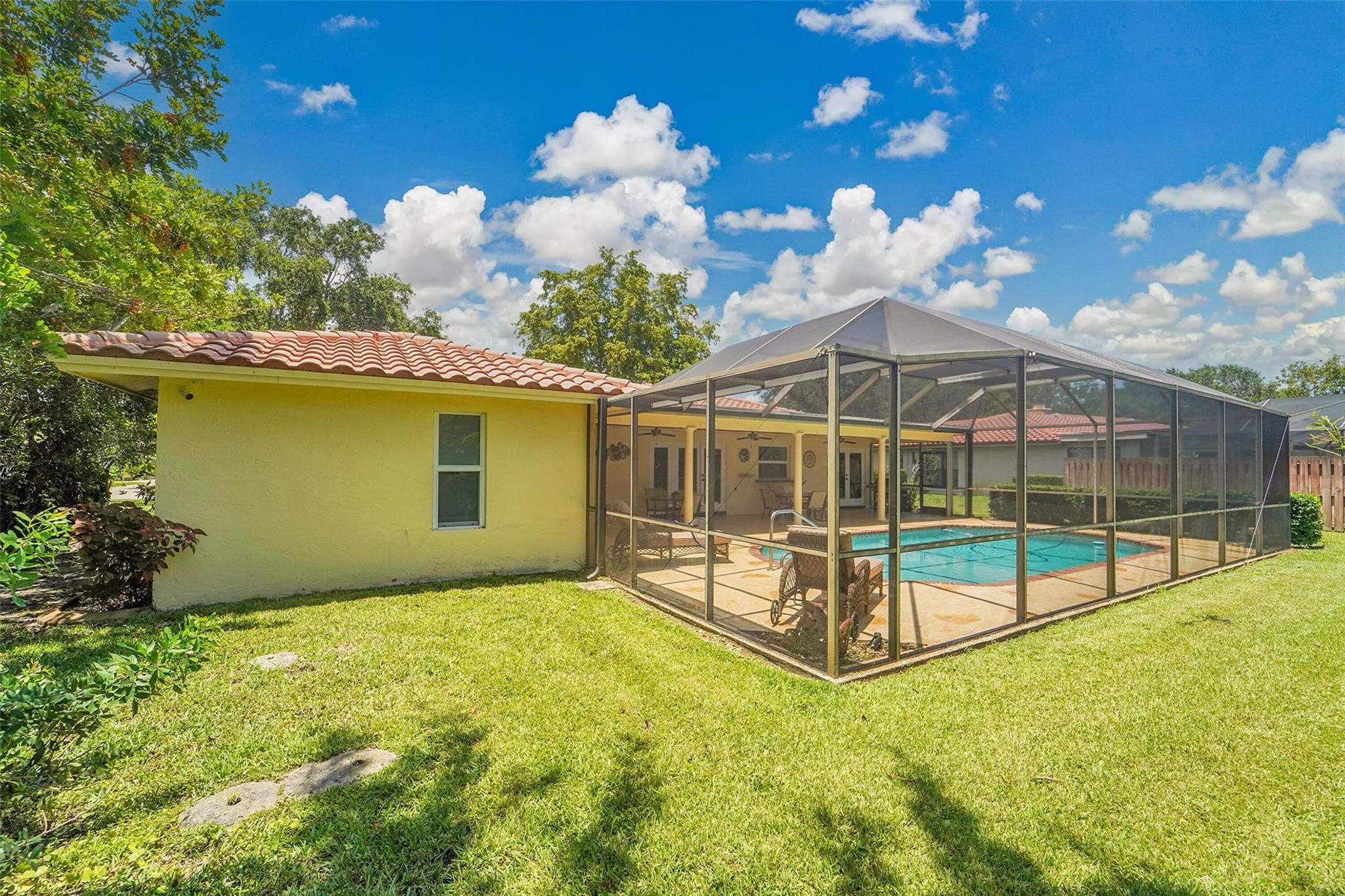 Updated home in the highly desirable Oakwood neighborhood! On over 1/4 acre of land, this home features a large circular driveway for all your family's cars, impact windows, roof (2010)! Vaulted tongue and groove ceilings in the living area. Kitchen features updated cabinets, granite counters w/ island, stainless steel appliances, and eat-in kitchen. Formal dining room can fit the whole family for holidays. Master bedroom features large walk-in closet and doors leading out to pool. All bedrooms good sized. 2nd bathroom also updated. Screened in & remodeled pool area overlooks the large backyard - perfect for pets or kids to run around and enjoy! Move into this home just in time for summer & the new school year!
