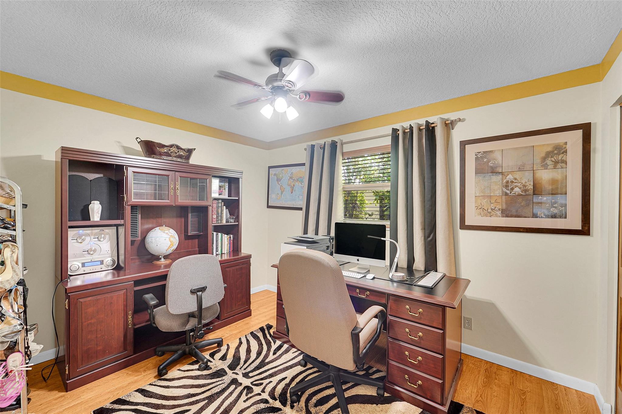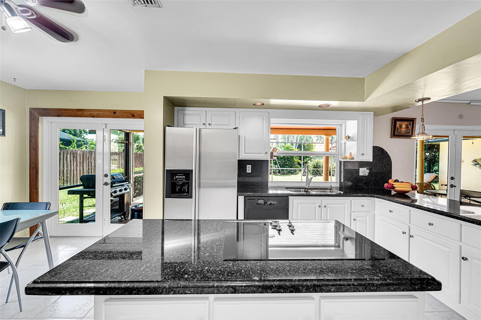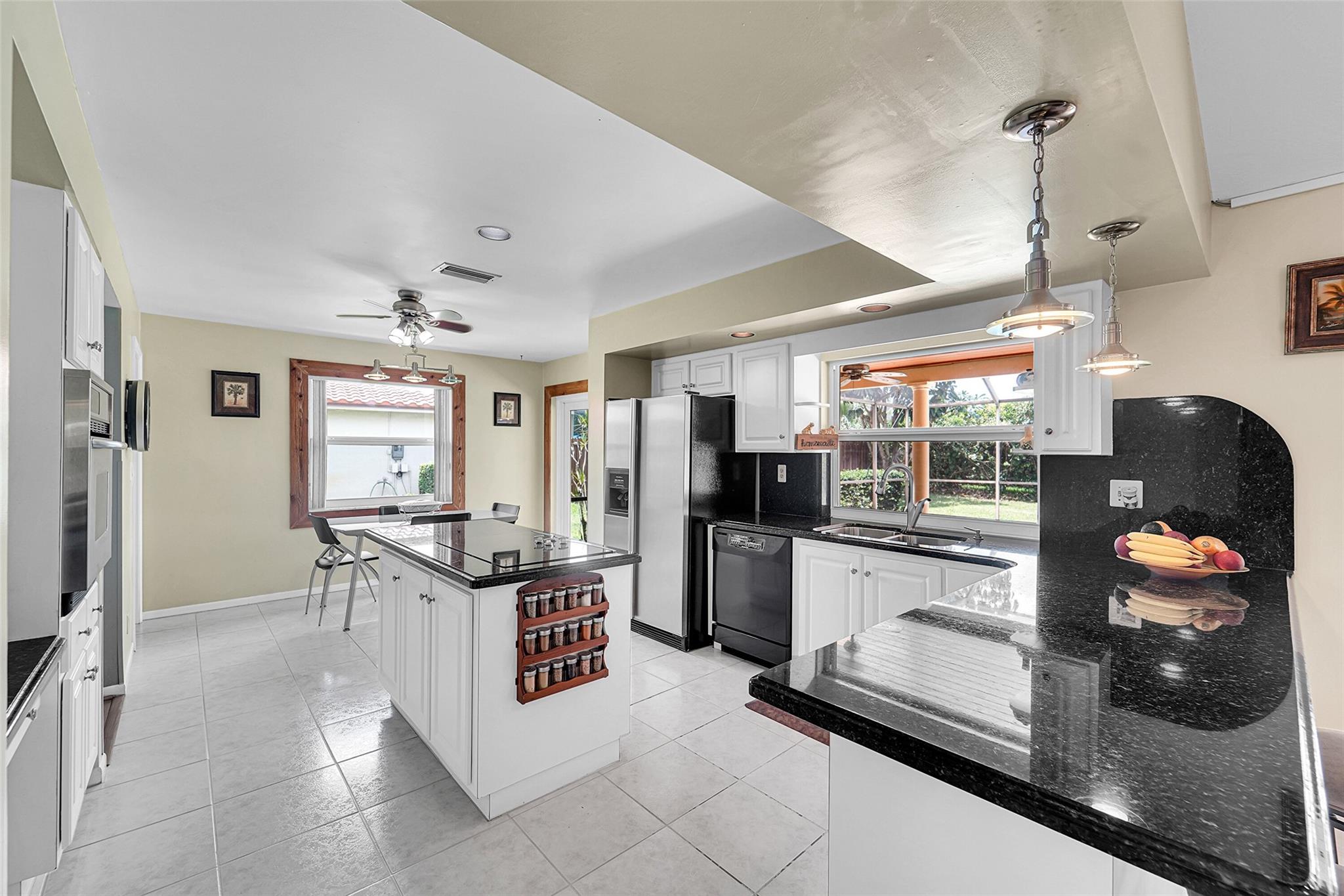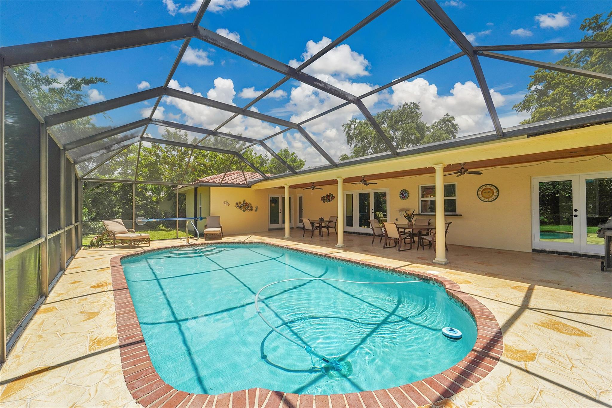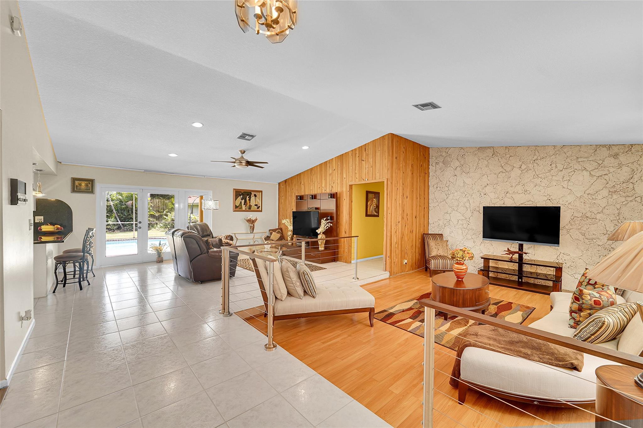 Updated home in the highly desirable Oakwood neighborhood! On over 1/4 acre of land, this home features a large circular driveway for all your family's cars, impact windows, roof (2010)! Vaulted tongue and groove ceilings in the living area. Kitchen features updated cabinets, granite counters w/ island, stainless steel appliances, and eat-in kitchen. Formal dining room can fit the whole family for holidays. Master bedroom features large walk-in closet and doors leading out to pool. All bedrooms good sized. 2nd bathroom also updated. Screened in & remodeled pool area overlooks the large backyard - perfect for pets or kids to run around and enjoy! Move into this home just in time for summer & the new school year!