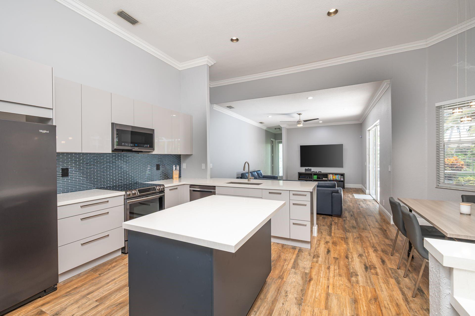 UPDATE! NEW ROOF COMING!!! Discover your dream home in this stunning one-story home offering 4 spacious bedrooms + large office or play room. Perfectly situated on a peaceful cul-de-sac, this property boasts water views and a thoughtfully designed split floor plan that provides both privacy and functionality. Step inside to find soaring high ceilings and sleek porcelain tile floors that flow throughout the home. The updated kitchen is a chef’s delight, featuring modern appliances, elegant lighting fixtures, and stylish finishes. All 3 baths have been beautifully updated and the A/C is brand new! Enjoy indoor-outdoor living with a screened-in pool and patio, perfect for entertaining or relaxing. This home truly has it all-comfort, style, and location.