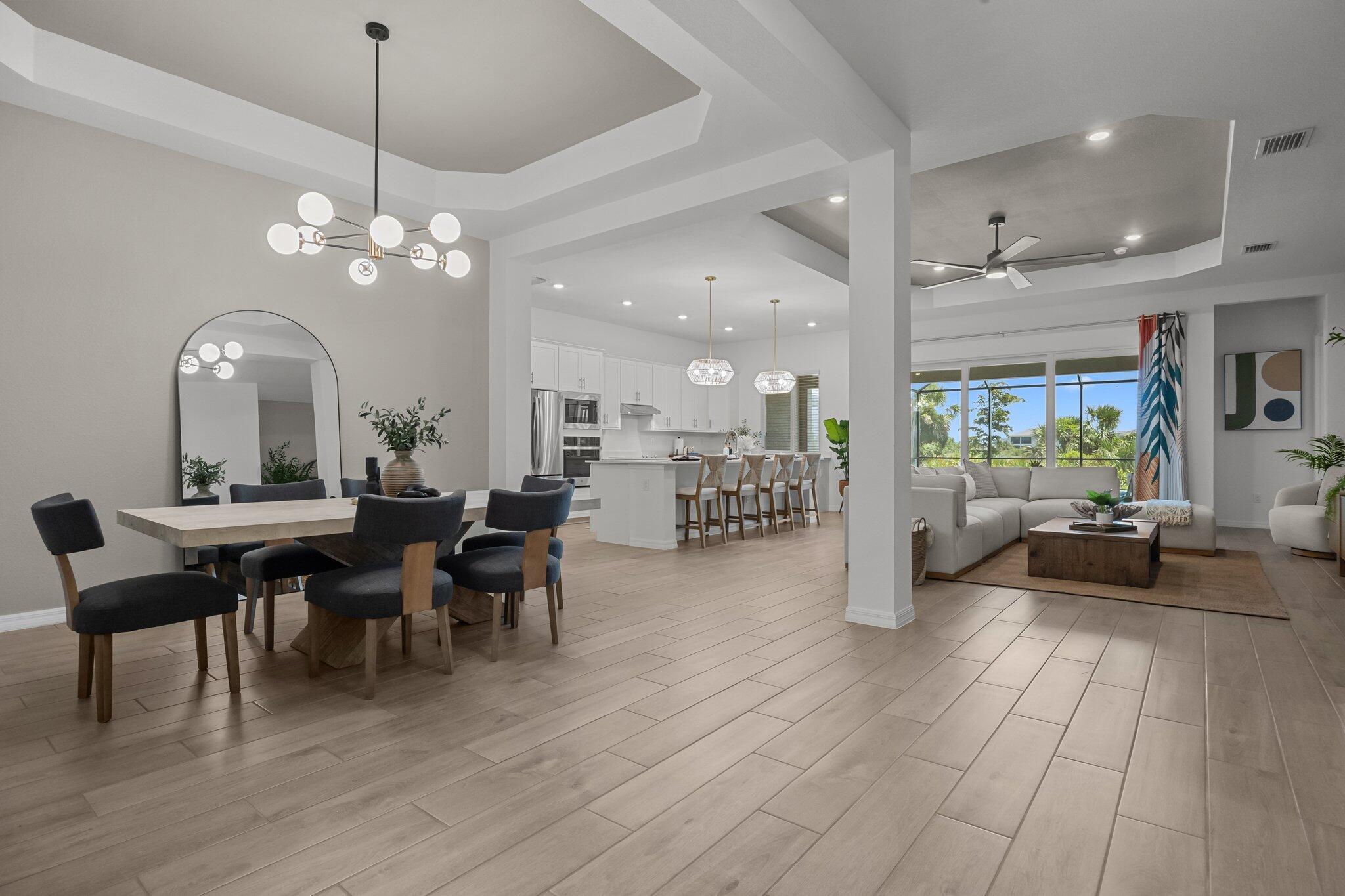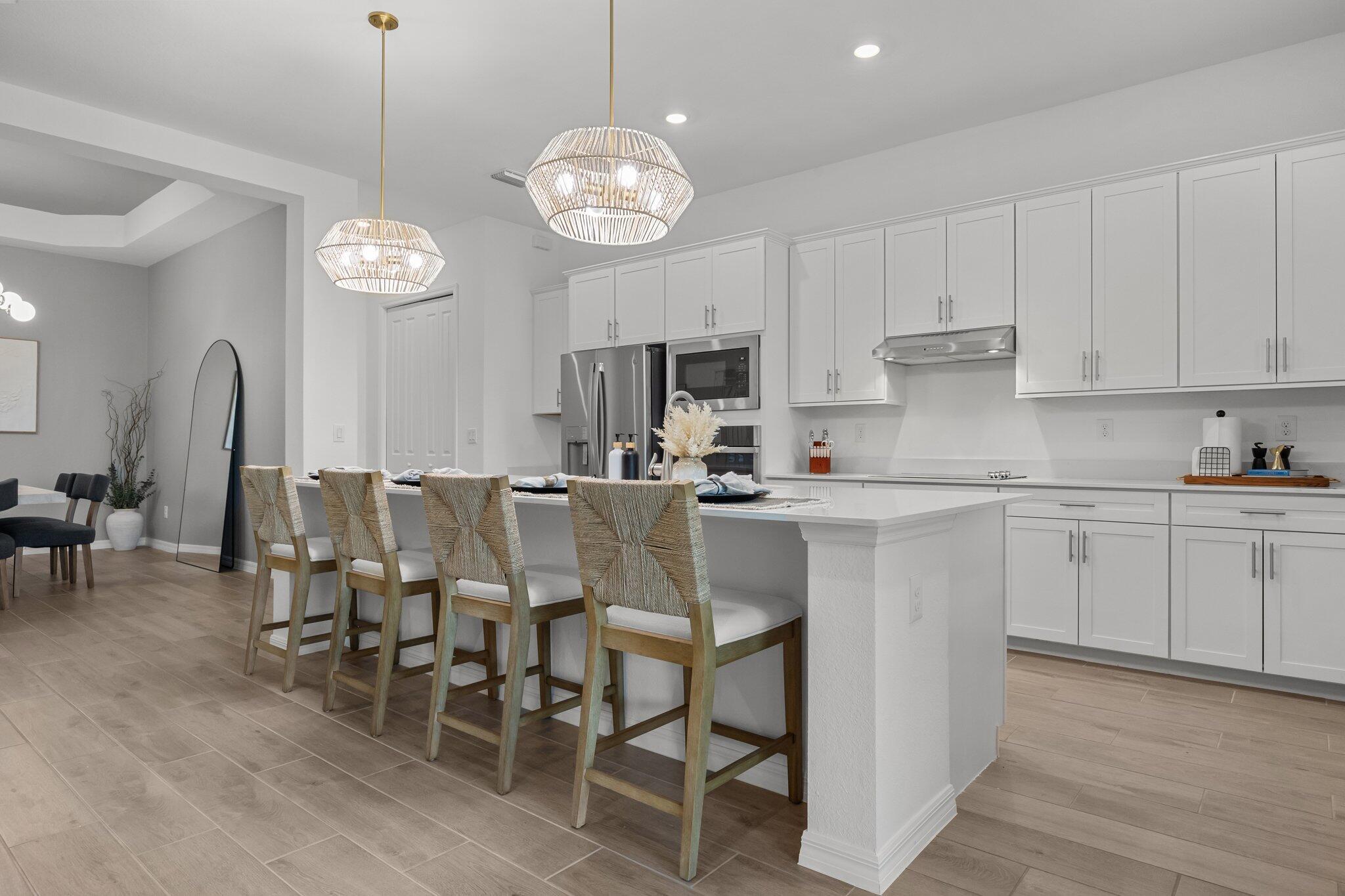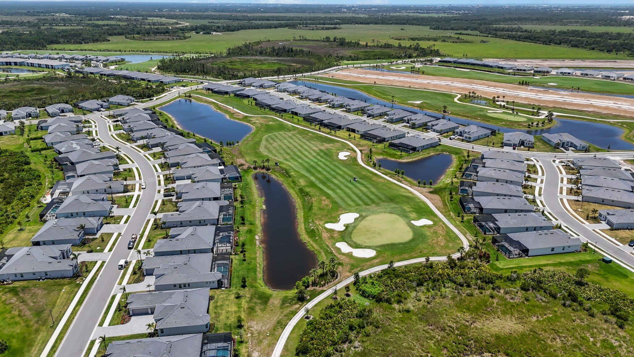 Welcome to your dream home in the highly sought-after community of Wellen Park in Venice, Florida, with a golf deeded lot. This beautifully designed residence offers 3 spacious bedrooms and 2 full bathrooms, all thoughtfully arranged in a split floorplan for optimal privacy and functionality. At the heart of the home, the gourmet kitchen features a large island, wall oven, wall microwave, electric cooktop, and a generous walk-in pantry. The open layout flows seamlessly into the family room and dining room, ideal for entertaining or relaxing with loved ones. Elegant trey ceilings add a touch of sophistication to the main living areas, while volume ceilings
