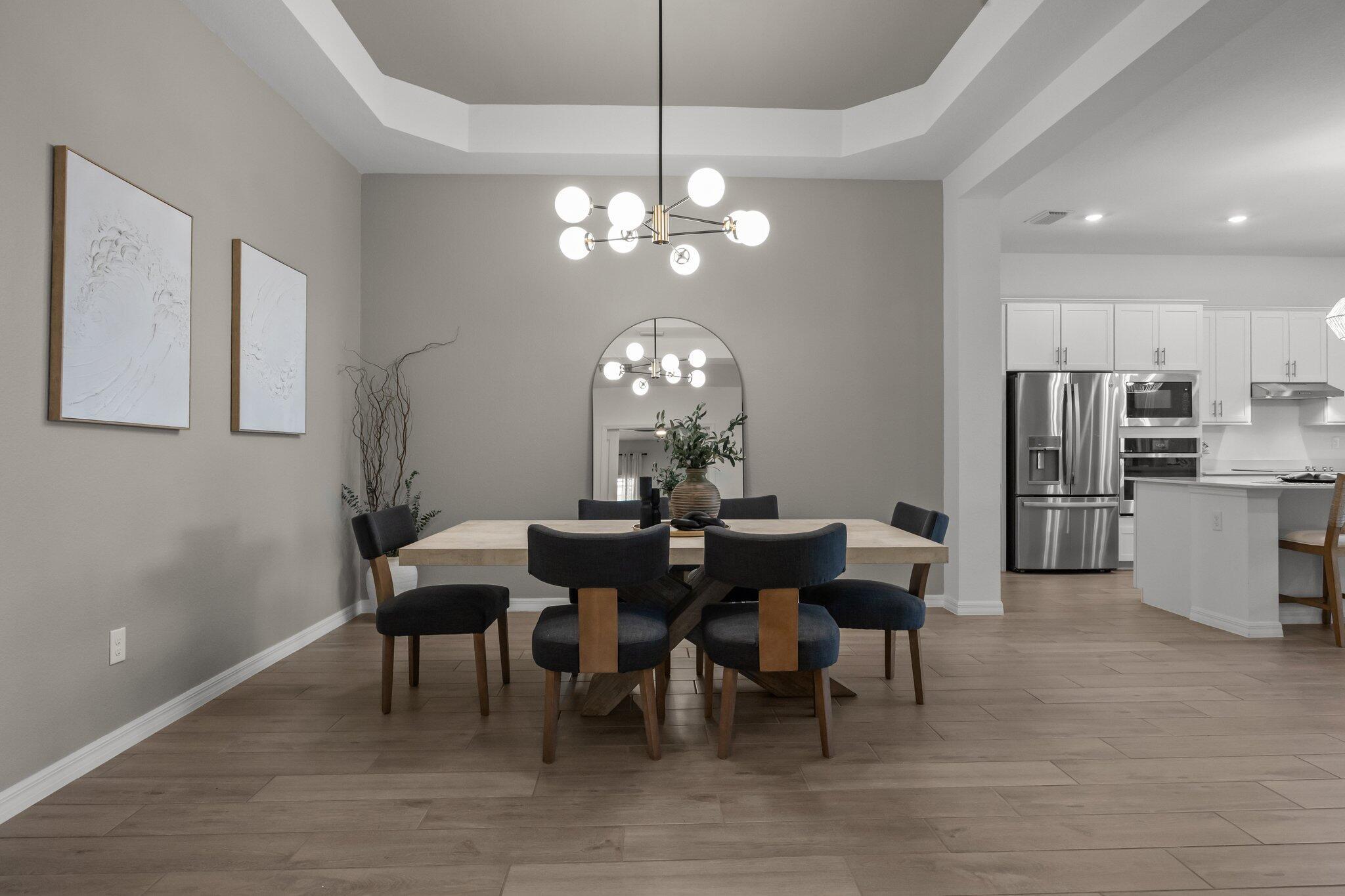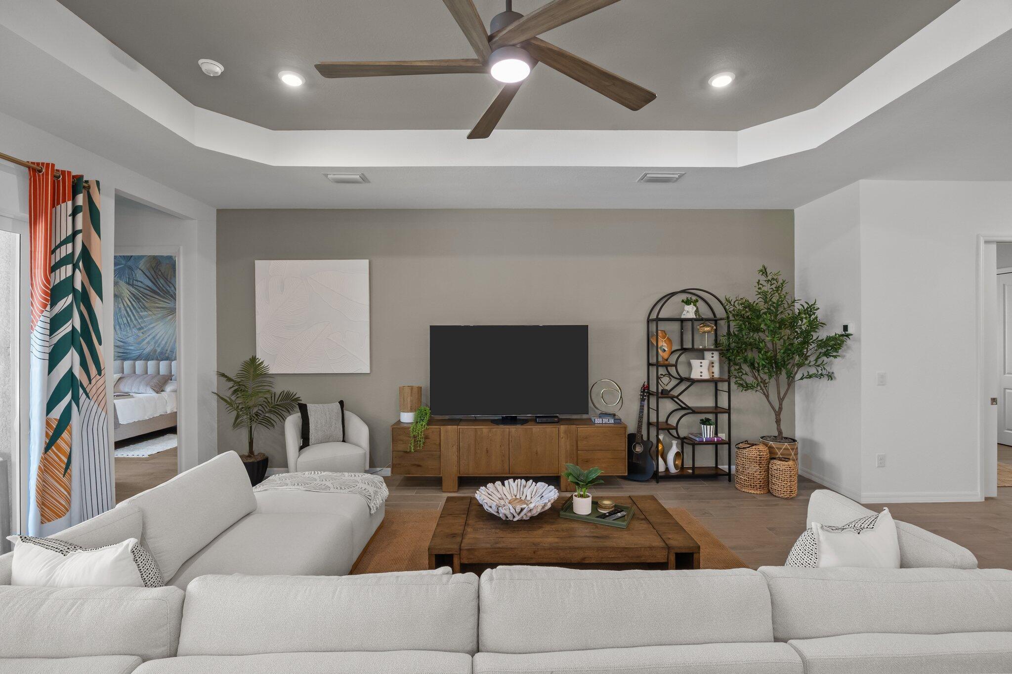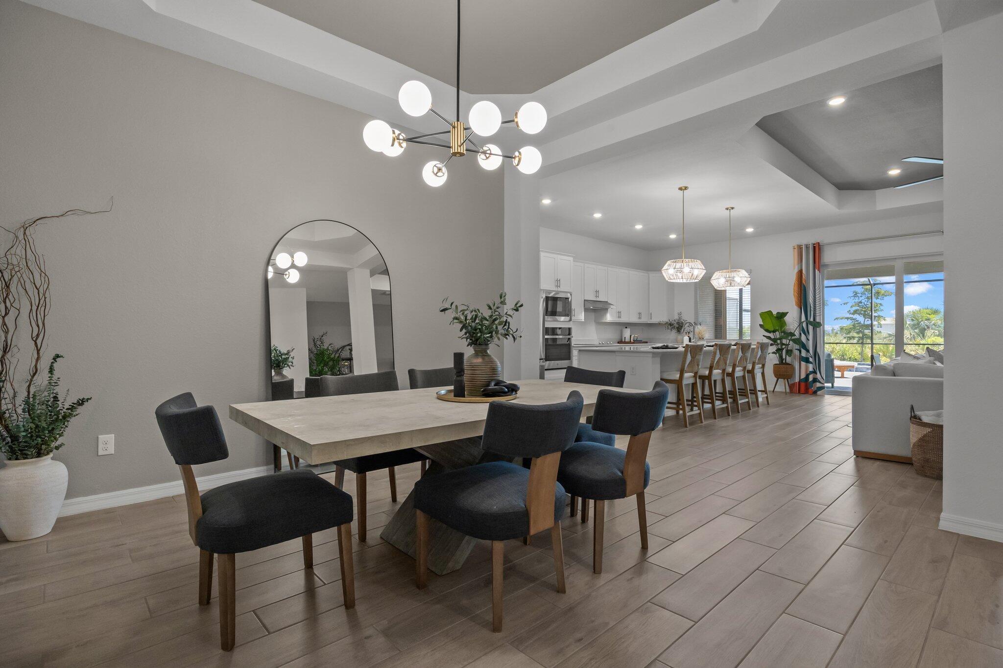 Welcome to your dream home in the highly sought-after community of Wellen Park in Venice, Florida, with a golf deeded lot. This beautifully designed residence offers 3 spacious bedrooms and 2 full bathrooms, all thoughtfully arranged in a split floorplan for optimal privacy and functionality. At the heart of the home, the gourmet kitchen features a large island, wall oven, wall microwave, electric cooktop, and a generous walk-in pantry. The open layout flows seamlessly into the family room and dining room, ideal for entertaining or relaxing with loved ones. Elegant trey ceilings add a touch of sophistication to the main living areas, while volume ceilings