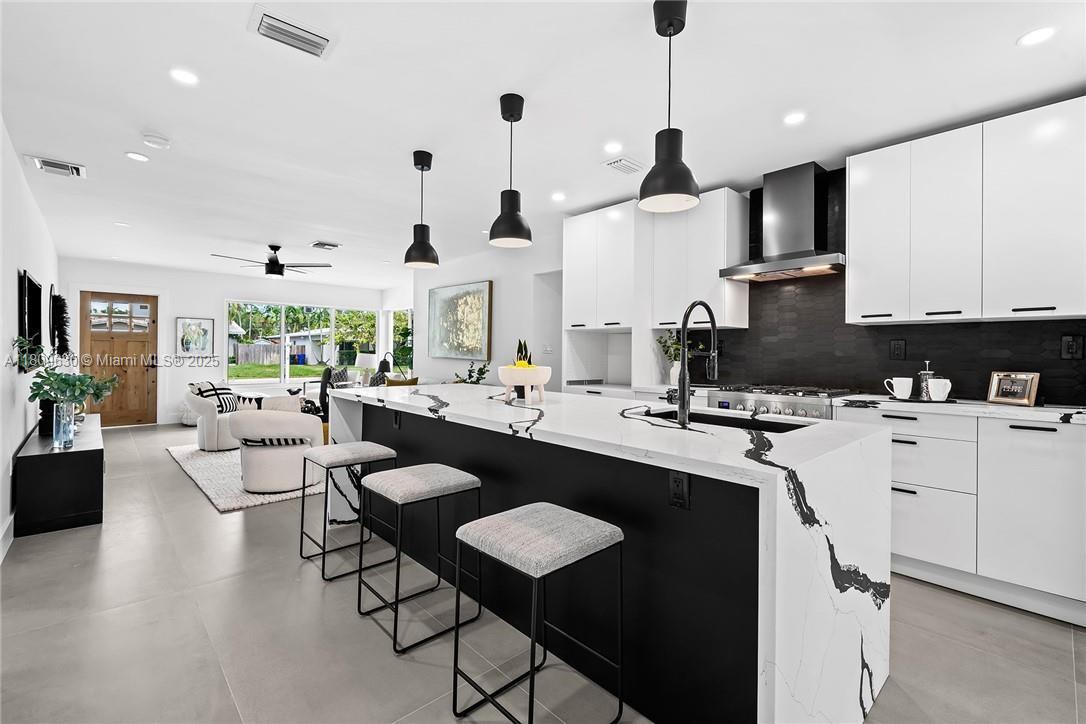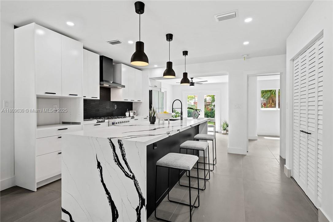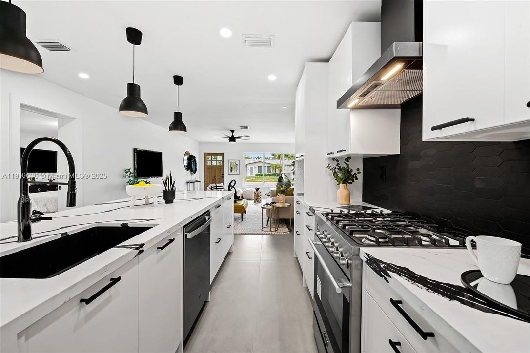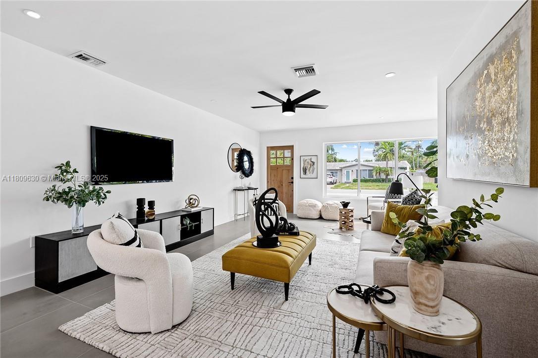 Reimagined Modern Living in East Fort Lauderdale. Designed with today’s lifestyle in mind, this 4BD/2BA home was thoughtfully rebuilt from the studs up in 2022. The open split floor plan flows across large-format tile into a chef-inspired kitchen with sleek cabinetry, gas stove, and quartz waterfall island. The luxe primary suite features dual showers and a floating vanity, while impact windows, new roof, double French doors, and modern finishes elevate the home’s style. Enjoy a landscaped yard with room for a pool, boat/RV parking, and covered patio for seamless indoor-outdoor living. Walk to Whole Foods, Trader Joe’s, Pura Vida, schools, and shops—just minutes to Las Olas, Victoria Park, beach, and waterfront park with community boat ramp. Exterior photos coming soon.