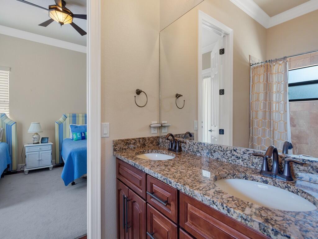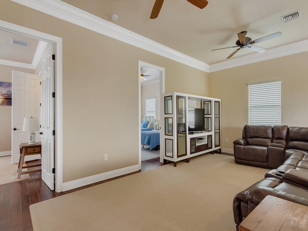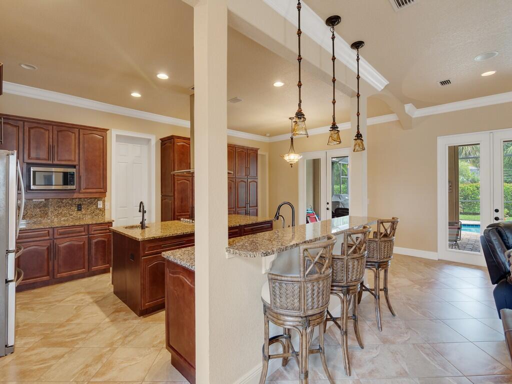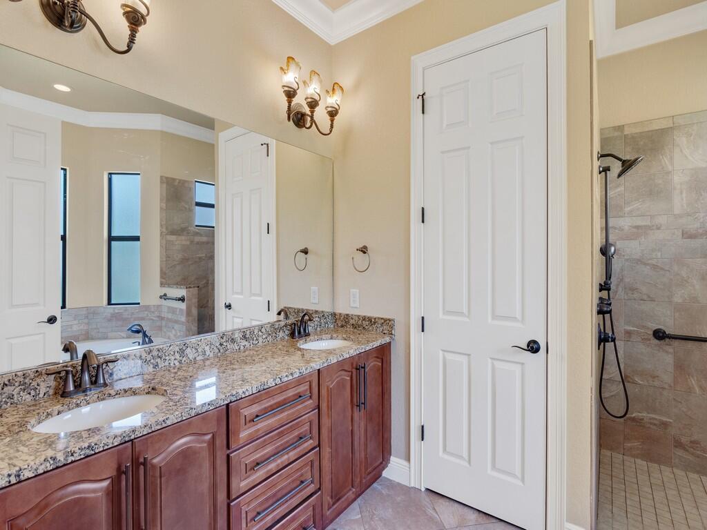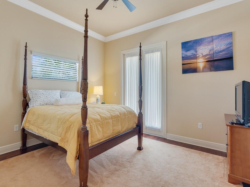 This spacious pool home offers 4 bedrooms, 4.5 baths, a 2-car garage, and a private in-law suite with its own entrance and full bath--ideal for guests or multigenerational living. Enjoy tile flooring throughout the first floor, set on the diagonal, real wood floors upstairs, and a first-floor primary suite for added convenience. The kitchen features granite countertops and custom solid wood cabinetry--perfect for entertaining. Additional upgrades include impact glass, roll-down shutters on the back patio, and a 500-gallon propane tank fueling the whole-house generator, ensuring comfort and security all year round. Call today to schedule your private showing!