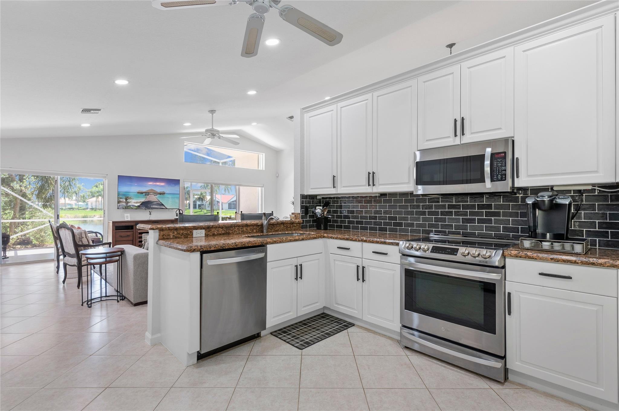 Discover this beautifully maintained, one-owner home offering 3 bedrooms and 2 bathrooms in the serene, sought-after community of Crescent Lakes. This move-in-ready residence showcases numerous upgrades, including hard surface flooring throughout, a modern kitchen and bathrooms with stainless steel appliances, and a recently replaced roof. Enjoy peace of mind with a newer HVAC system, water heater, and full hurricane protection. The home is bathed in natural light and features a spacious, screened-in patio with breathtaking lake views, ideal for morning coffee or entertaining guests. Located in a quiet, meticulously kept neighborhood, Crescent Lakes offers low HOA fees and resort-style amenities such as clay tennis courts, a sparkling pool, and an active clubhouse.