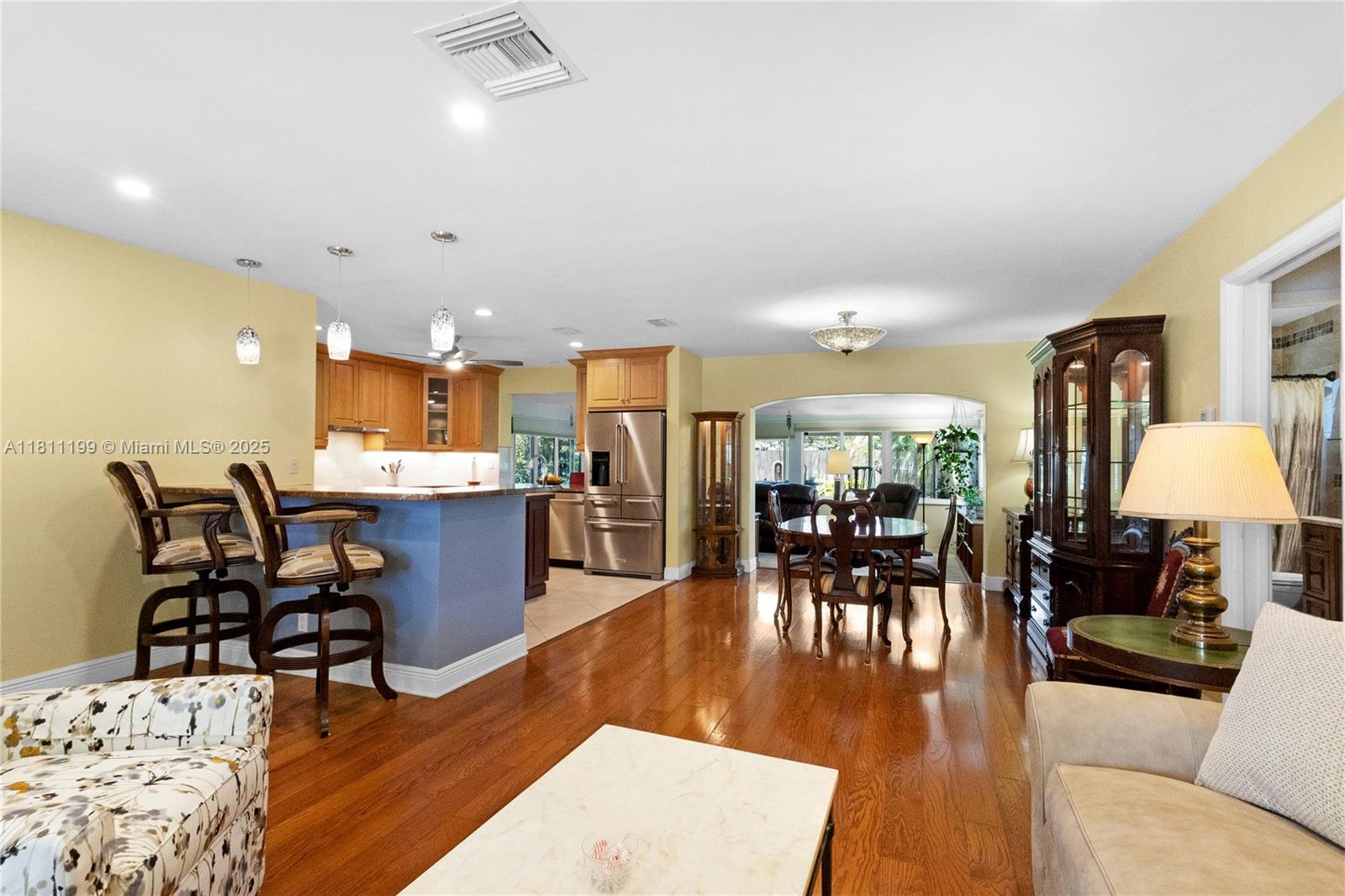 Welcome to this charming 3 bedroom 2 bathroom SFH in sought-after Coral Ridge Isles! Featuring impact windows, an updated custom kitchen with granite counters and rich wood cabinetry, plus beautifully updated bathrooms. Enjoy over 500 sq ft of screened-in porch, perfect for relaxing or entertaining. The lush completely fenced private yard includes custom landscape lighting and space for a pool. Additional highlights: inside laundry room, well water for sprinkler system, newer hot water heater, pavered circular driveway, and a peaceful/quiet street. All just minutes from Lauderdale-by-the-Sea’s beaches, dining, and shops. A true gem in a prime location!