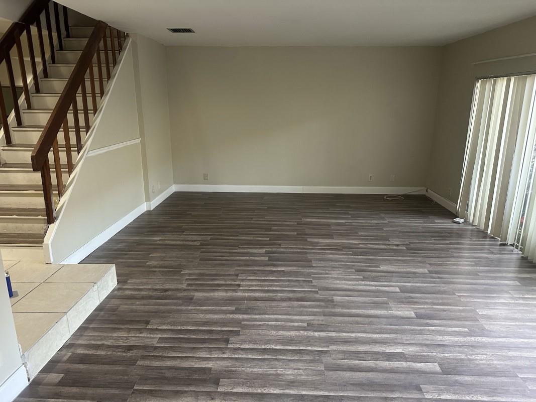 Spacious 3-bedroom townhouse with 2.5 bathrooms, 1770 sqf of living space. The main level offers a galley style kitchen, living and dining area, the laundry room, half bath, and 1 bedroom. 3 bedrooms are on the second floor. Large master bedroom with a large balcony and master bathroom has a walk -in closet. Tile and laminate flooring throughout. Great neighborhood with the clubhouse, children's playground, tennis courts and two community pools. Close to shopping centers and major highways.