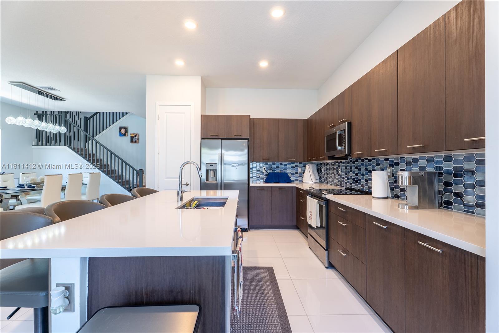 Experience luxury in this 5-bedroom, 4.5-bath, 3,633 sq ft two-story home in Marbella, Miramar. Built in 2022, it features a private in-law suite with its own entrance, wet bar, refrigerator, bedroom, bath, sitting area, and secondary laundry—perfect for guests or extended family. The gourmet kitchen offers quartz countertops and a large island opening to a bright great room. Upgrades include designer wall treatments, custom paint, Cat-6 wiring, impact windows/doors/garage, epoxy-finished garage, window treatments, and smart home tech with Google Nest cameras and smart lock. Community amenities complete the lifestyle. SELLER INCENTIVE: with a full-price or higher offer, SELLER WILL PAY 6 MONTHS OF HOA DUES UPFRONT FOR BUYER.