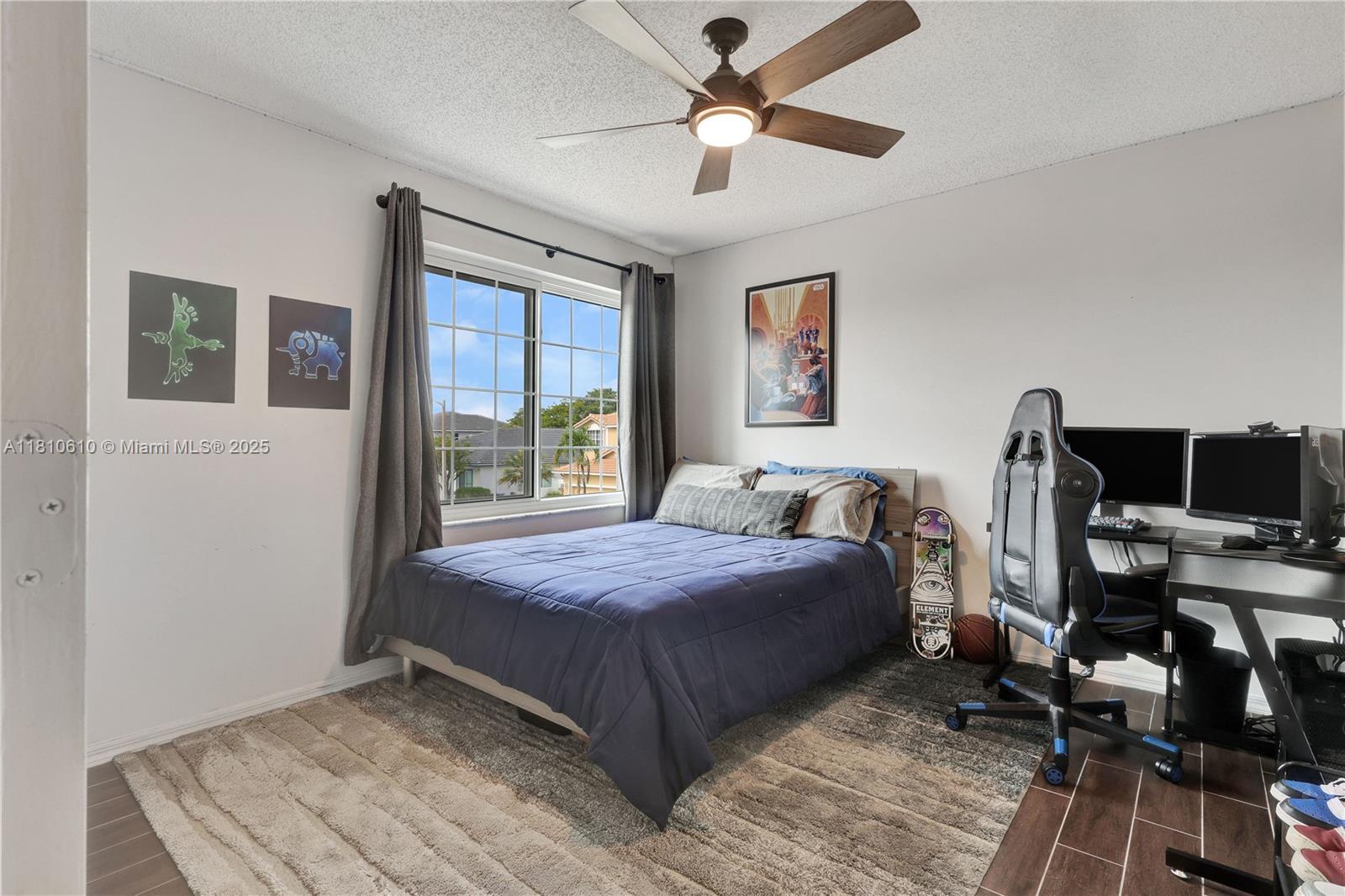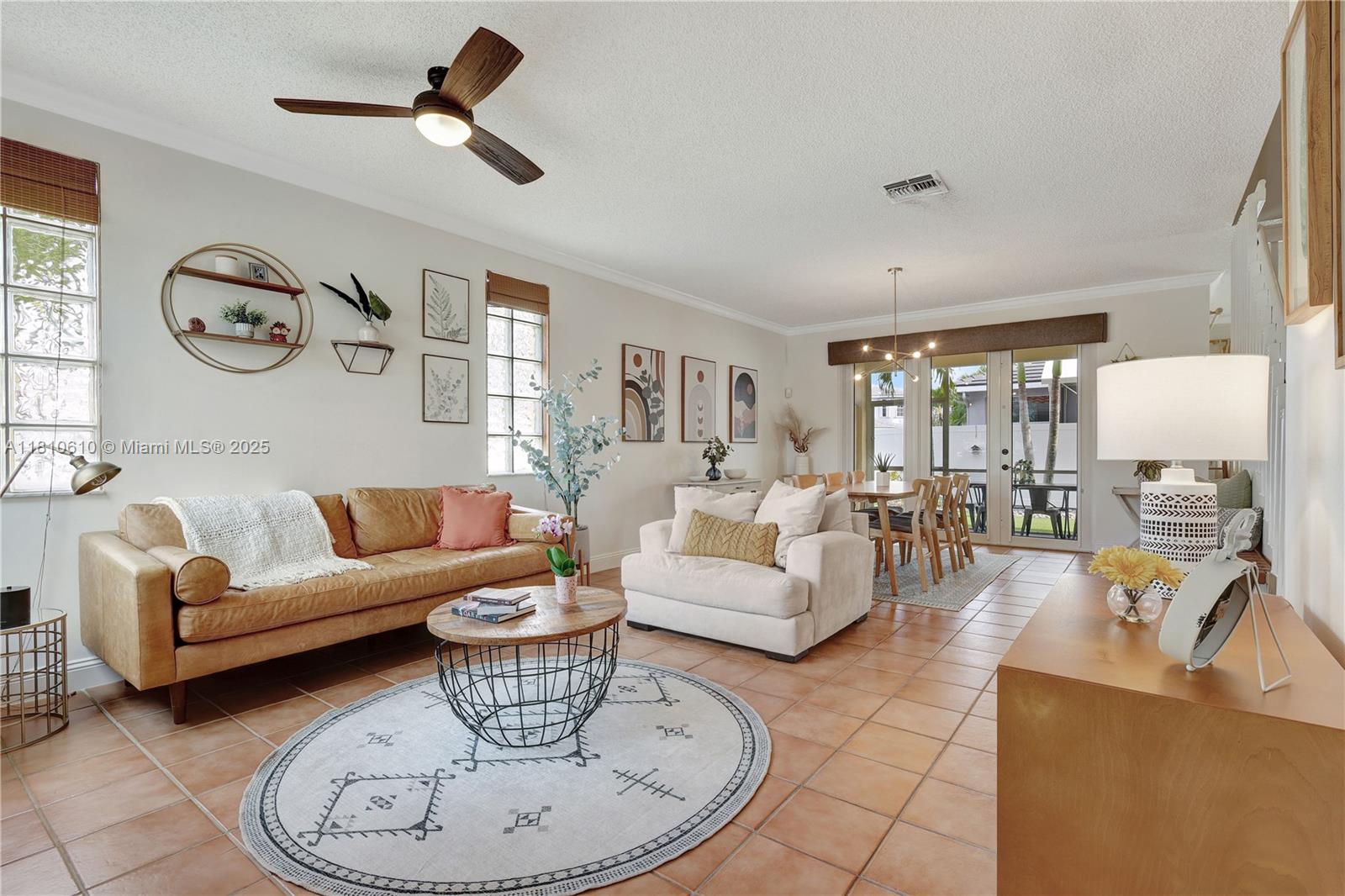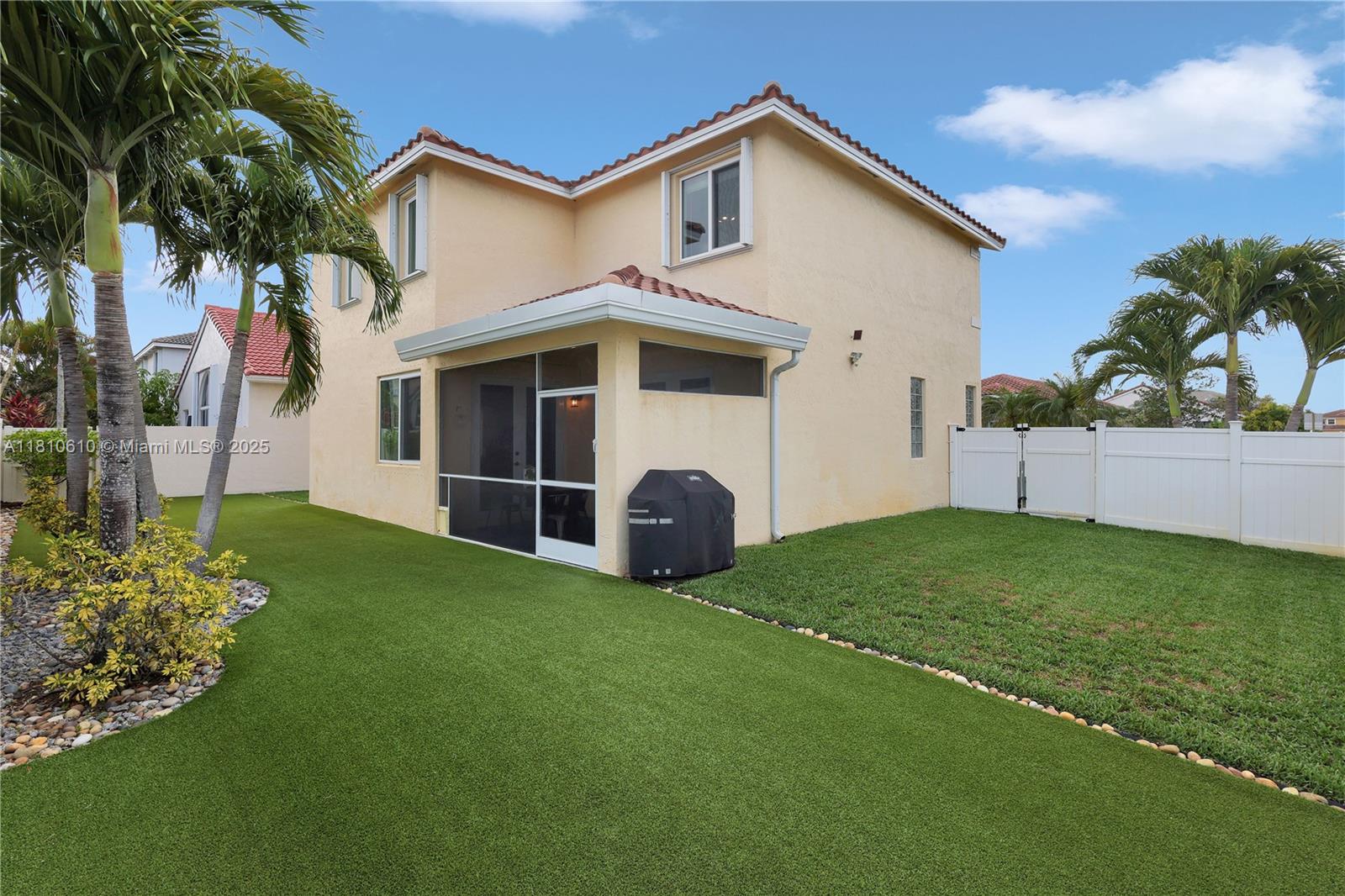 Incredible 4 bedroom, 2.5 bathroom home in the desirable Parkside at Spring Valley Community, seated on a spacious corner lot. Home has been beautifully maintained with tile floors throughout, custom wood cabinets and granite countertops in the kitchen, impact windows and doors, hurricane shutters. Recent updates include Roof replaced in 2017, HVAC replaced in 2010, Plumbing repiped in 2021. CBS first and second floor for extra soundproofing. Beautiful screened porch opens to a large backyard with astro turf and grass and a 6 ft vinyl privacy fence, providing a perfect space for pets, family, and friends. Amenities include community pool and 24 hr guarded security. Conveniently located in a highly rated school zone, and close to shops, restaurants, and major roads.