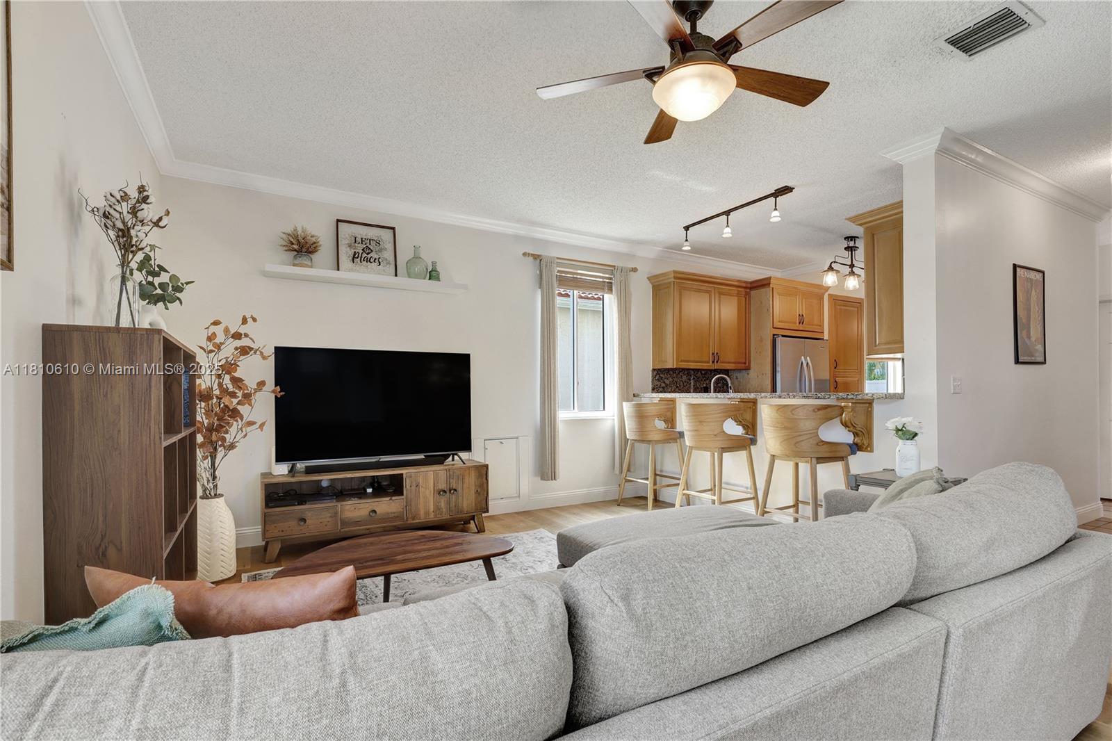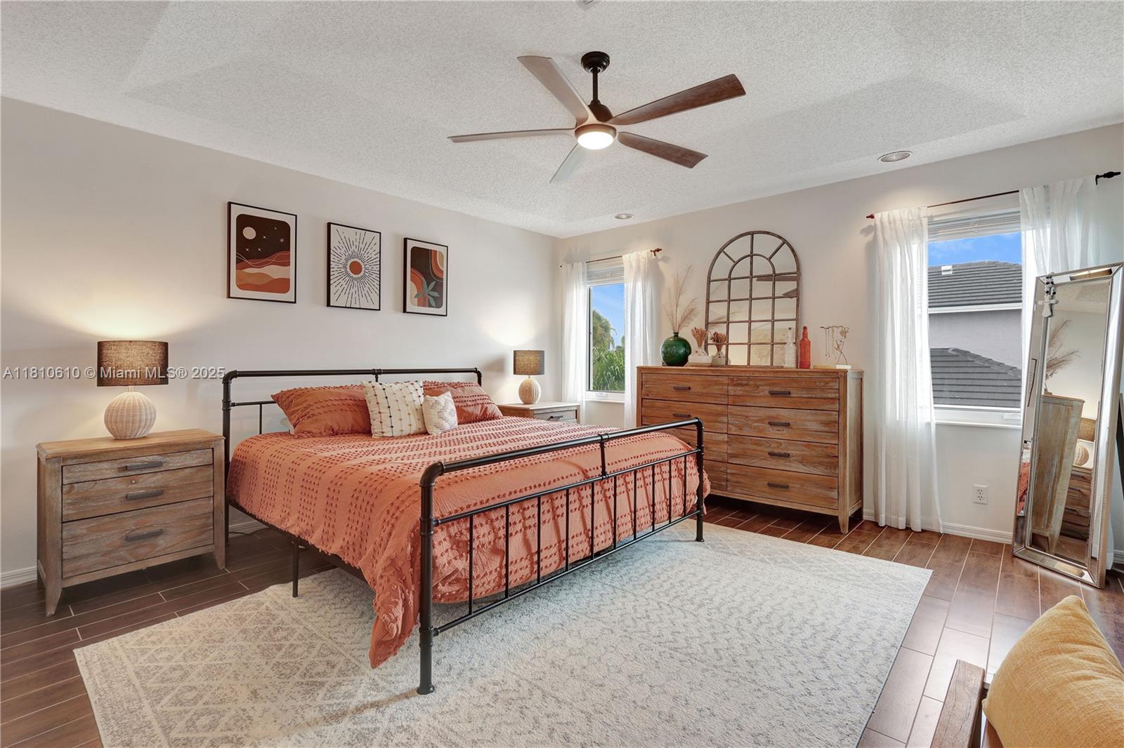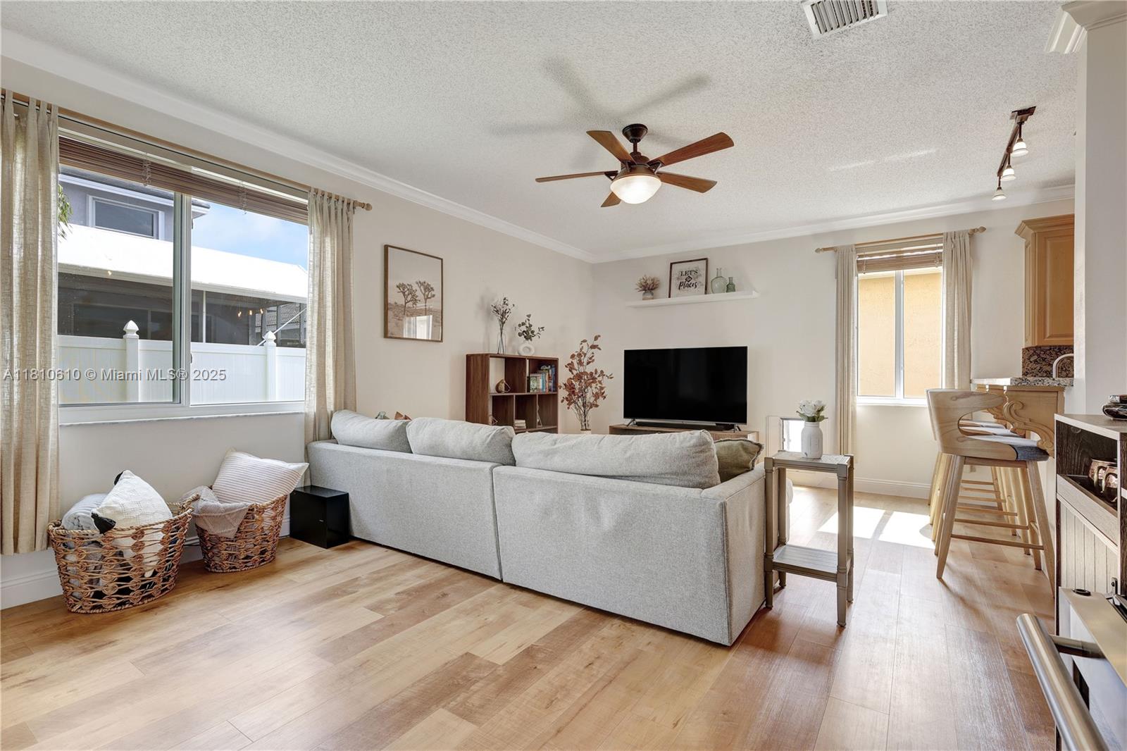 Incredible 4 bedroom, 2.5 bathroom home in the desirable Parkside at Spring Valley Community, seated on a spacious corner lot. Home has been beautifully maintained with tile floors throughout, custom wood cabinets and granite countertops in the kitchen, impact windows and doors, hurricane shutters. Recent updates include Roof replaced in 2017, HVAC replaced in 2010, Plumbing repiped in 2021. CBS first and second floor for extra soundproofing. Beautiful screened porch opens to a large backyard with astro turf and grass and a 6 ft vinyl privacy fence, providing a perfect space for pets, family, and friends. Amenities include community pool and 24 hr guarded security. Conveniently located in a highly rated school zone, and close to shops, restaurants, and major roads.