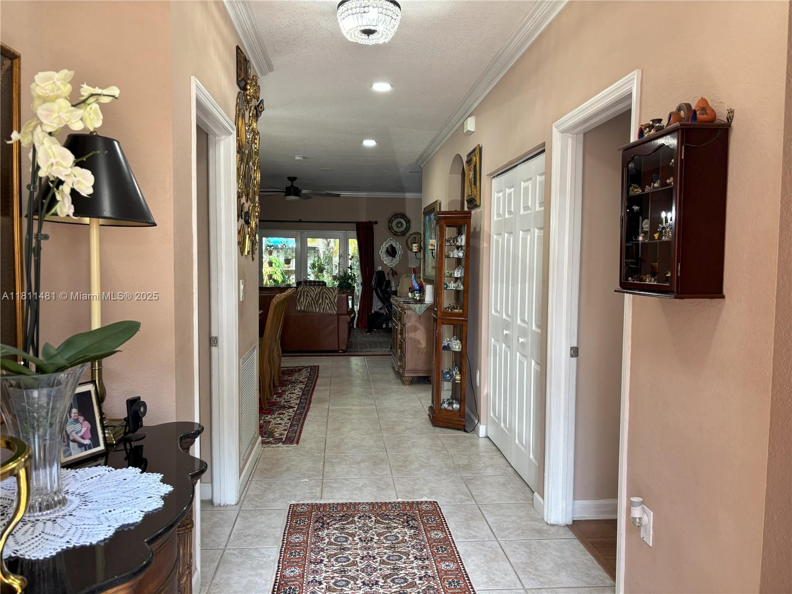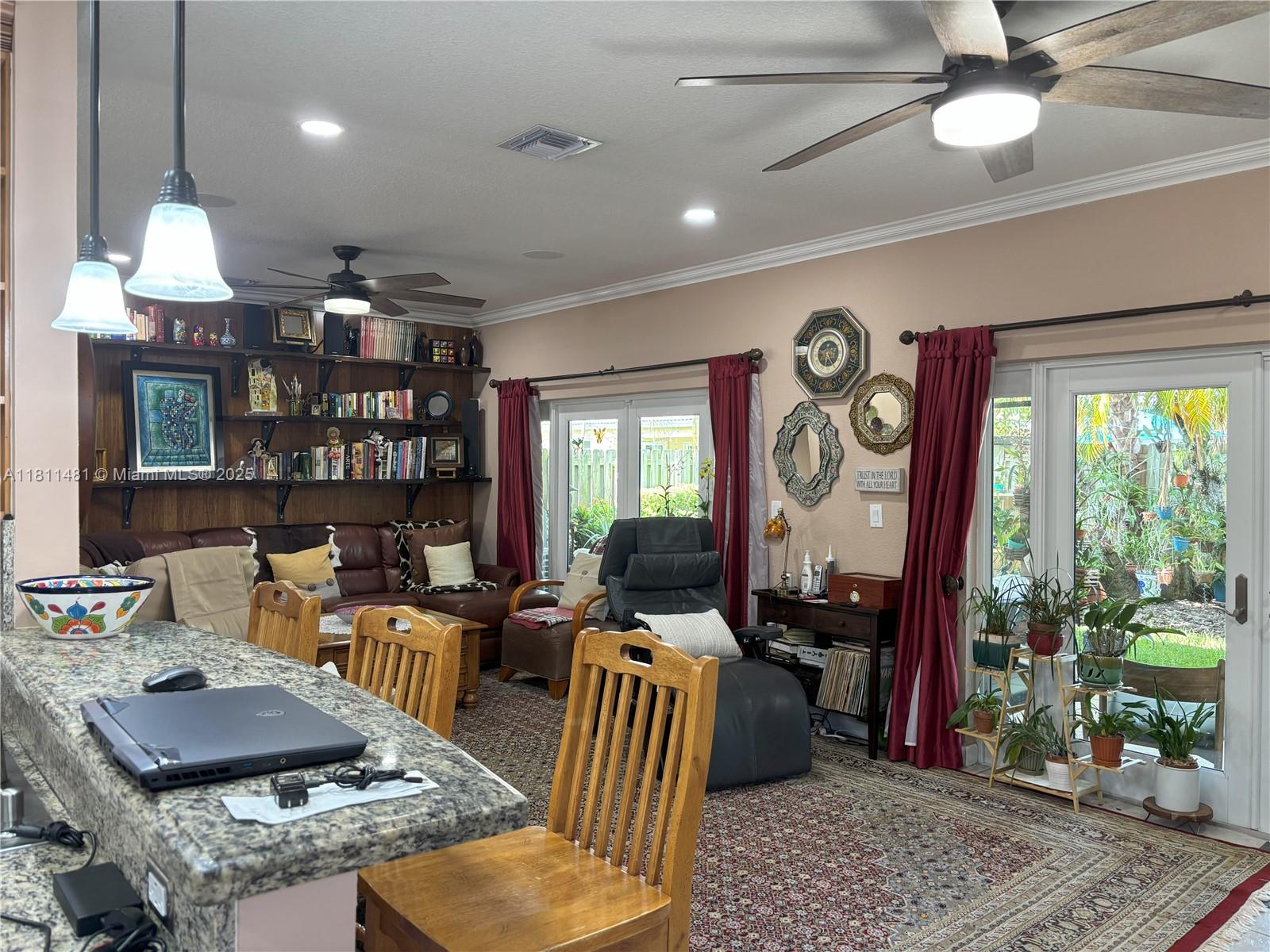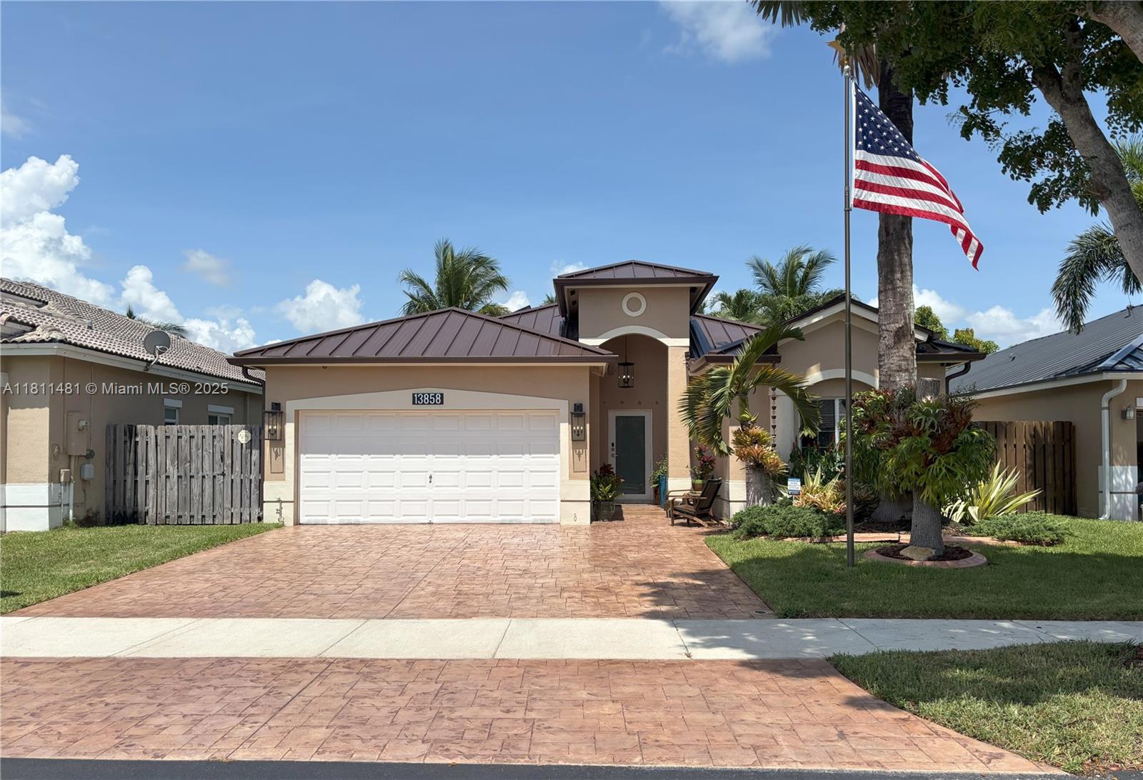 OPEN HOUSE SUNDAY 6/29, FROM 2-5 PM. Gorgeous 1-Story home located in SAN JOSE, a gated community West of Country Walk. A great floor plan: split 3 bedrooms, 2 baths, open kitchen to family/living room, formal dining. EAT-IN KITCHEN has a pantry, wood cabinets w/ built-in lighting, granite counters. Crown molding and RECESSED LIGHTING throughout. Ceiling fans in bedrooms, living/family and terrace. Outdoor covered terrace has TRAVERTINE FLOOR, ceiling fans, outside shower, AUTOMATIC SPRINKLER SYSTEM. IMPACT DOORS AND WINDOWS. NEW METAL ROOF (2yrs) and gutters. SOLAR PANELS = $25 monthly electricity. 2-car garage with epoxy floors, metal cabinets, FAST ELECTRIC CAR CHARGER, ladder to attic. Mini split A/C in master bedroom. HOA fee of $90.00 a month, includes front lawn maintenance.