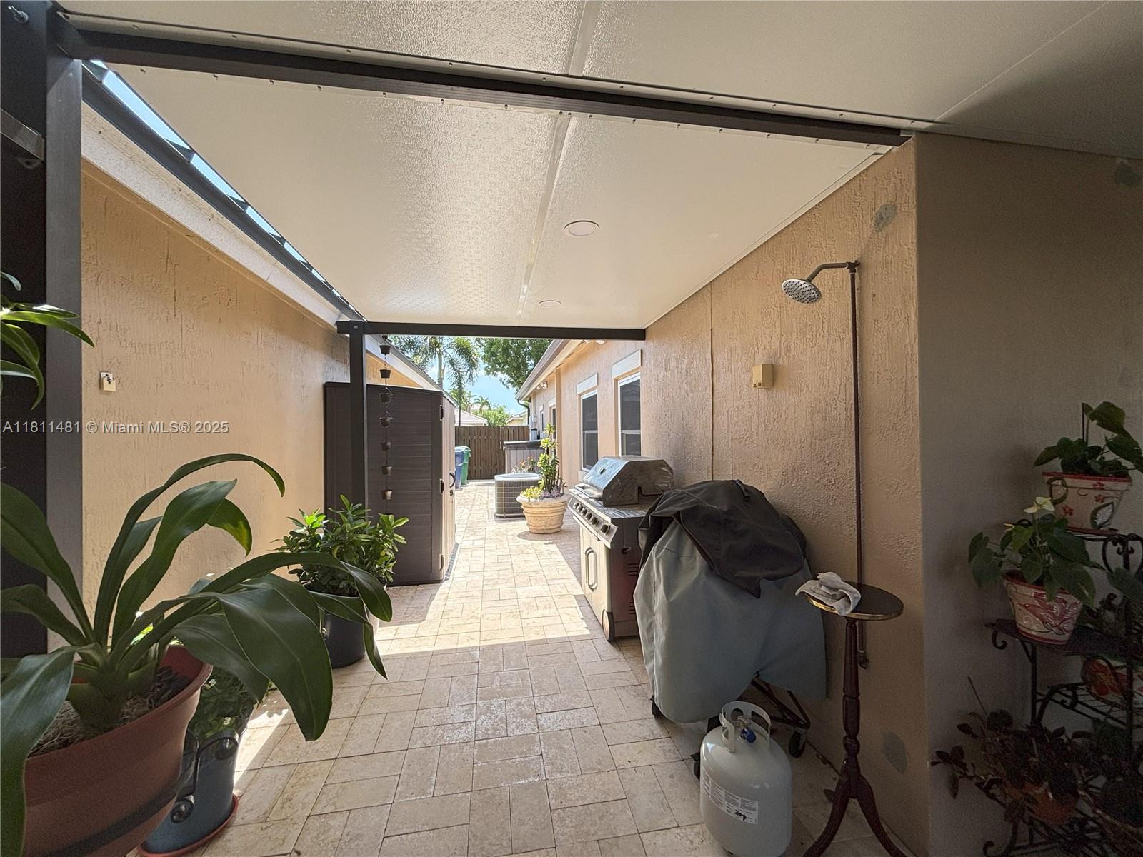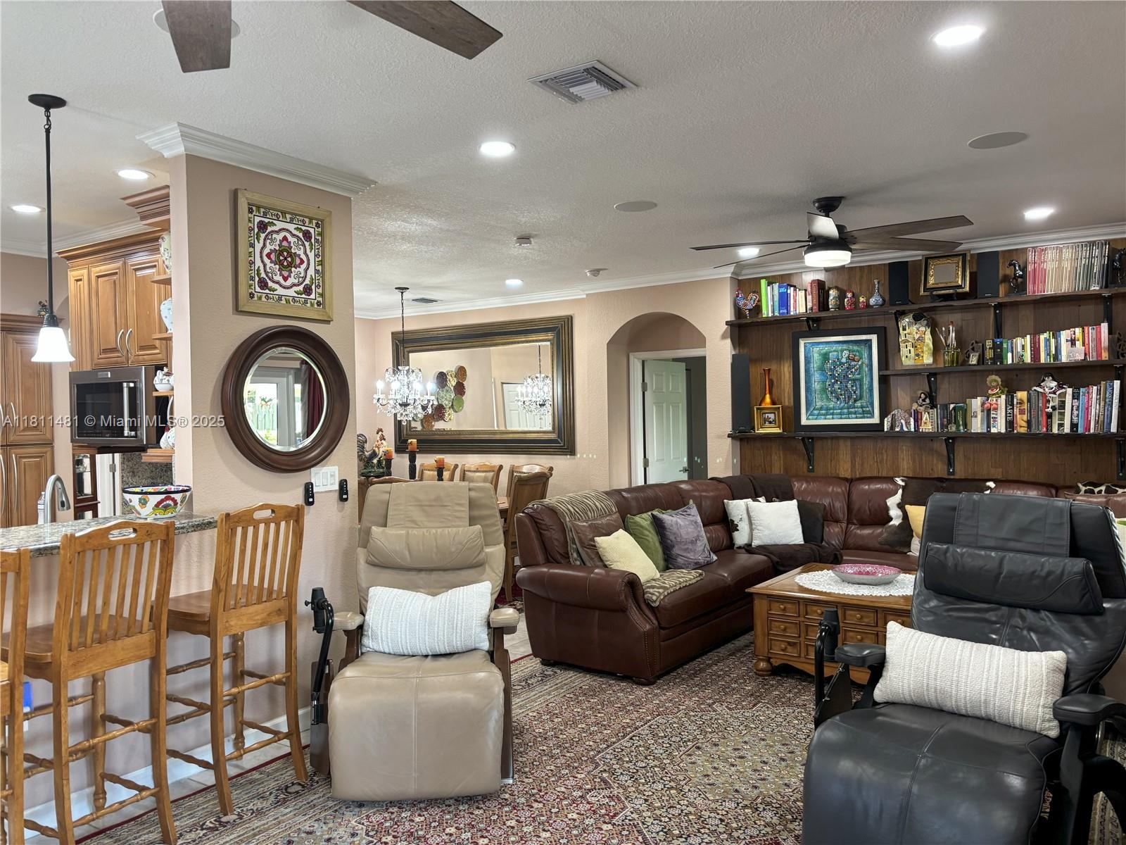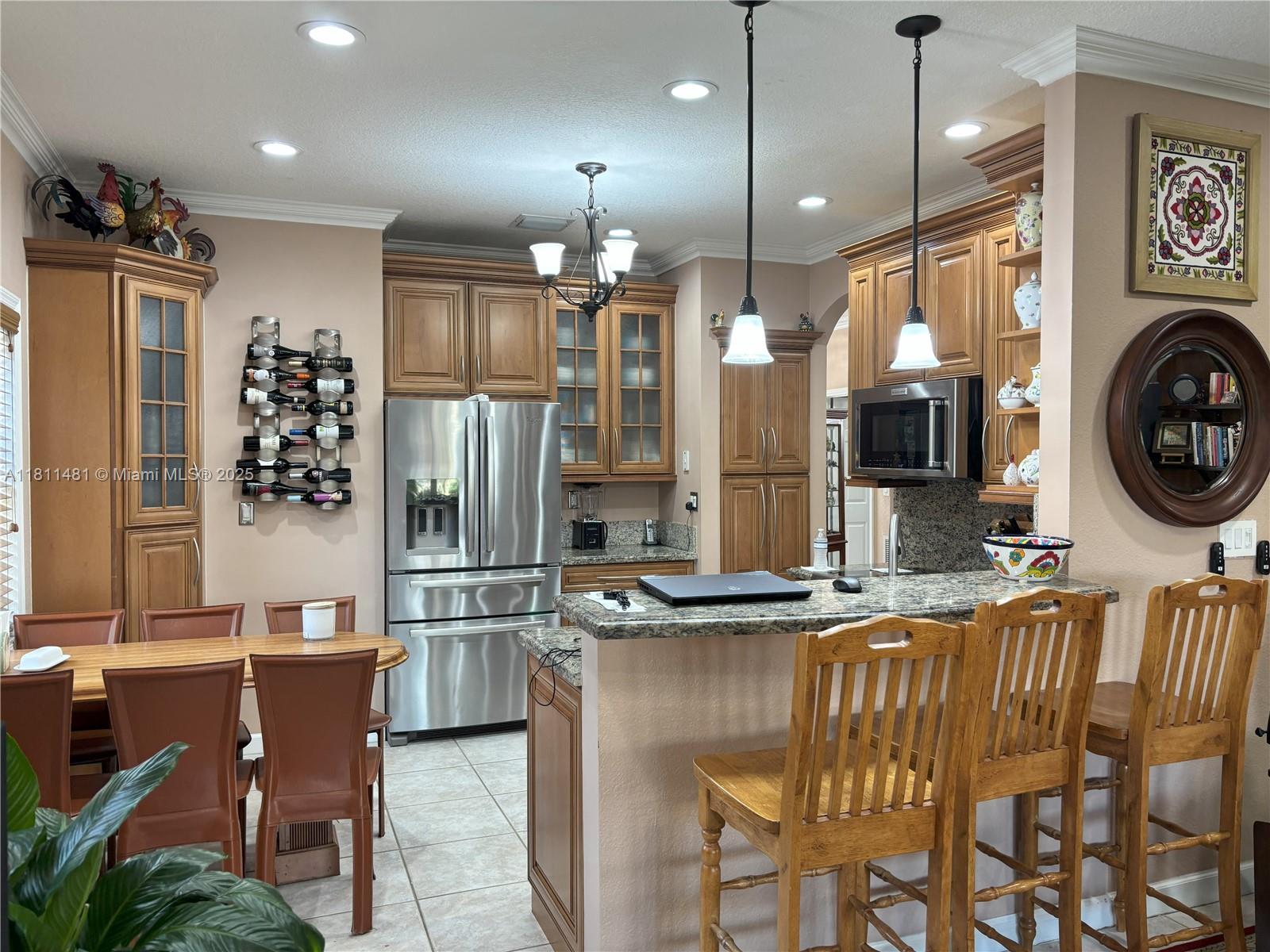 OPEN HOUSE SUNDAY 6/29, FROM 2-5 PM. Gorgeous 1-Story home located in SAN JOSE, a gated community West of Country Walk. A great floor plan: split 3 bedrooms, 2 baths, open kitchen to family/living room, formal dining. EAT-IN KITCHEN has a pantry, wood cabinets w/ built-in lighting, granite counters. Crown molding and RECESSED LIGHTING throughout. Ceiling fans in bedrooms, living/family and terrace. Outdoor covered terrace has TRAVERTINE FLOOR, ceiling fans, outside shower, AUTOMATIC SPRINKLER SYSTEM. IMPACT DOORS AND WINDOWS. NEW METAL ROOF (2yrs) and gutters. SOLAR PANELS = $25 monthly electricity. 2-car garage with epoxy floors, metal cabinets, FAST ELECTRIC CAR CHARGER, ladder to attic. Mini split A/C in master bedroom. HOA fee of $90.00 a month, includes front lawn maintenance.