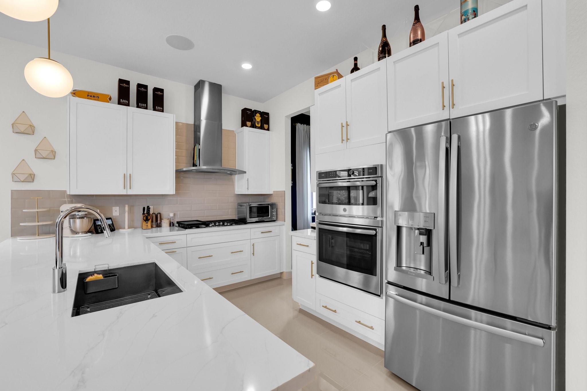 Absolutely stunning! Bring your pickiest of buyers. Over $500K in custom upgrades make this home truly exceptional. Every inch of the home has been meticulously maintained like you've never seen before. Dream backyard features a heated saltwater infinity-edge pool spilling into an oversized spa. Full turf, travertine decking, and a pergola with summer kitchen, built-in grill, and fridge. Surround sound with outdoor subwoofer, 24kW whole-home generator, and Cat 5 wiring to every room. Inside boasts a chef’s kitchen, custom butler’s pantry with 150-bottle dual-zone wine fridge and bar sink, oversized primary suite with custom closets, framed bath mirrors. Built-in speakers throughout, 16-camera CCTV system, and custom art deco moldings and wallpaper. Recently painted inside and out.